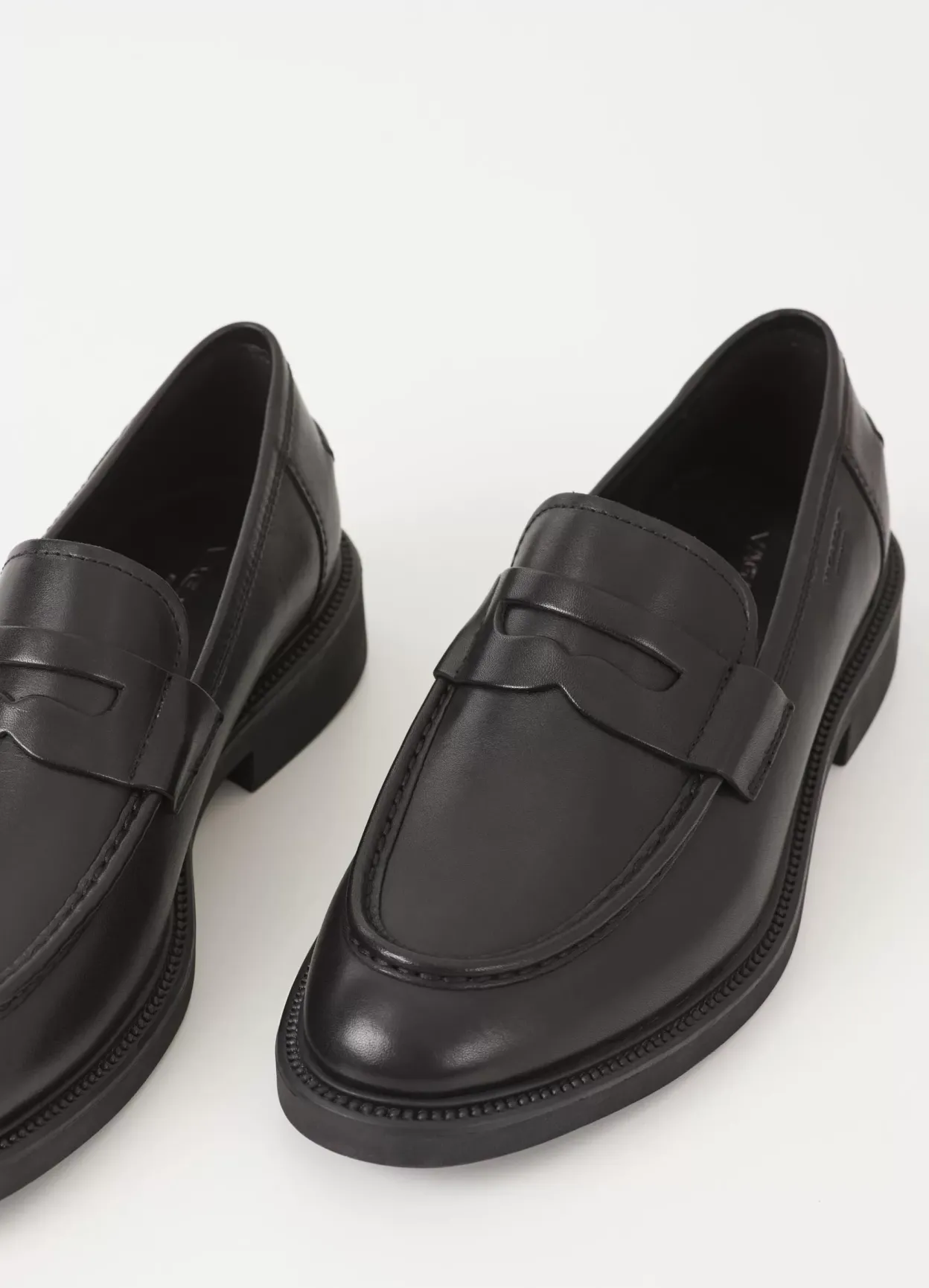 鈥婣lex M er moderne pennyloafers med et rent og tidløst design. Modellen er fremstillet i blødt sort læder med en dekorativ pennyrem og moc-toe detaljer på oversiden. Den robuste gummisål er 33 mm. Vi anbefaler, at man bruger skohorn, da det beskytter hælkappen og forlænger skoenes levetid.