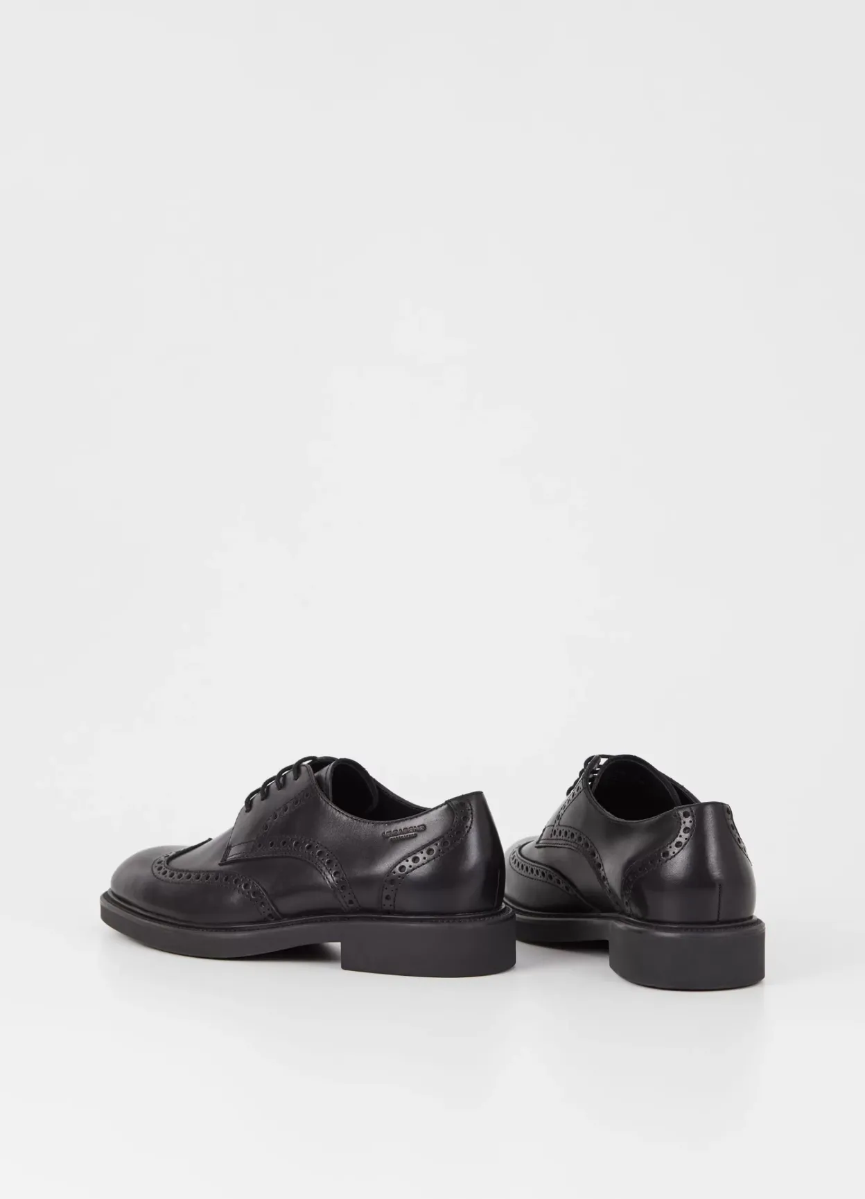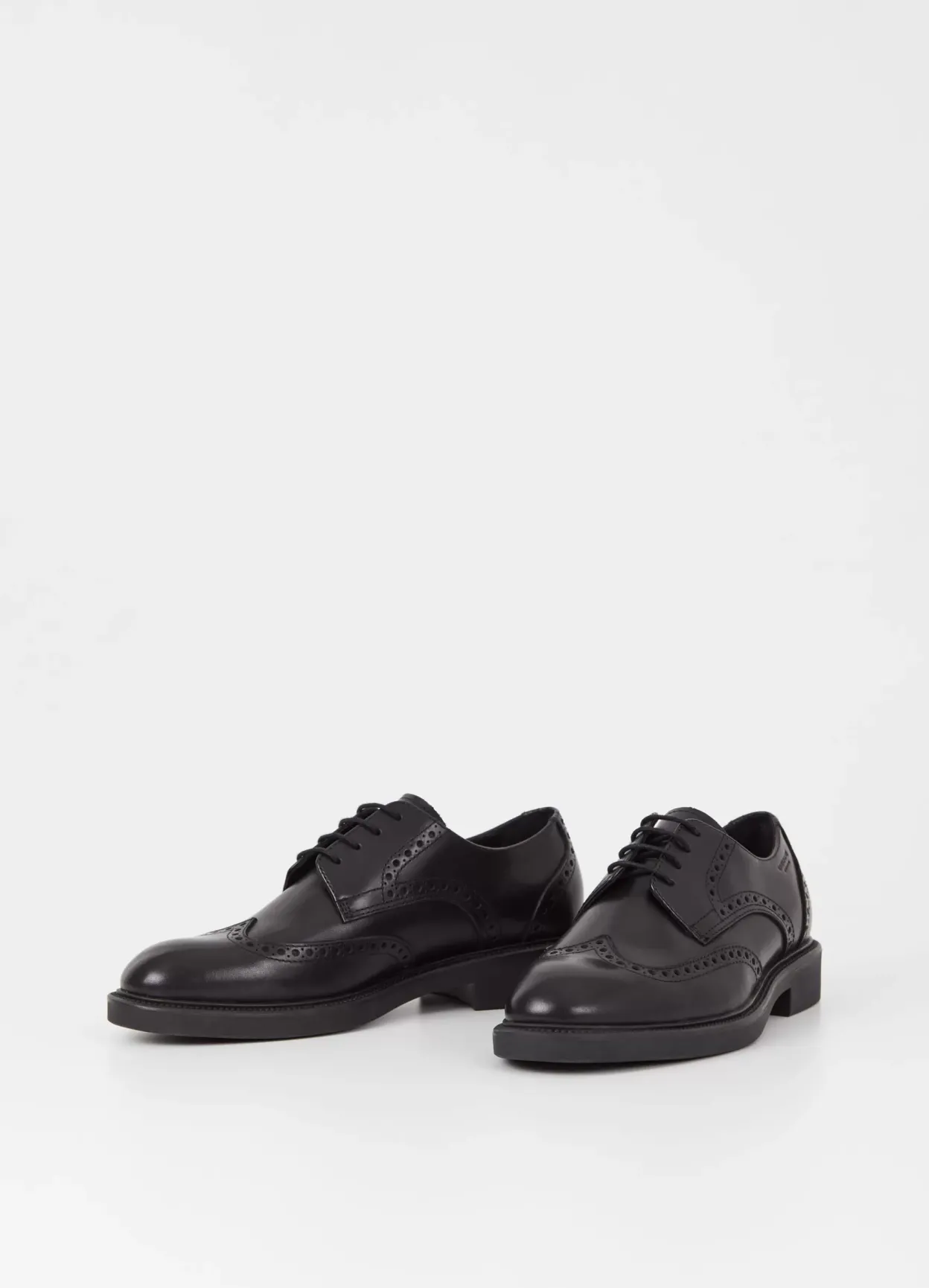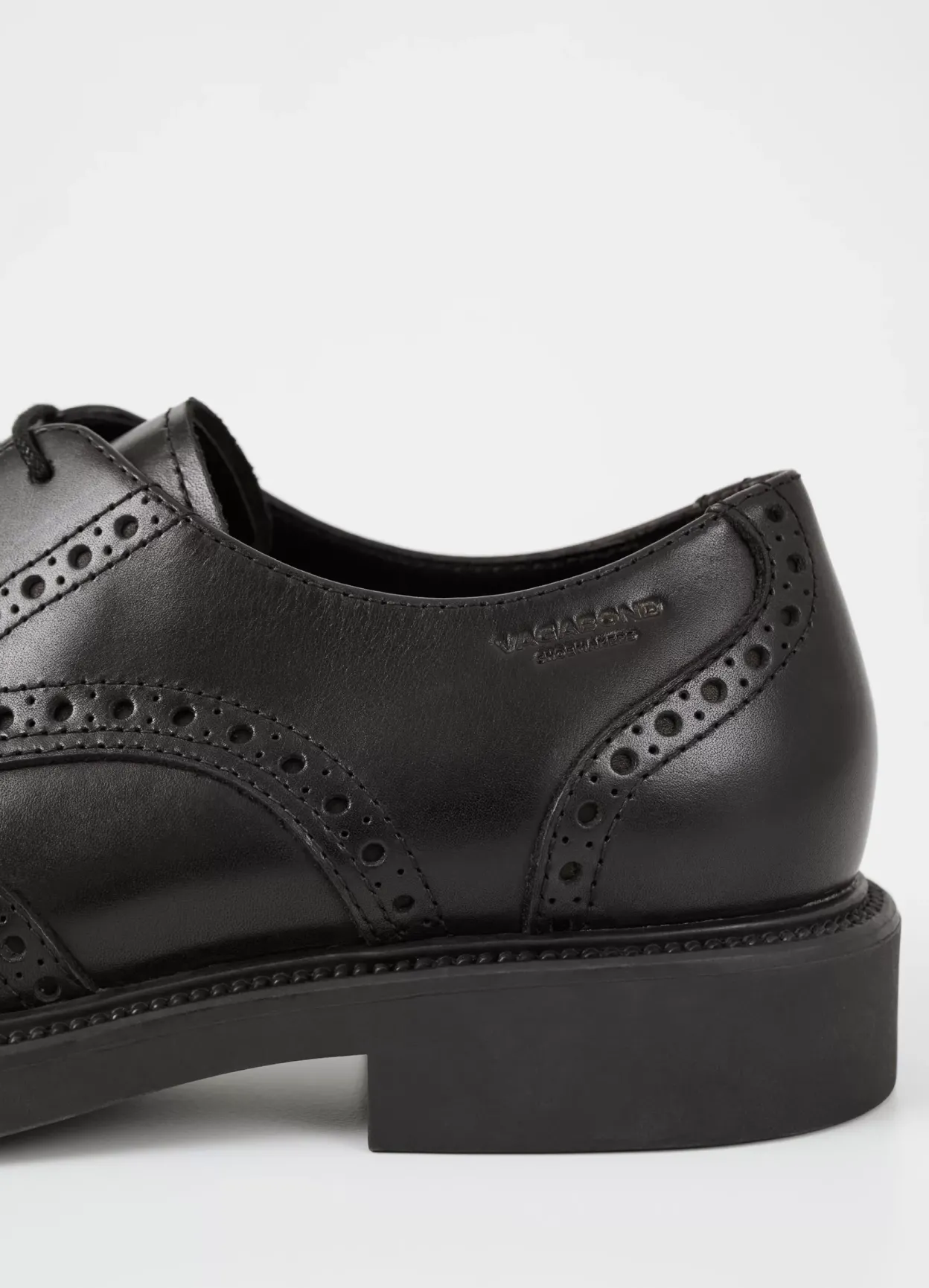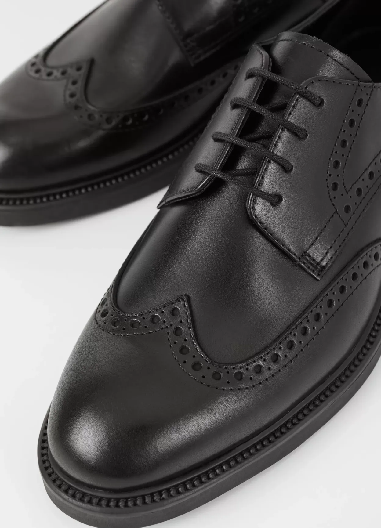 Alex M is the refined brogue shoes for everyday wear. The style is crafted from black leather with almond-shaped toes, lace-up fastening and brogue details. The solid heels measure 33mm.