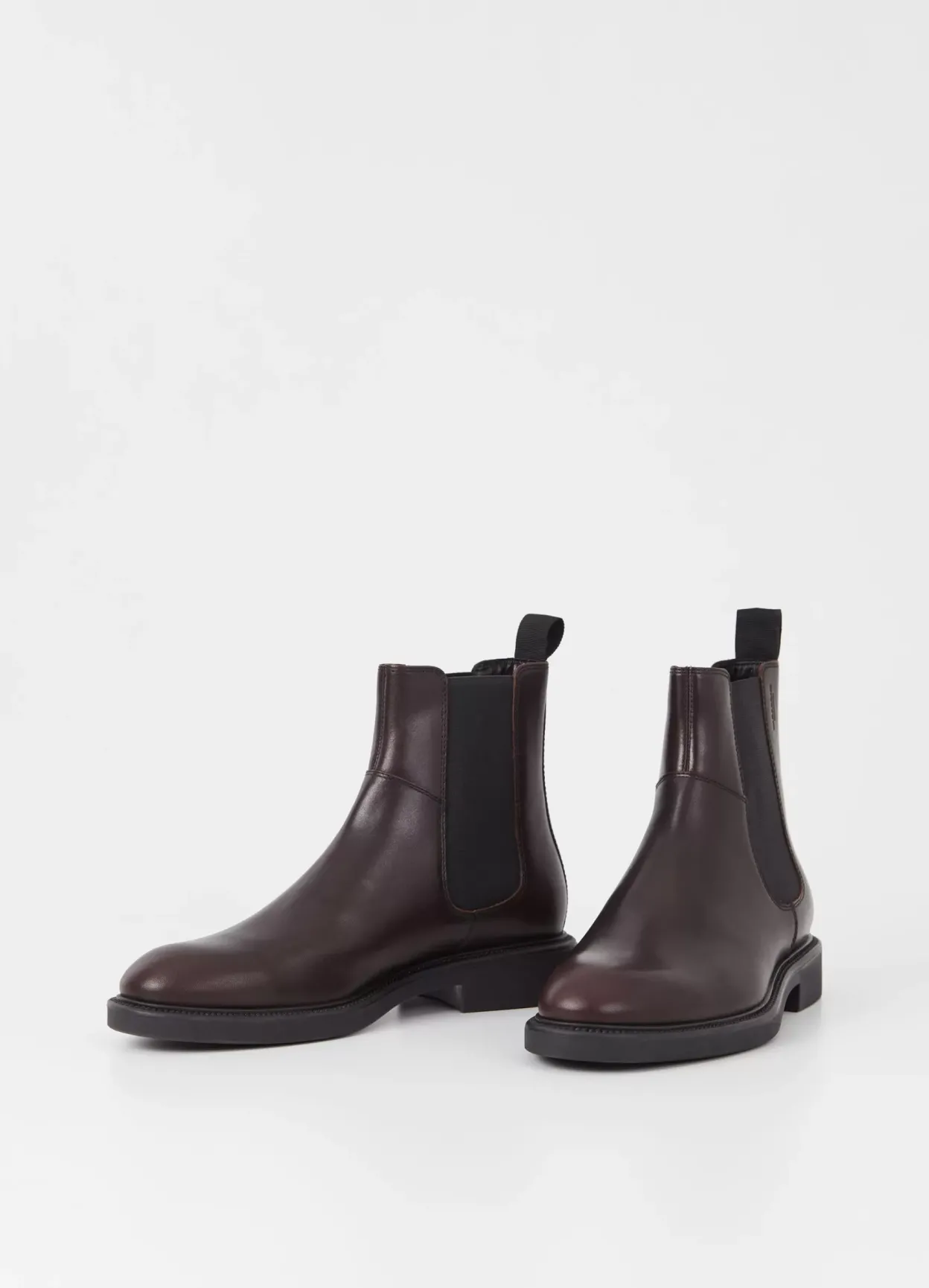 Alex M er stilrene Chelsea støvler i et rent design. Modellen er i mørkebrunt læder med elastiske sidepaneler, rund tåform og trækstroppe. Den solide gummisål er på 33 mm.