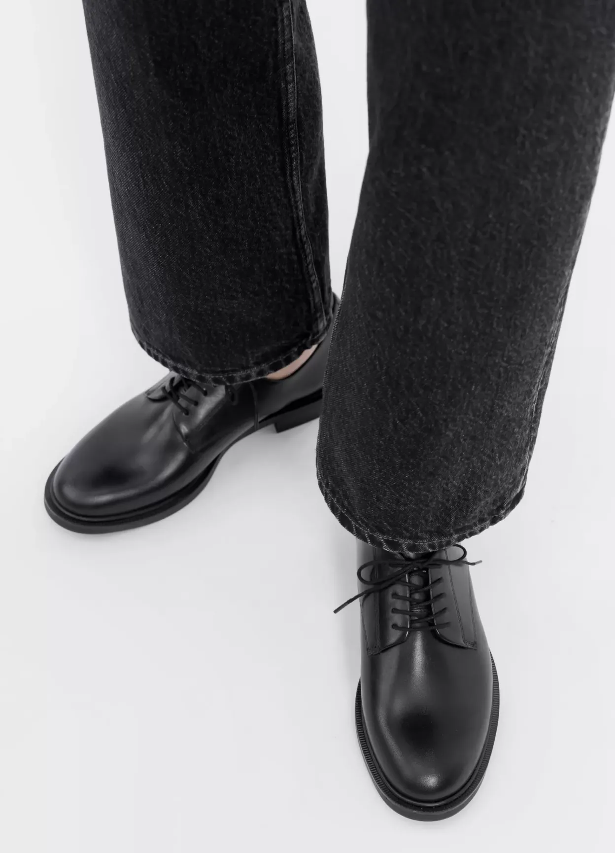 Amina er klassiske snøresko i et tidløst design. Modellen er lavet i sort læder med snørebånd, rund tå og lav hæl. Denne er på 30 mm.