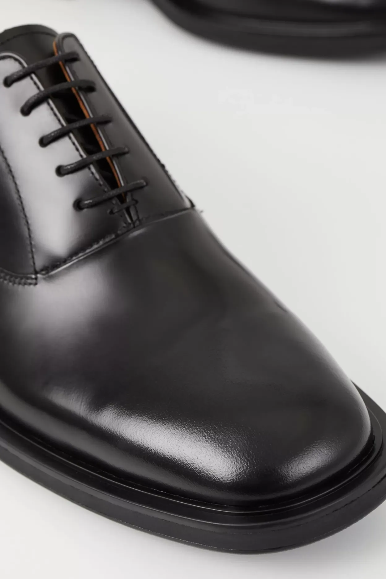 Andrew er klædelige oxfordsko i et klassisk design. Modellen er i sort, poleret læder med tynde, voksbelagte snørebånd. Rund tå-form og en 30 mm lav hæl.