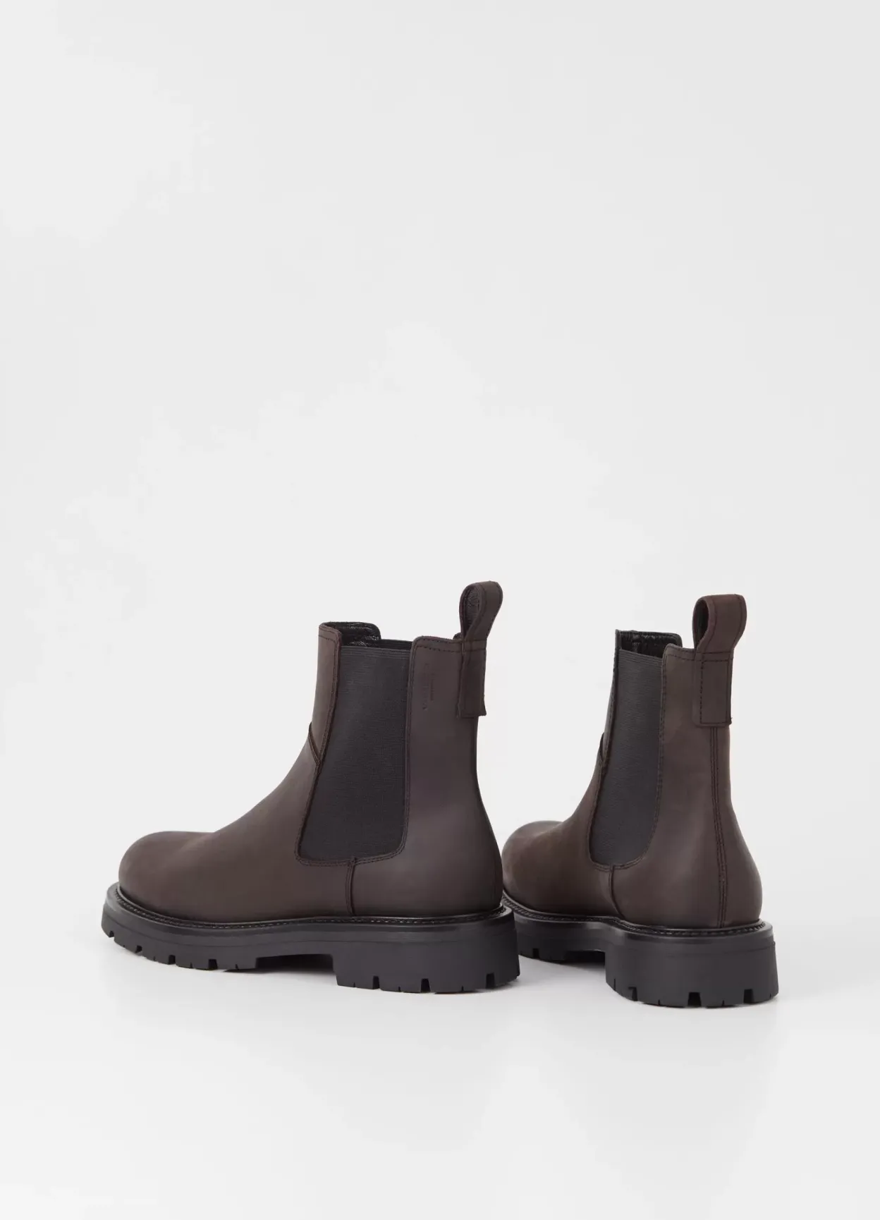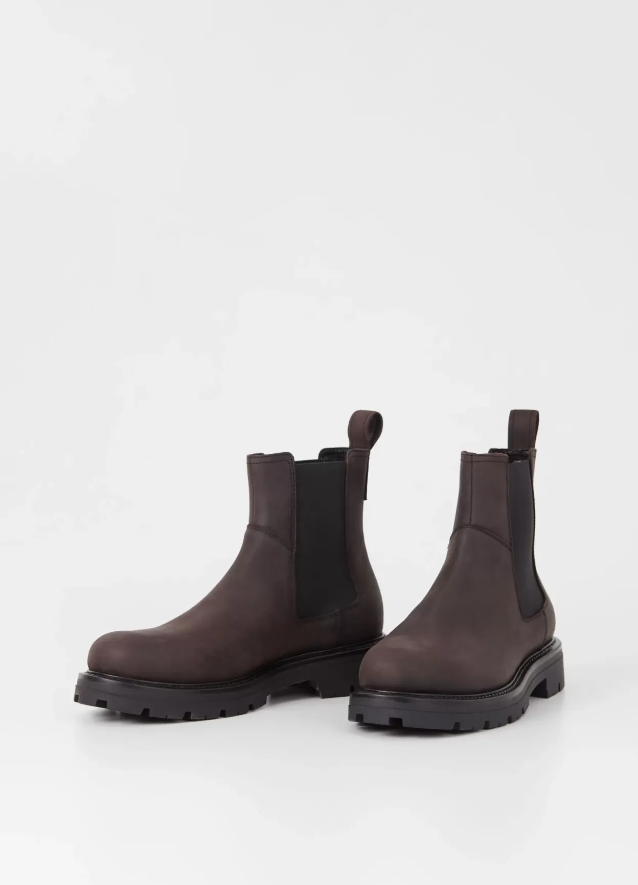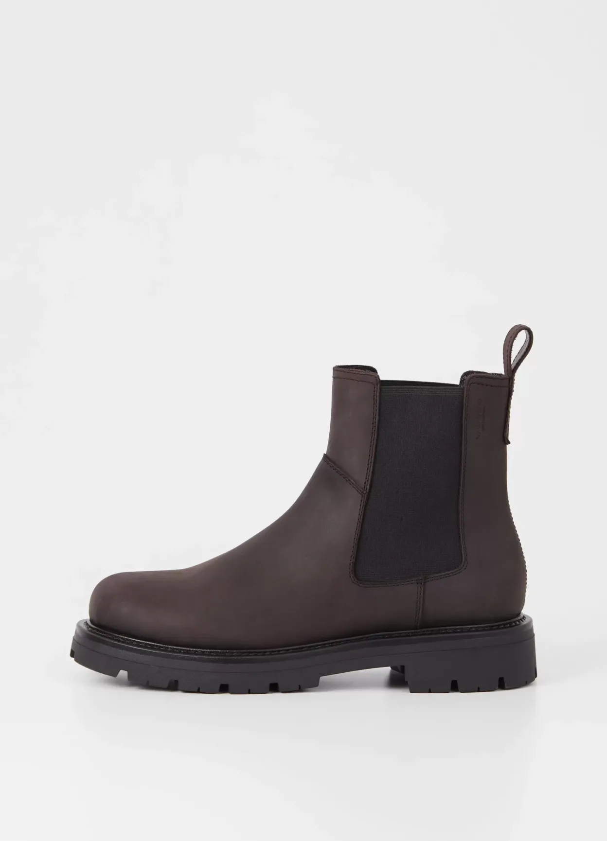 Cameron er chunky Chelsea støvler til hverdagsuniformen. Den er lavet i mørkebrunt, olieret nubuck med rund tå, elastiske sidepaneler og hælstrop. Riflet ydersål på 40 mm.
