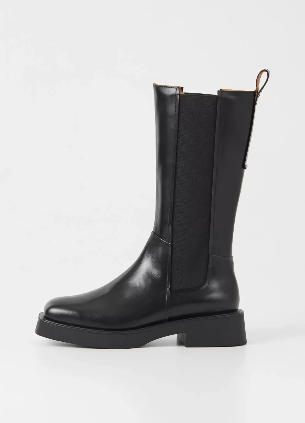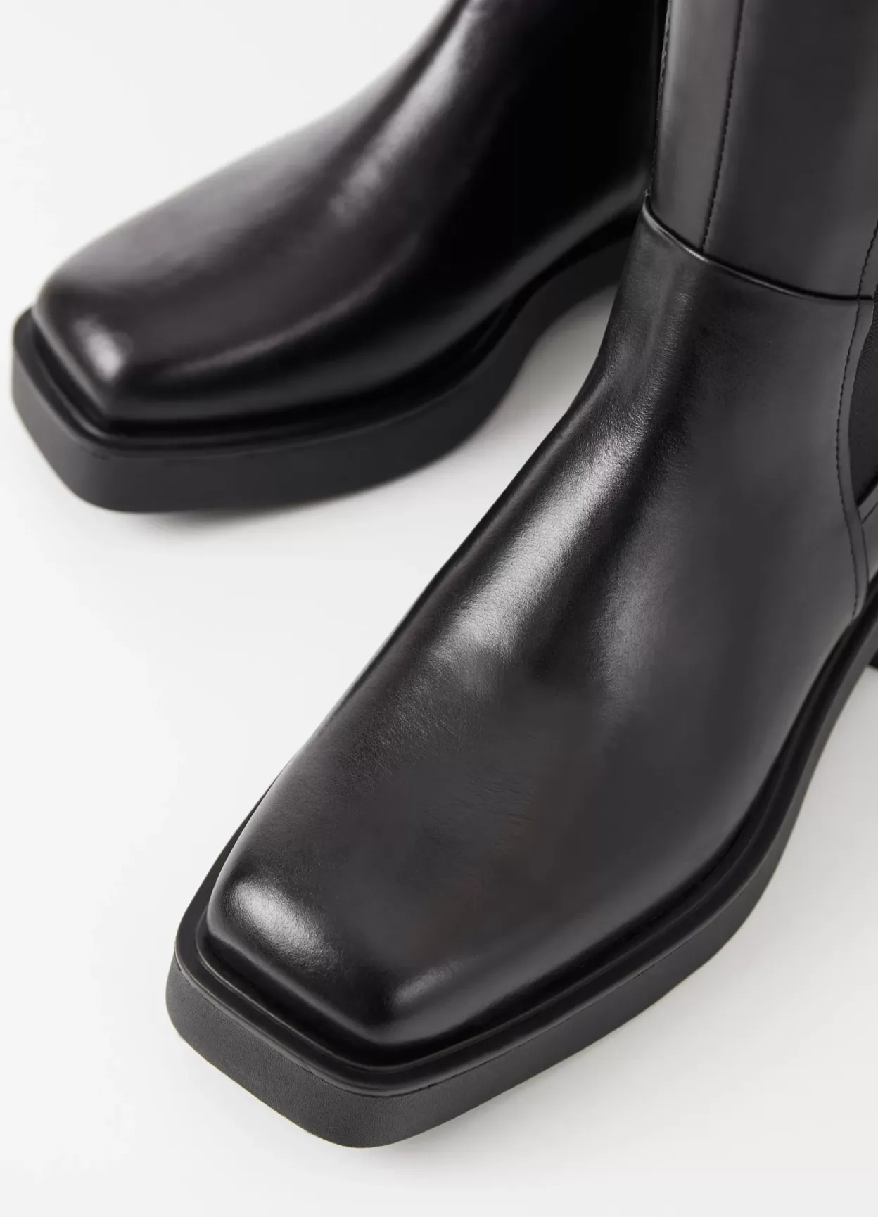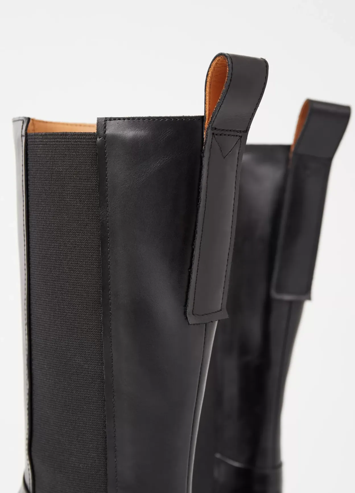 Carmen er minimalistiske Chelsea boots med et mellemhøjt skafte. Modellen er lavet i sort læder, har firkantet tå og elastiske paneler langs skaftet. Hælen måler 40 mm. Detaljen: læderfor og dekorative hælstroppe.