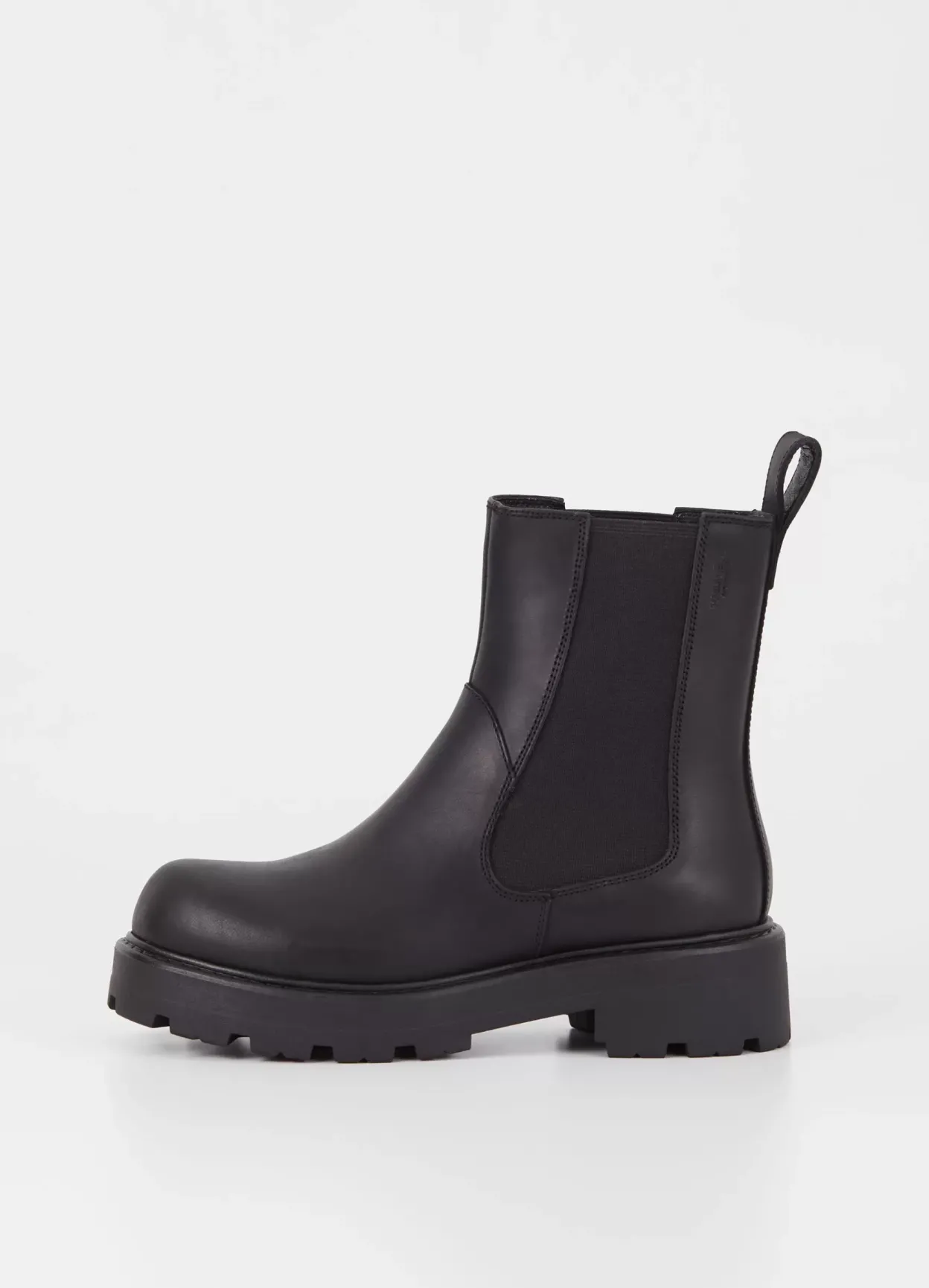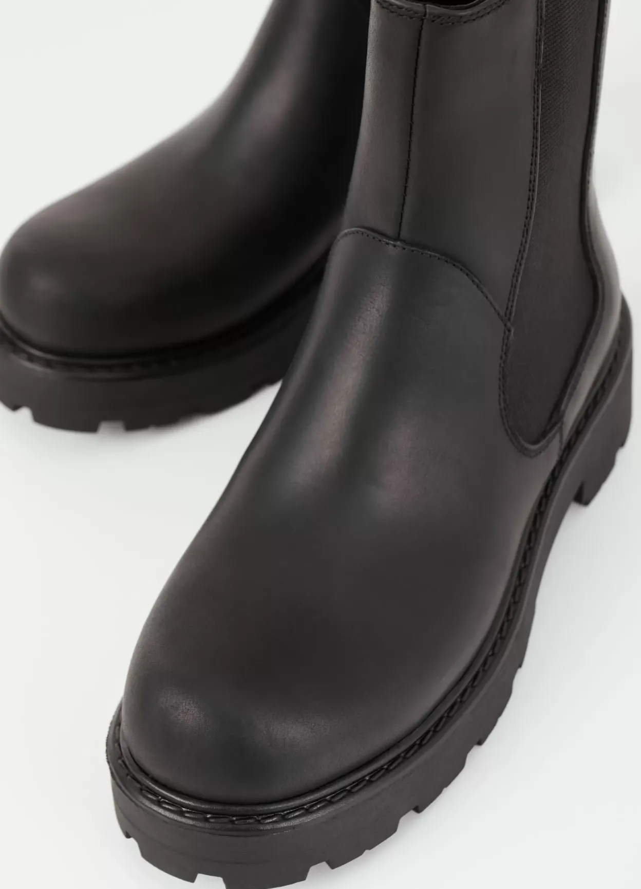 Cosmo 2.0 er varmforede Chelsea støvler i et klassisk look. Modellen er lavet i off-black, olieret nubuck med elastiske sidepaneler, dekorativ hælstrop og rund tåform. Den solide hæl måler 45 mm.