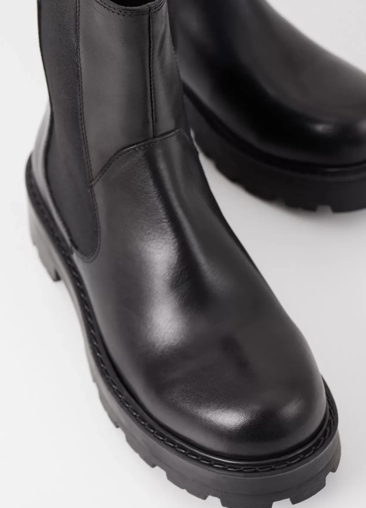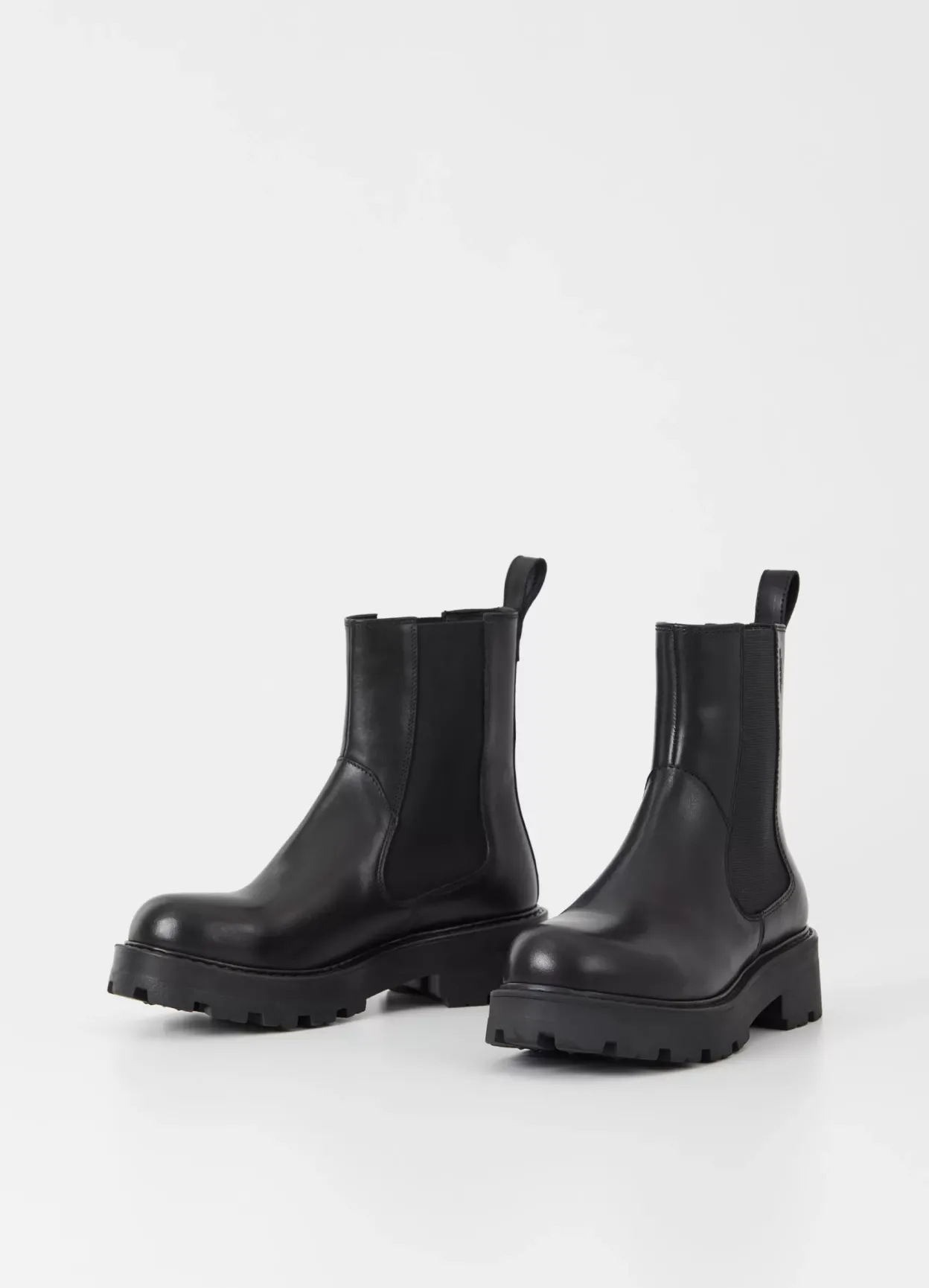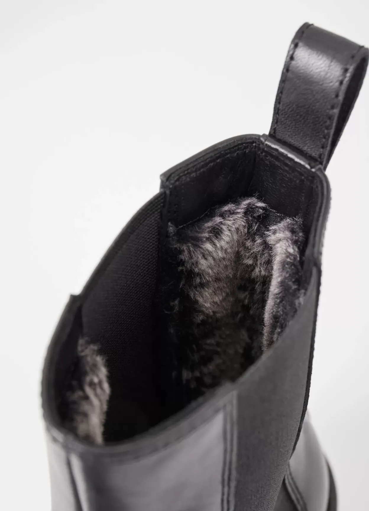 Cosmo 2.0 er varmforede Chelsea støvler i et tidløst design. Modellen er i sort læder med rund tåform, elastiske sidepaneler i skaftet samt varmt for. Modellem har en 45 mm grov hæl. Detaljen: hælstrop.