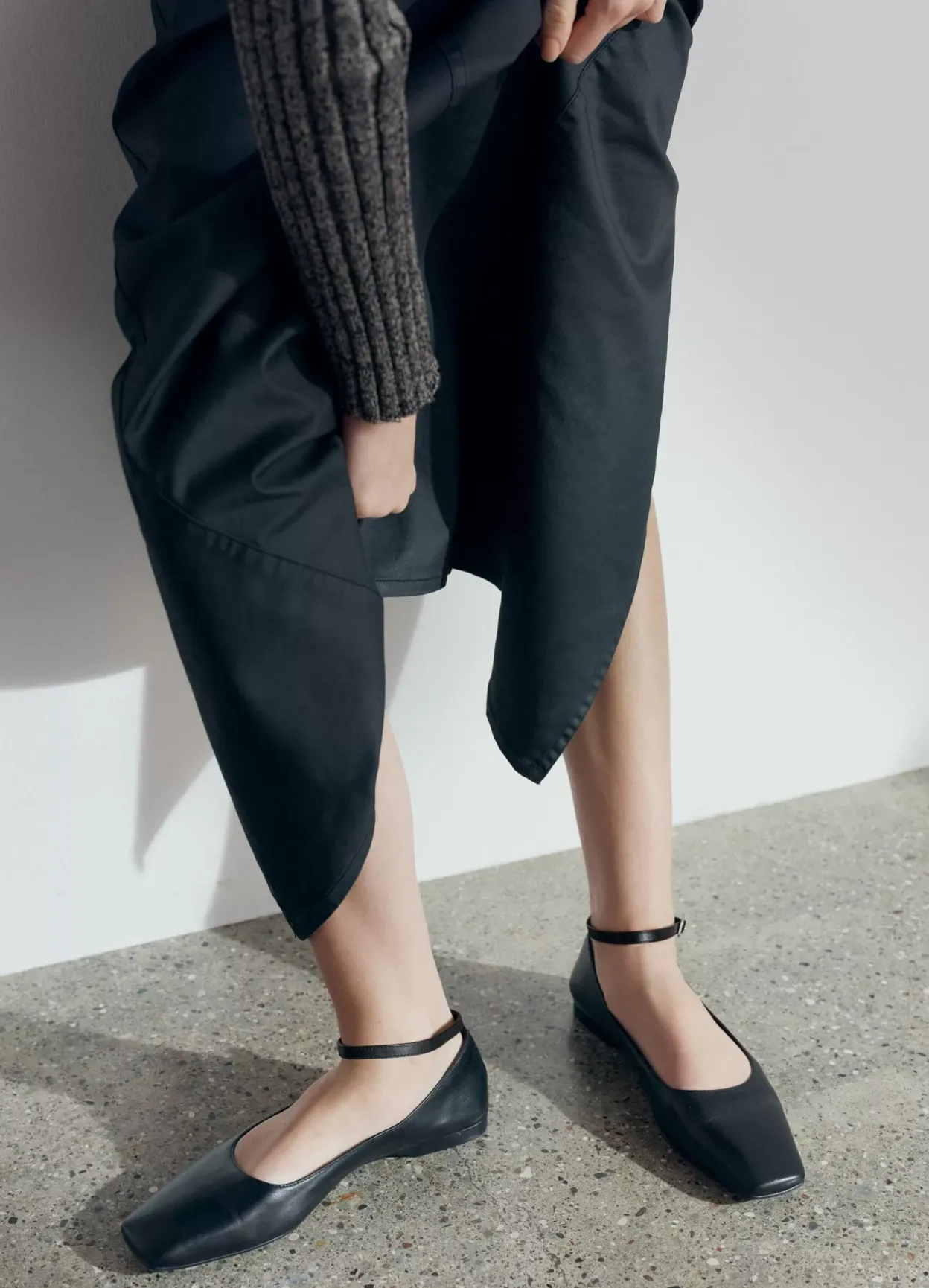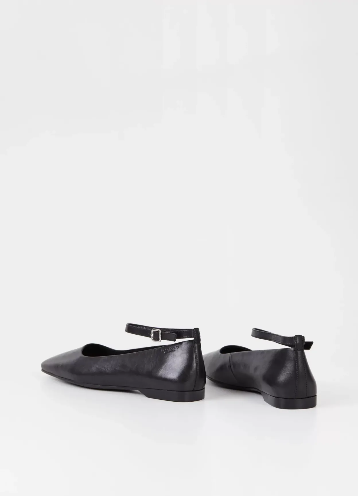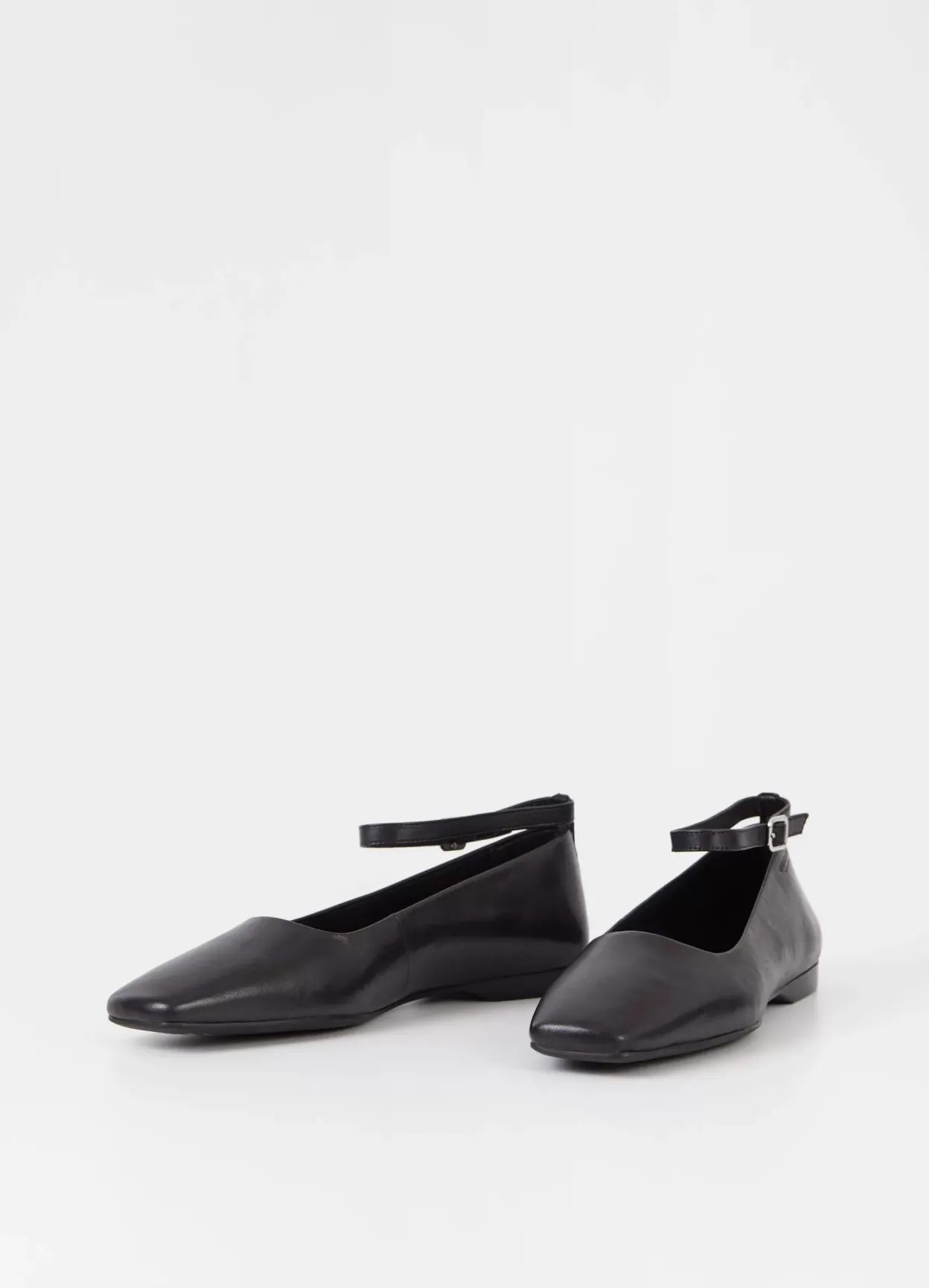 鈥婦elia er ballerinasko med et sofistikeret udtryk. Modellen er lavet i sort læder med firkantet tå og justerbar ankelrem med sølvfarvet spænde. Den lave hæl er 12 mm. Detaljen: indersål i læder.