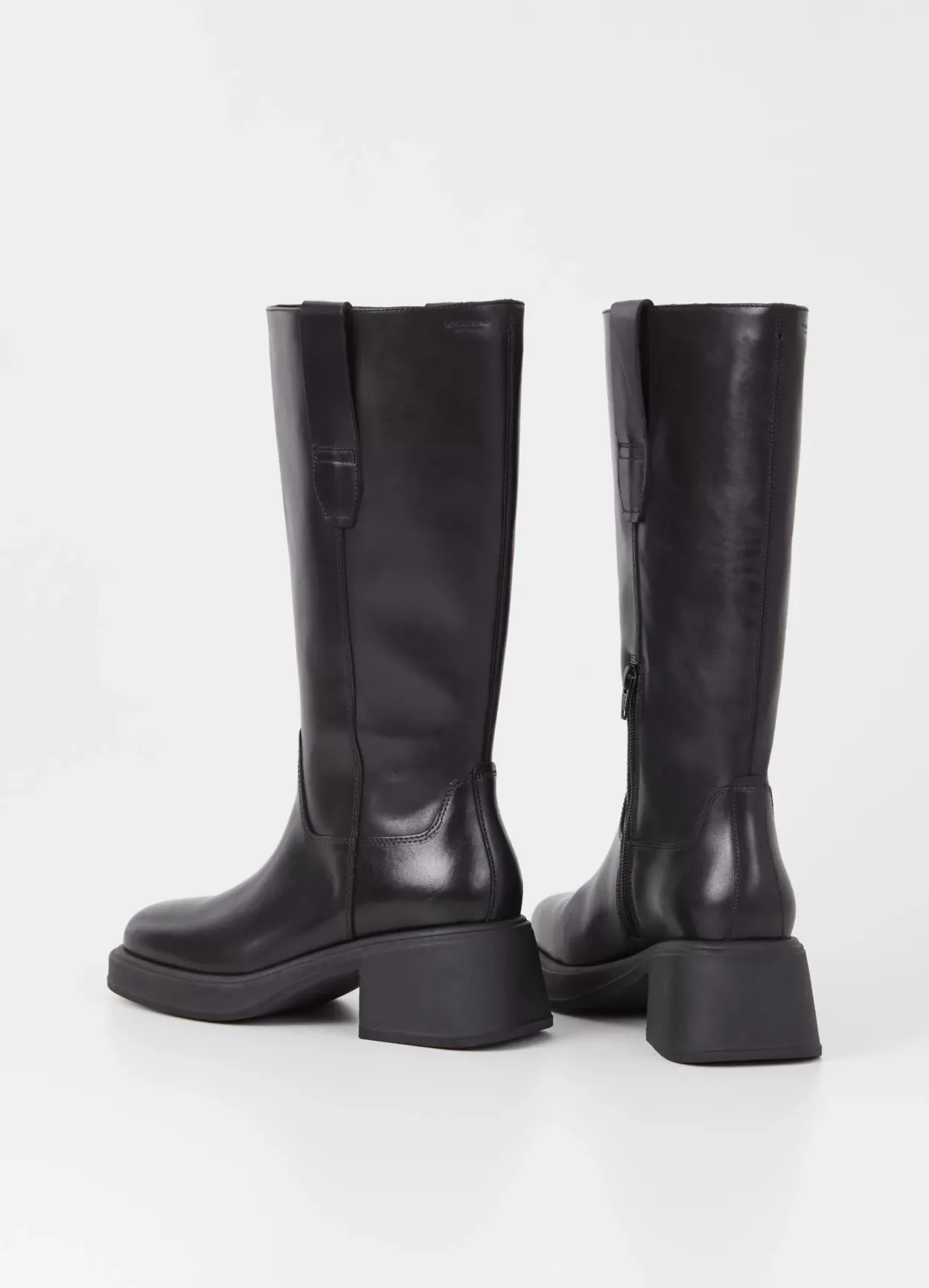 Dorah er høje platformstøvler med et moderne look. De er lavet i sort læder, kantet tåform, lynlås på siden og hælstrop. Hælen er på 59 mm.