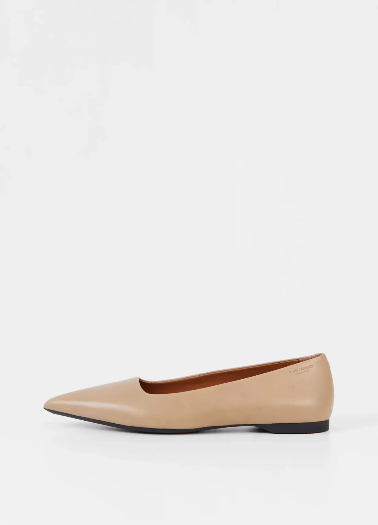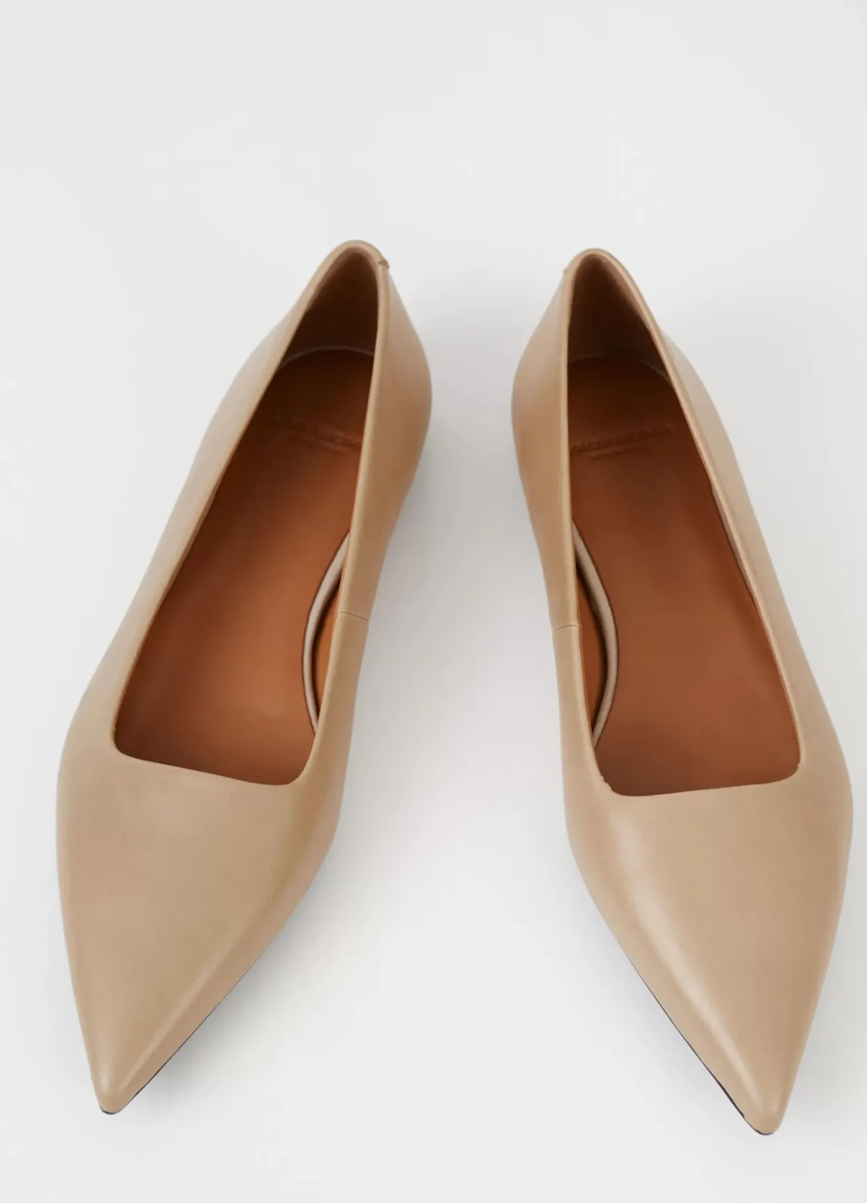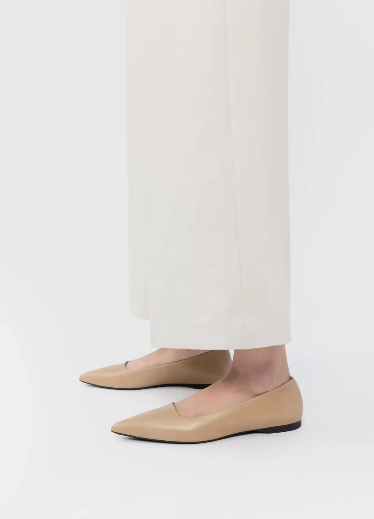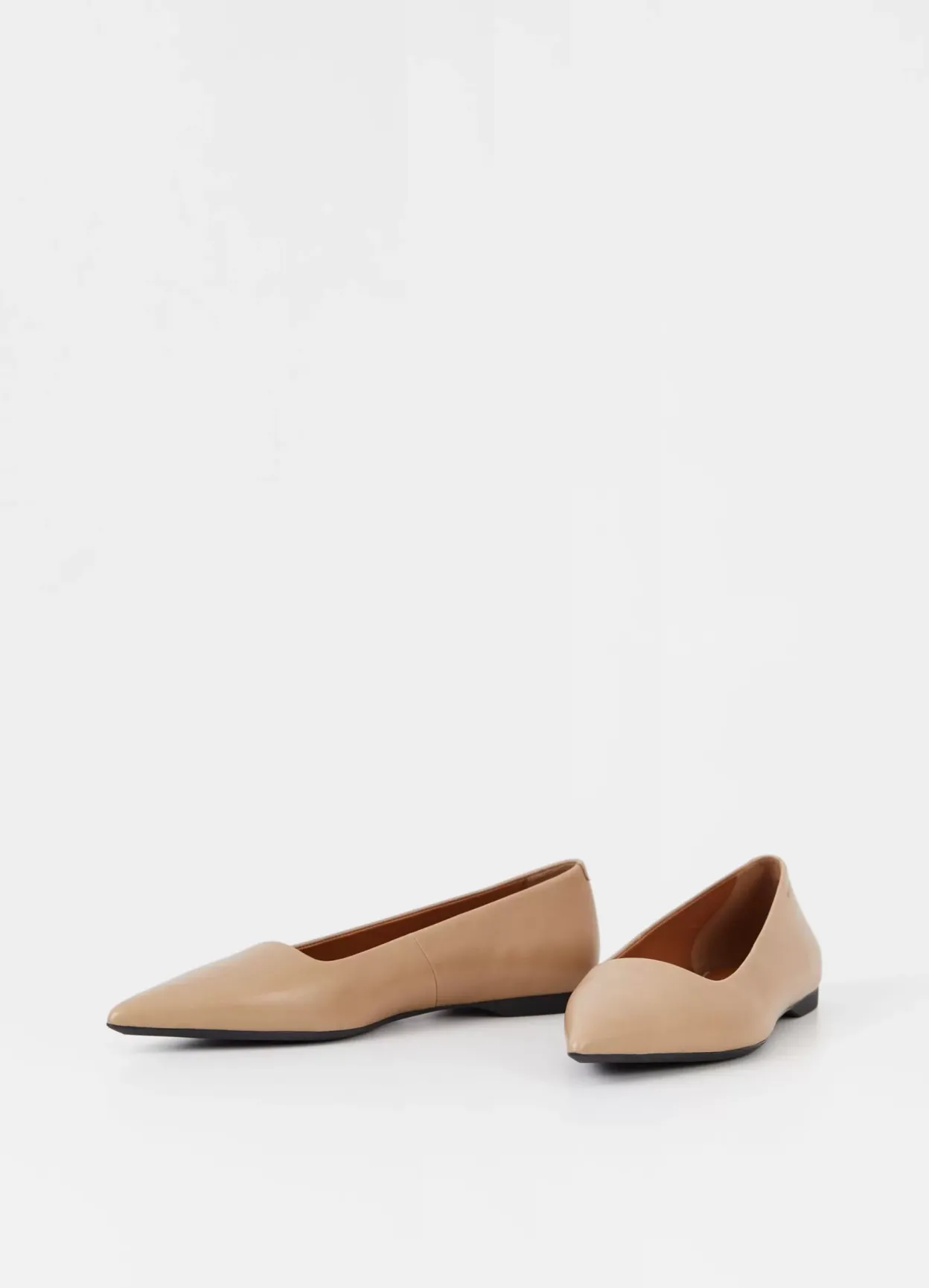 Hermine er stilrene ballerinasko med en moderne silhuet. Modellen er lavet i beige læder med spids tå og tynd sål. Den lave hæl er 10 mm. Detaljen: læder/tekstilfor og indersål i læder.
