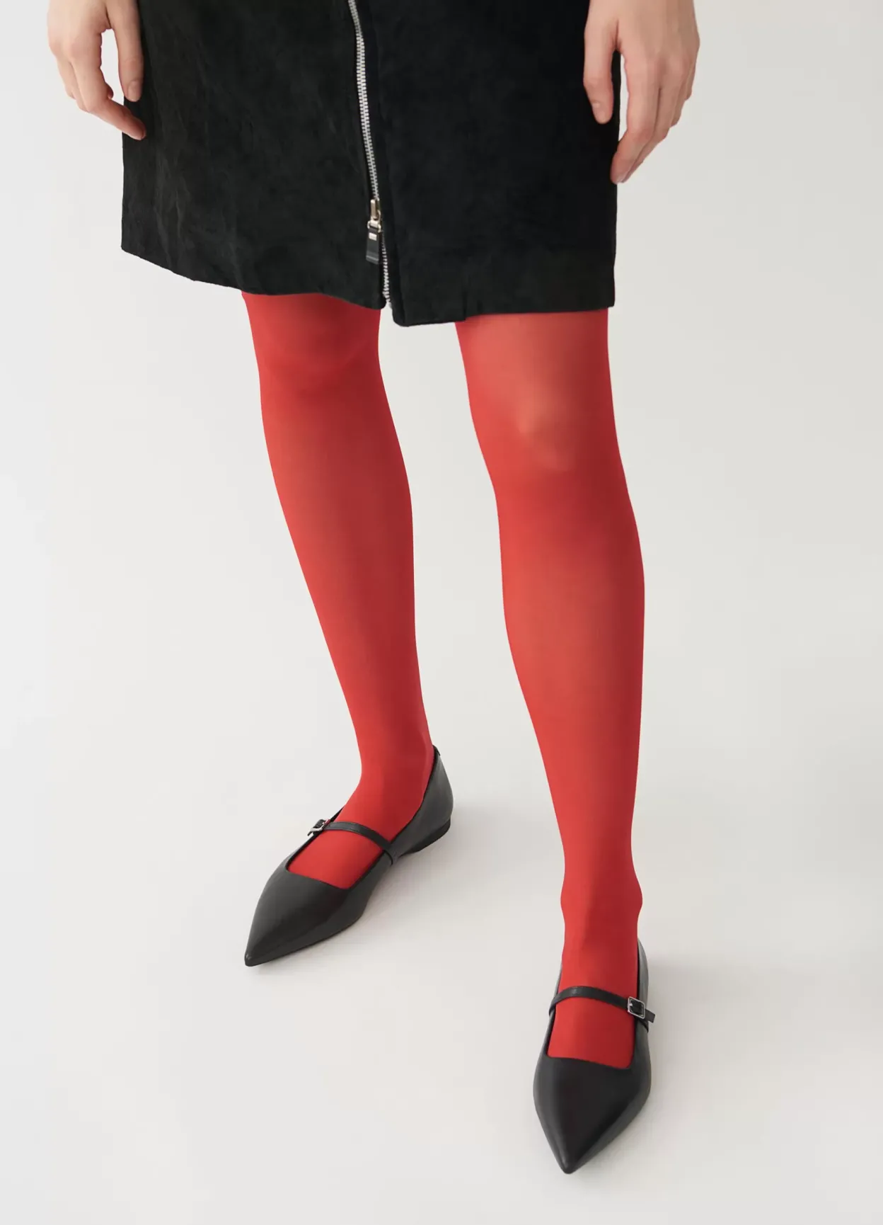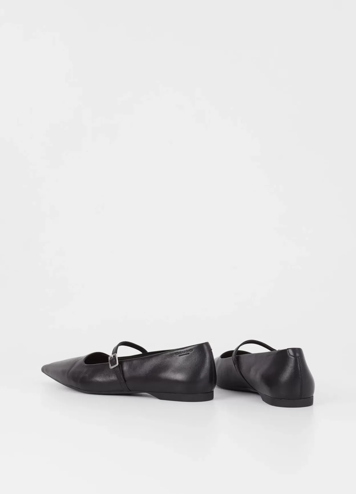 Hermine er edgy Mary Jane-inspirerede flade sko med en opdateret silhuet. Modellen er i sort læder med en spids tåform og en tynd rem med sølvfarvet spænde over foden. Den lave hæl er på 10mm.