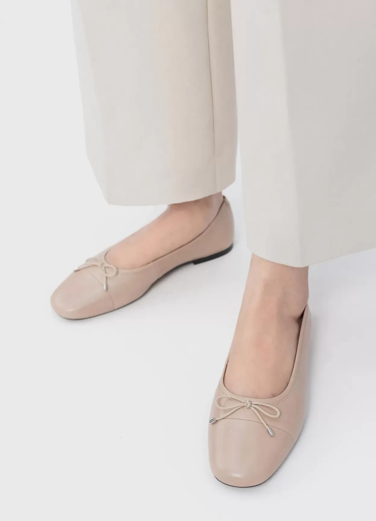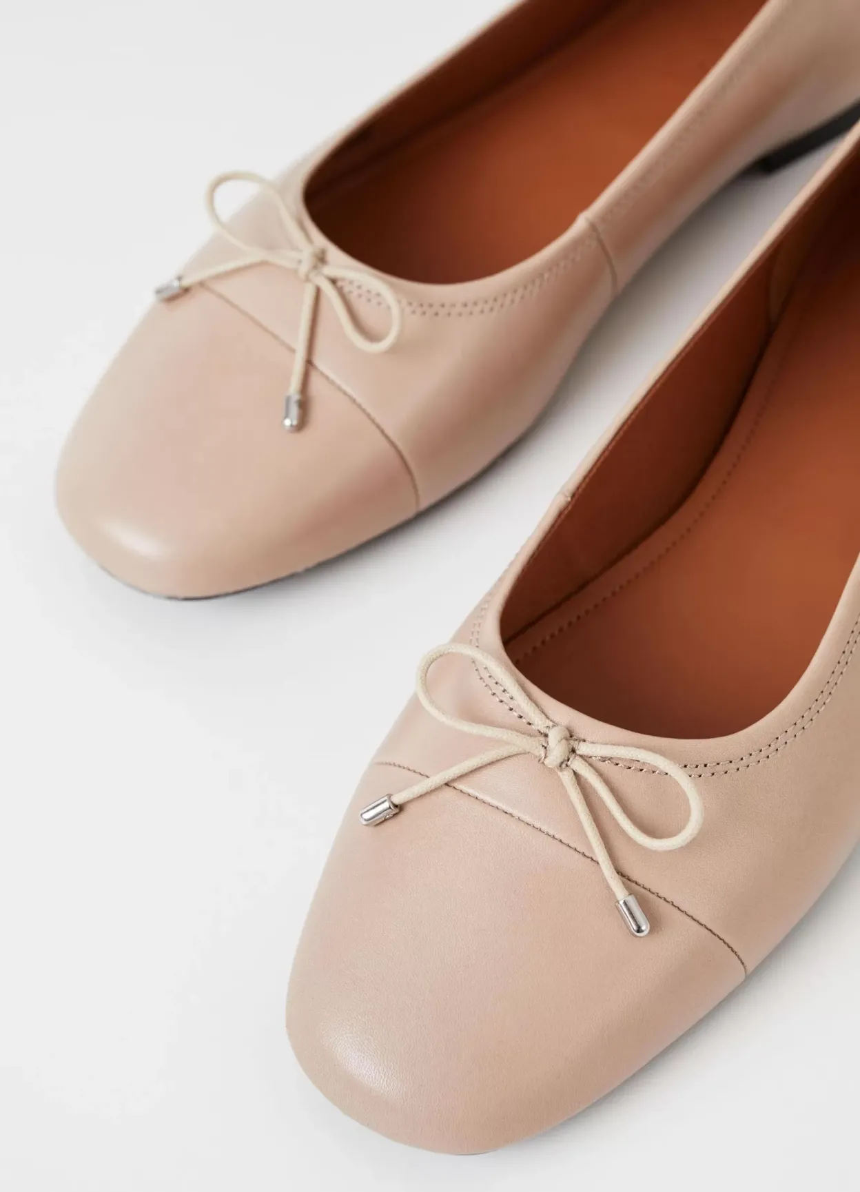 Jolin er klassiske ballerinasko med et rent design. Modellen er lavet i beige læder med rund tå og en dekorativ sløjfe foran. Den tynde sål har en 11 mm lav hæl. Detaljen: tekstilfor og indersål i læder.
