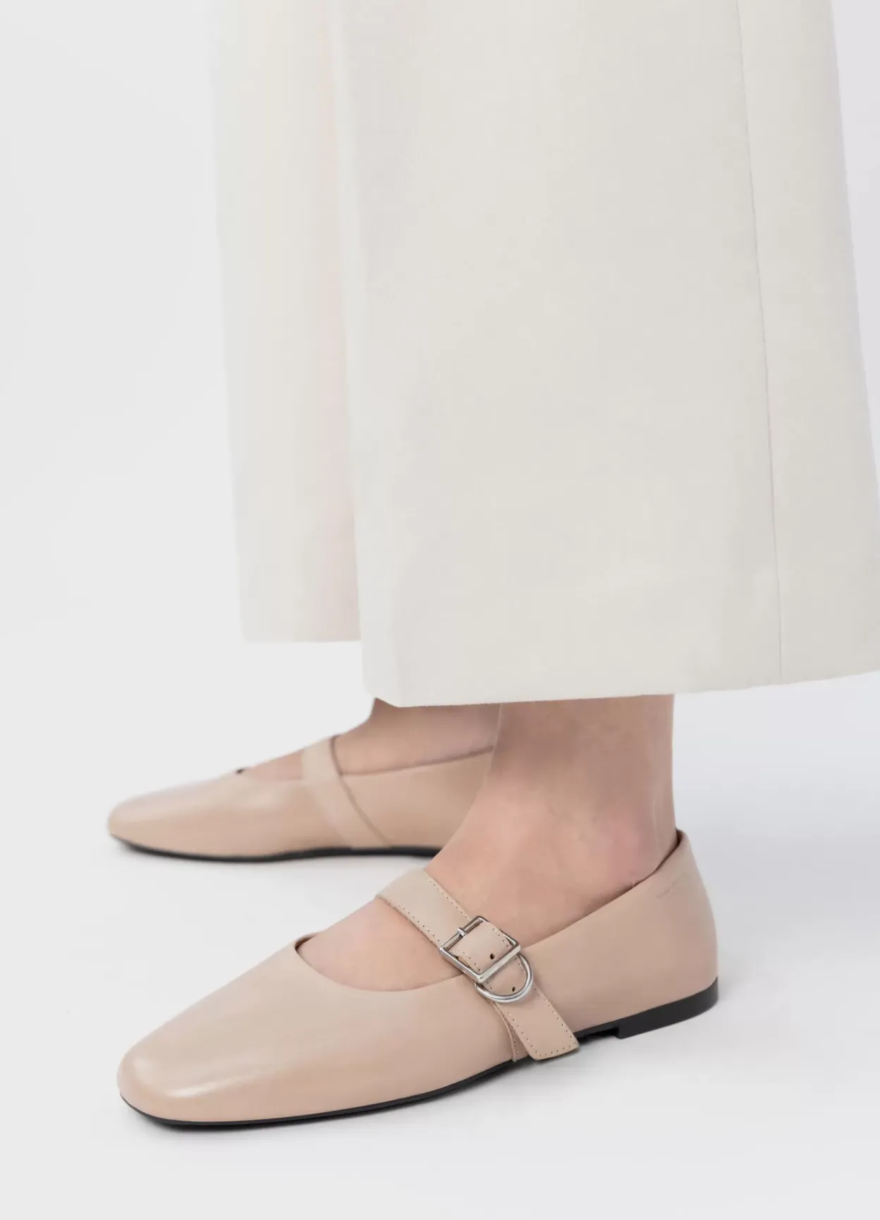 Jolin er tidløse Mary Jane-sko i et stilfuldt design. Modellen er lavet i beige læder men rund tå samt justerbar rem med sølvfarget spænde over fotden. Den tynde sål har en 11 mm lav hæl. Detaljen: tekstilfor og indersål i læder.