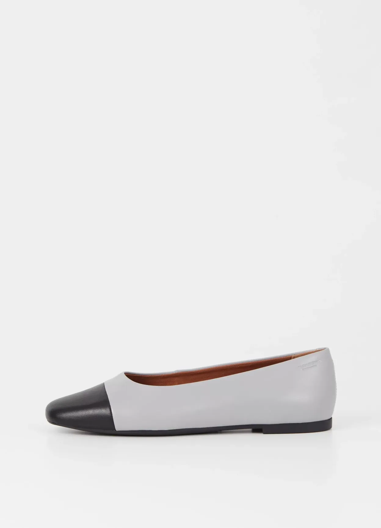 Jolin er tidløse ballerinasko med en opdateret look. Modellen er lavet i gråblåt læder, og den runde tå er i sort læder. Den tynde sål har en 11 mm lav hæl. Detaljen: tesktilfor og indersål i læder.