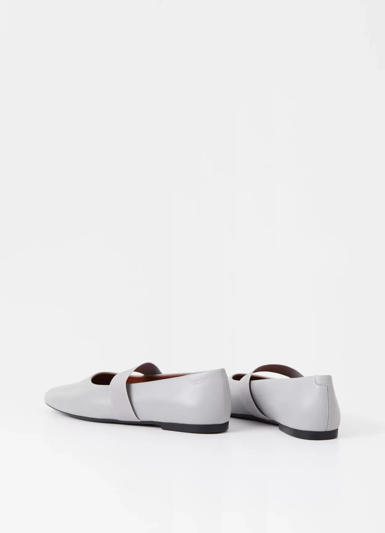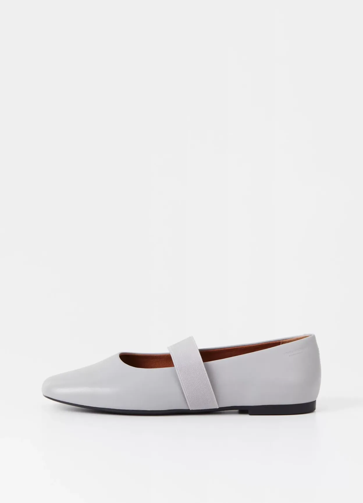 Jolin er tidløse ballerinasko i et minimalistisk design. Modellen er lavet i gråblåt læder med rund tå og en elastisk rem over foden. Den tynde sål er på 11 mm. Detaljen: tekstilfor og indersål i læder.
