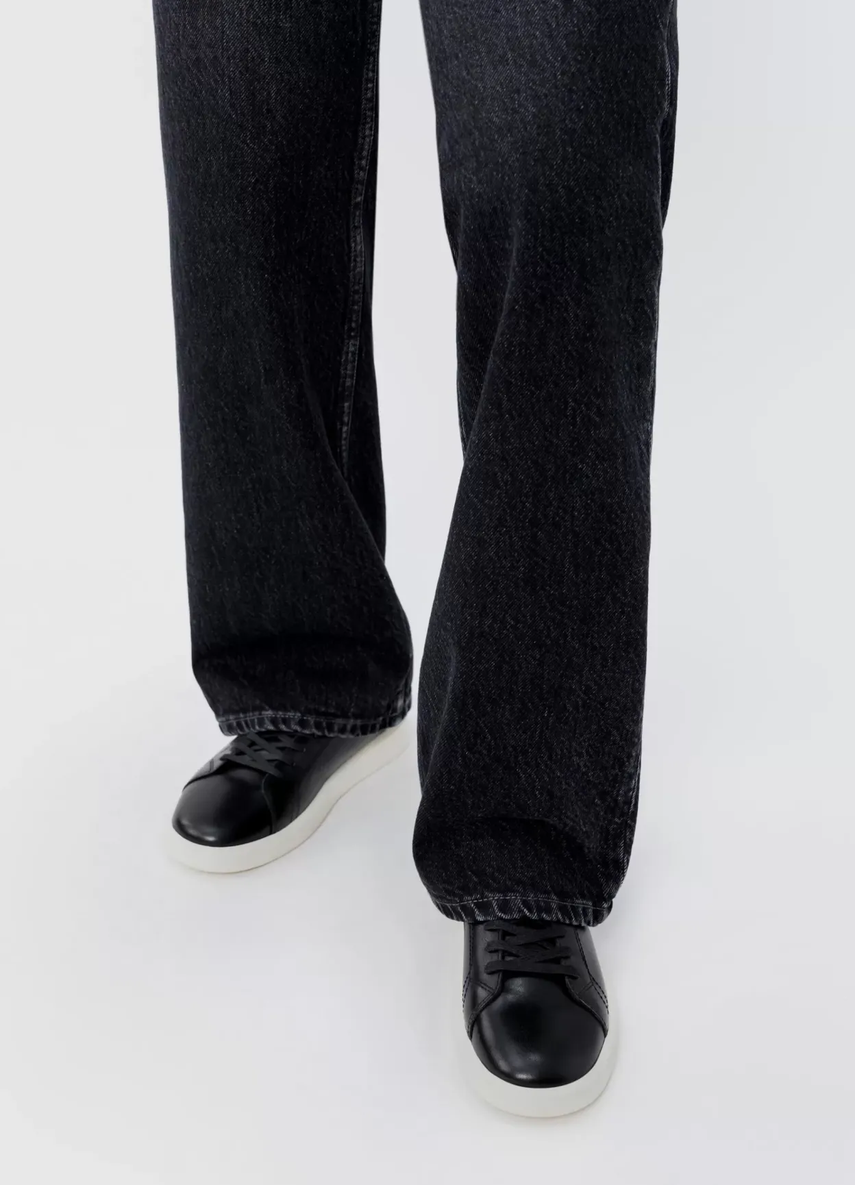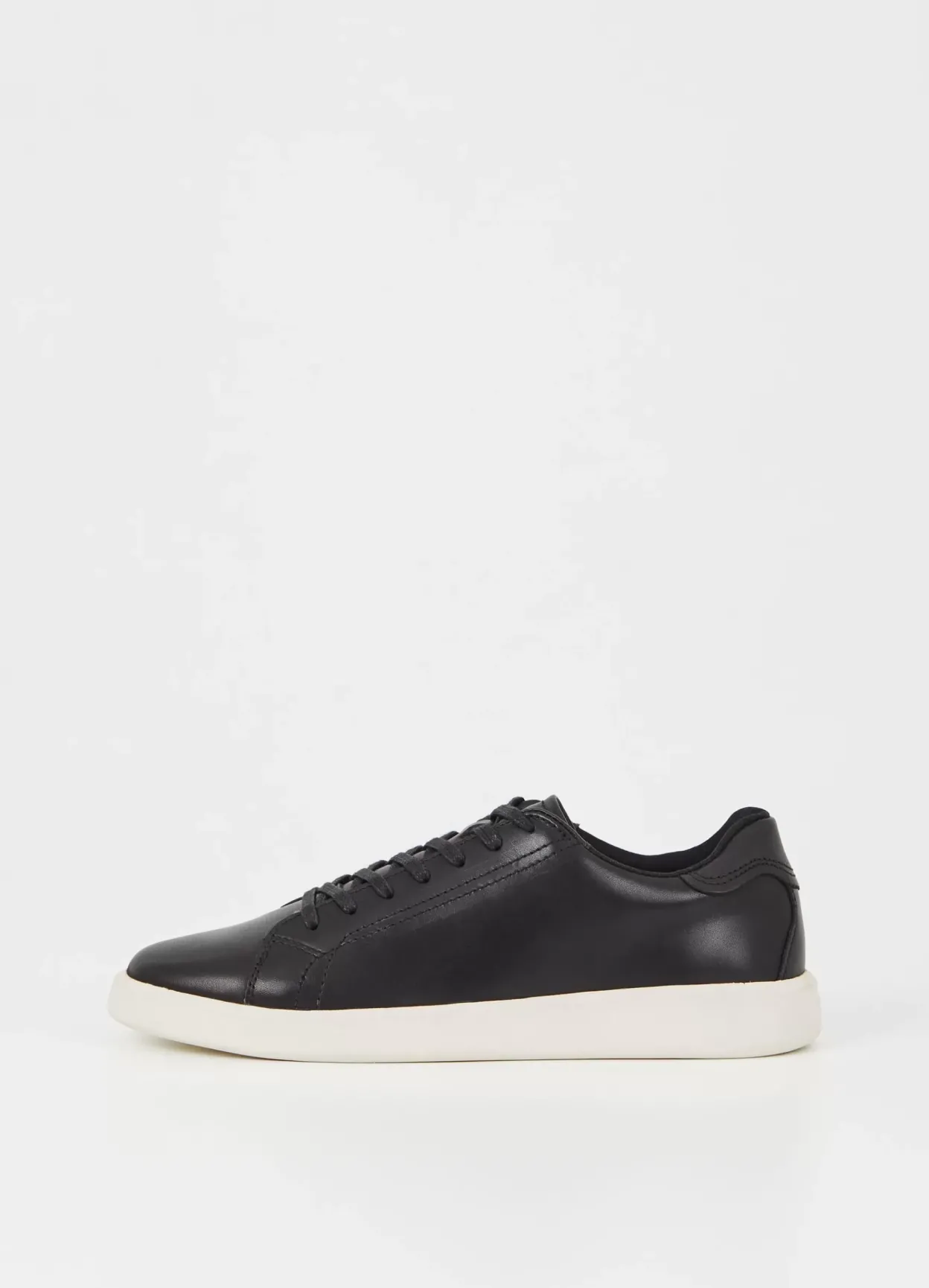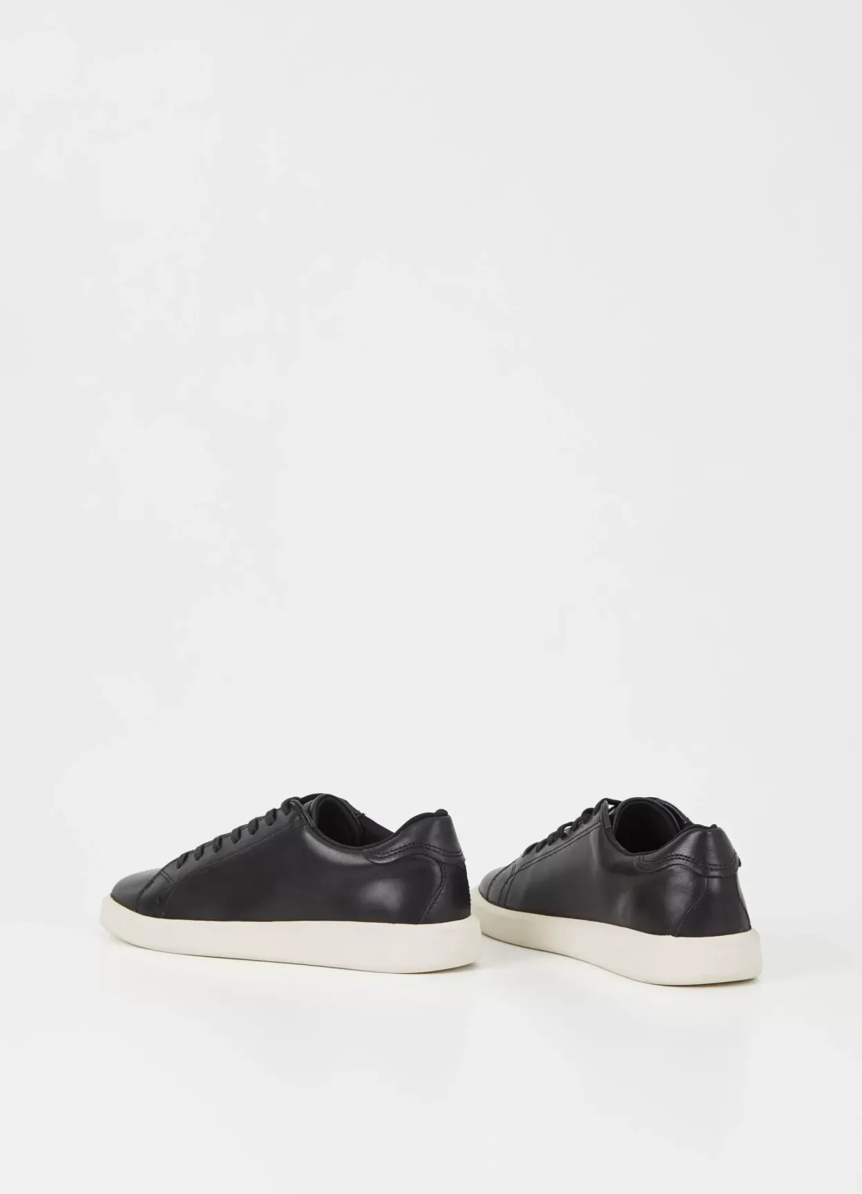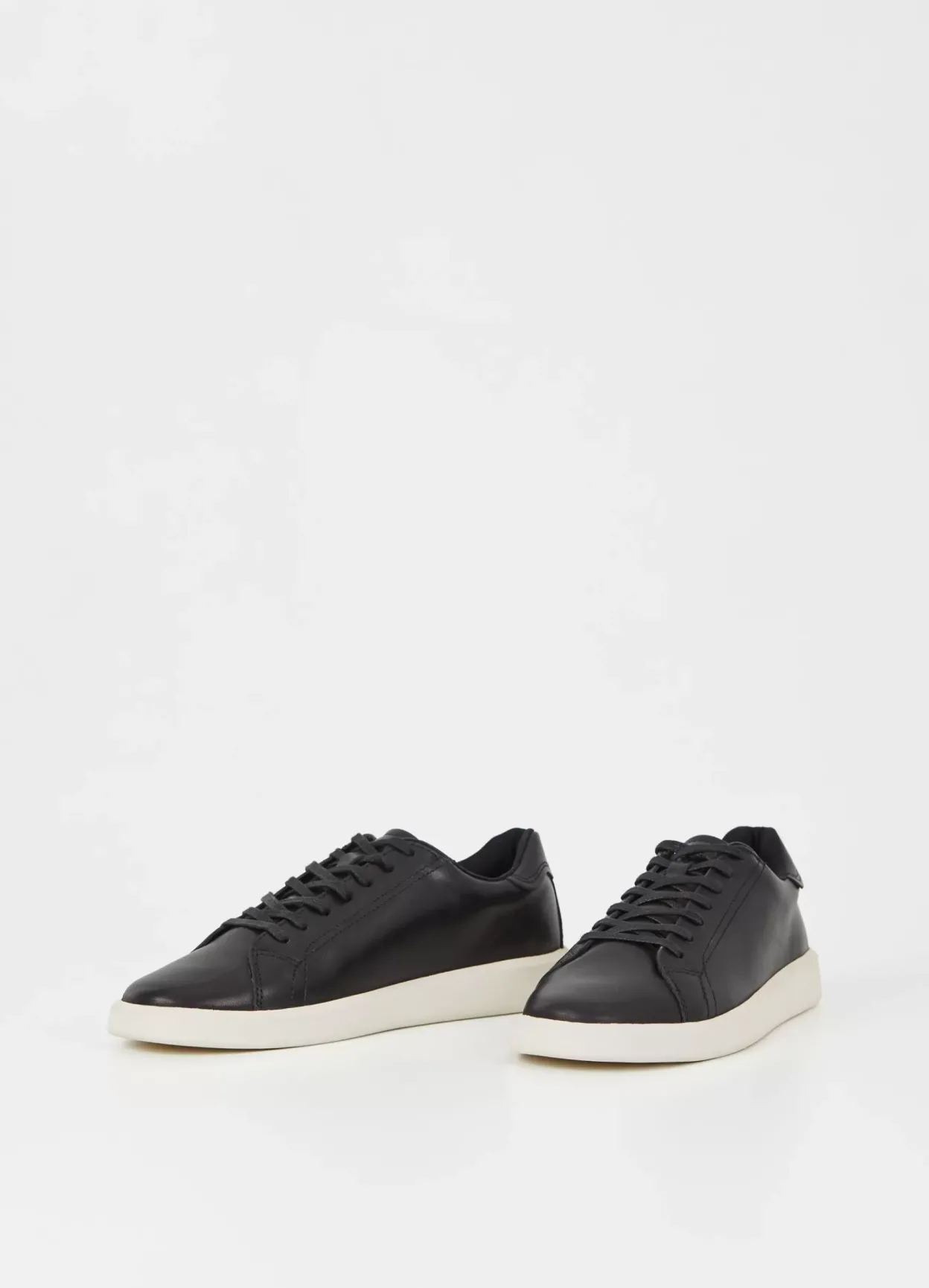 Maya er lave sneakers med en minimalistisk overside i sort skind. Modellen har en rund tåform, snøre og detaljeret hælkappe. Sålen er på 25 mm.