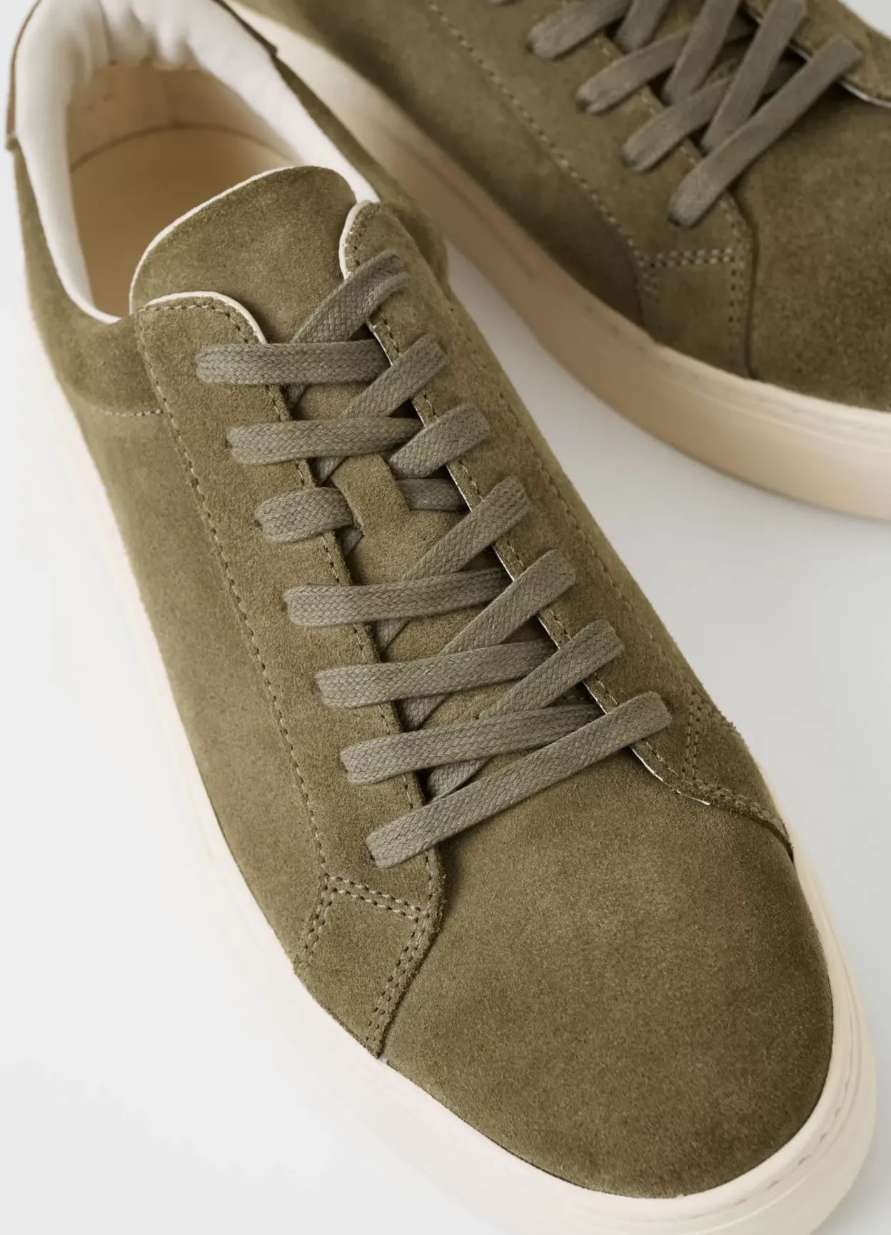 Paul 2.0 er minimalistiske sneakers med en lav silhuet. Modellen er lavet i olivengrønt ruskind med polstret åbning, rund tå og snørebånd. Den solide ydersål er 31 mm.