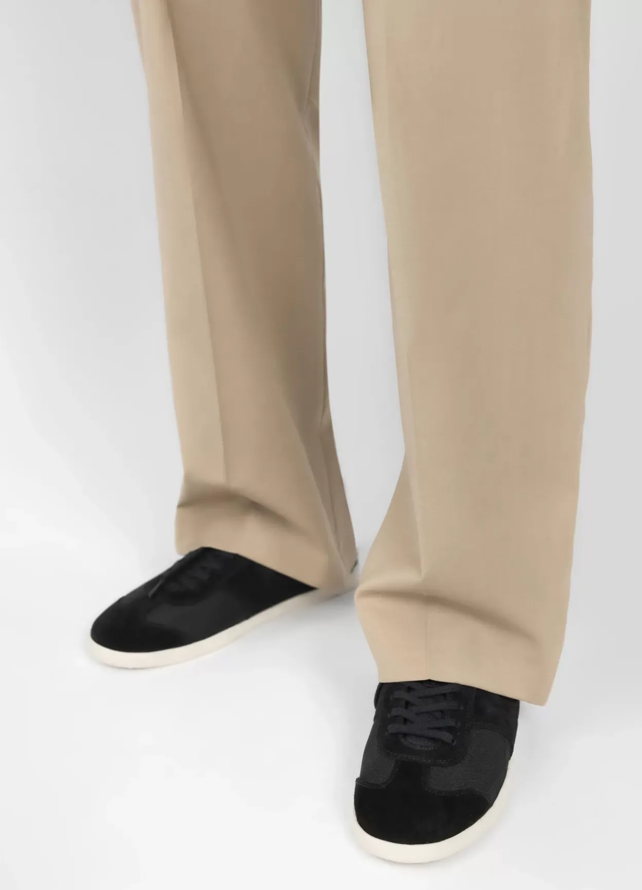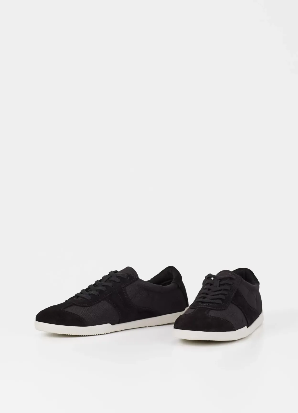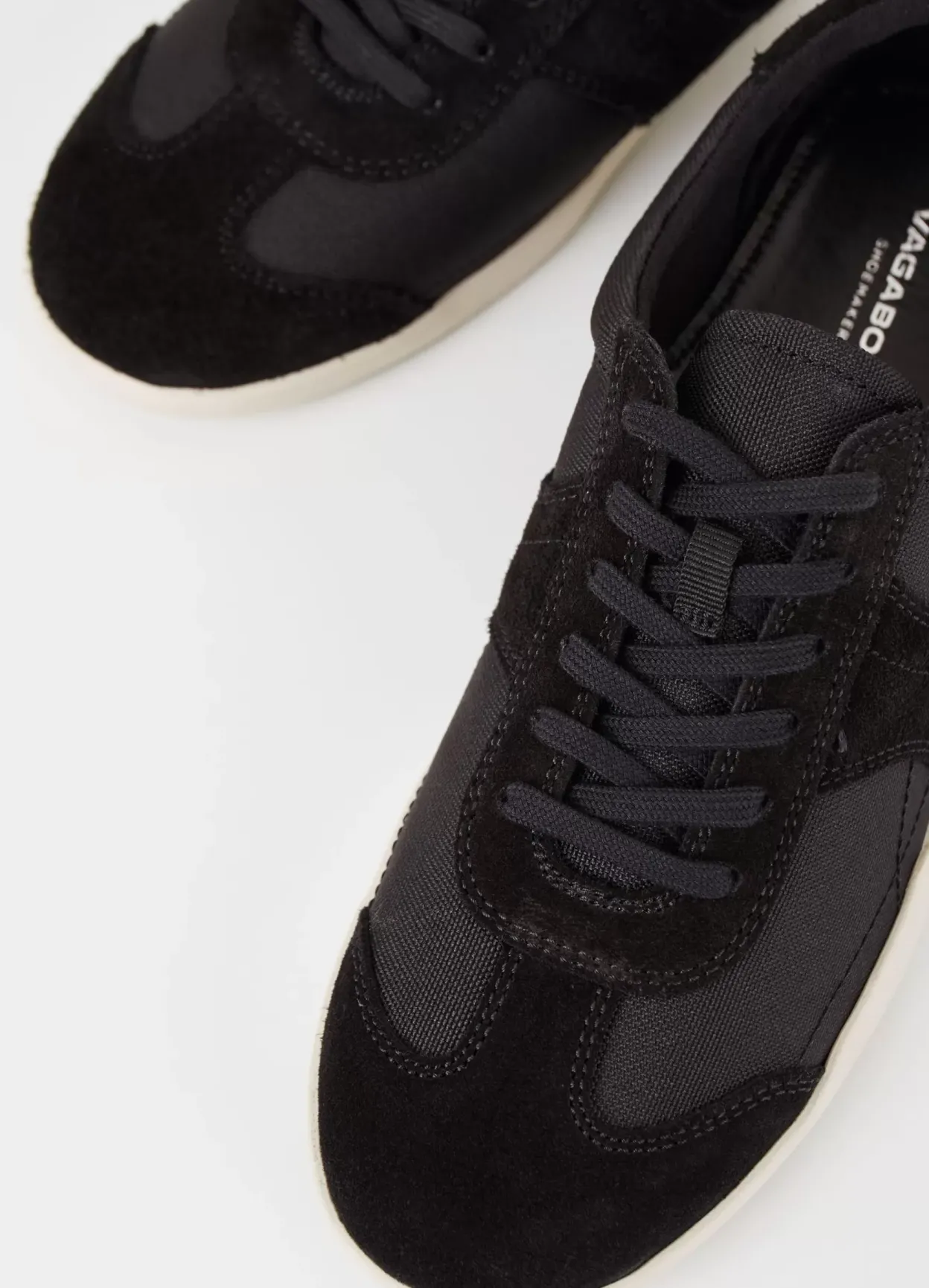 Remi er minimalistiske hverdags-sneakers med snørebånd. Modellen er lavet i sort tekstil med paneler i sort ruskind. Den lave sål er 25 mm. Detaljen: polstret åbning og rund tåform.