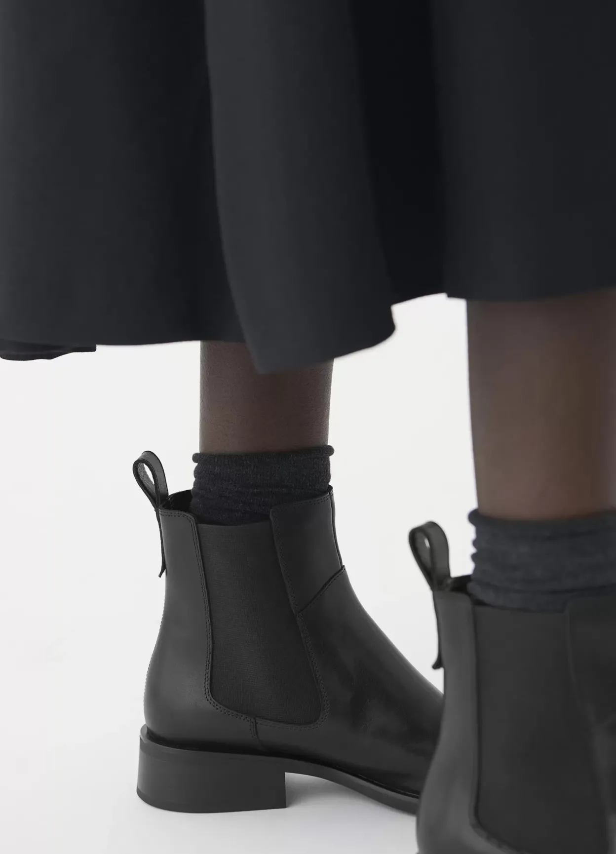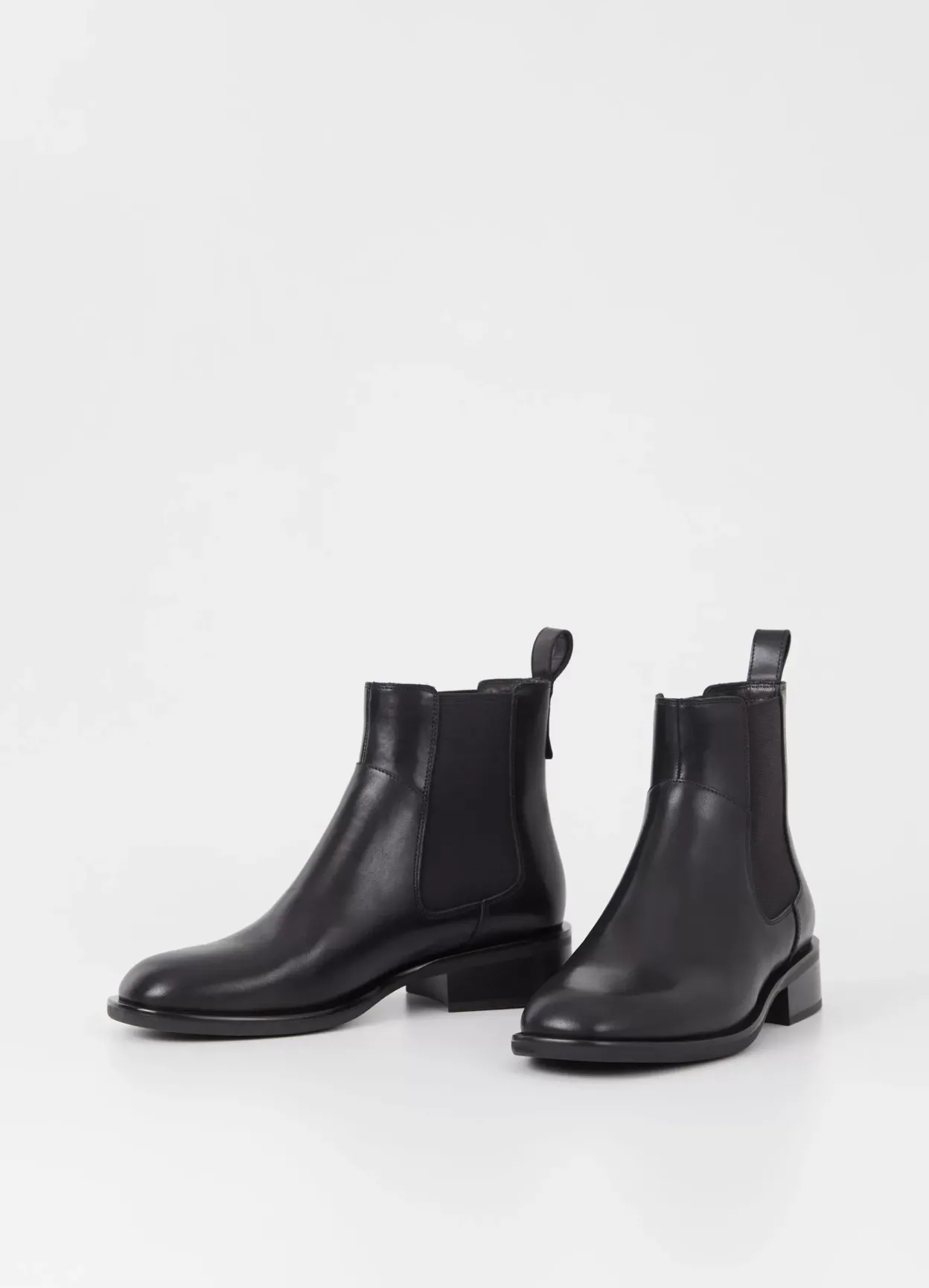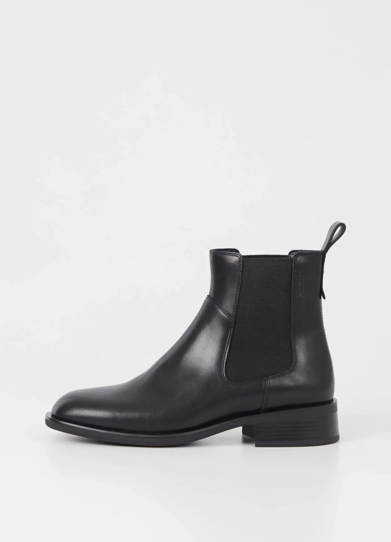Sheila er klassiske Chelsea støvler i et tidløst design. Modellen er lavet i sort læder med elastiske sidepaneler, hælstrop og rund tå. Den lave hæl er 38 mm.