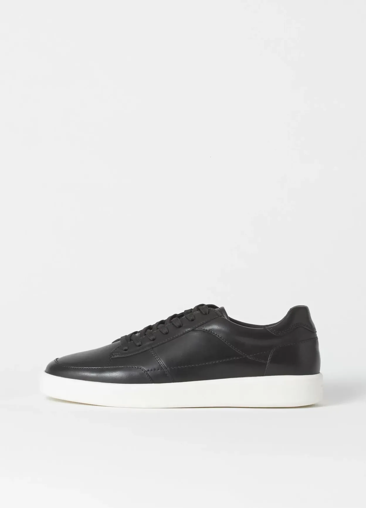 Teo er dressy low-top sneakers med en ren silhuet. Modellen er i sort læder med snøre, rund tå og detaljerede søm på oversiden. Den høje sål er 35 mm.