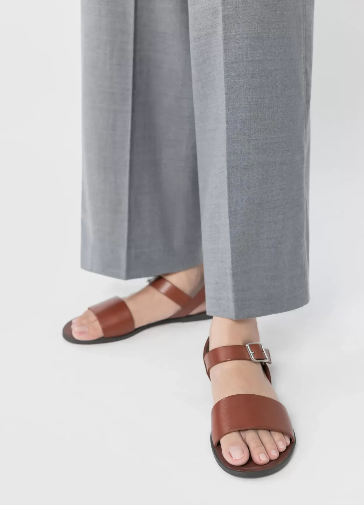 Tia 2.0 er stilfulde sandaler i et minimalistisk design til hverdagsuniformen. De er lavet i congacfarvet læder med en bred rem over foden samt justerbar ankelrem. Den slanke sål er 10 mm.