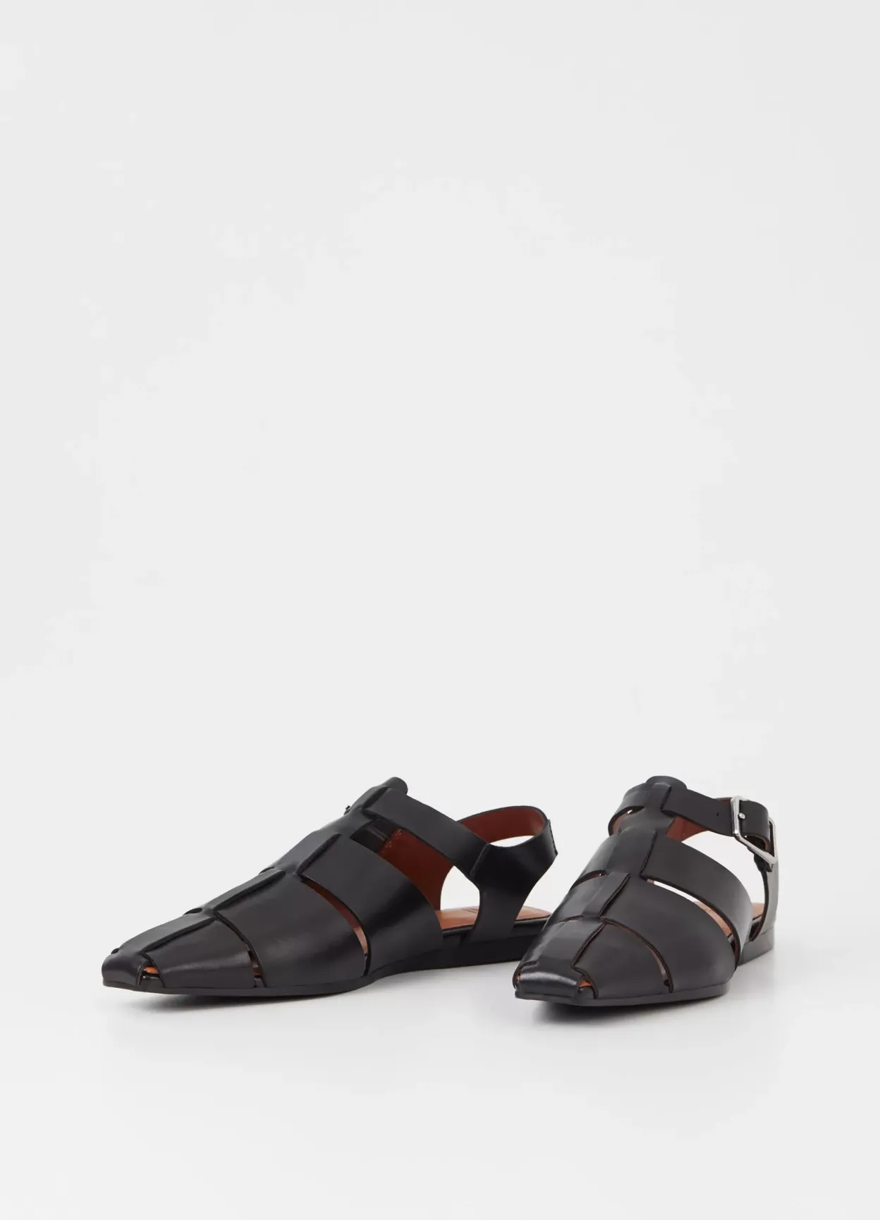 Wioletta er fisherman-inspirerede sandaler med et moderne design. Modellen er i sort læder med flettede remme over foden, spids tå og justerbar ankelrem. Den slanke sål har en hæl på 11 mm. Detaljen: læderfor og indersål i læder.