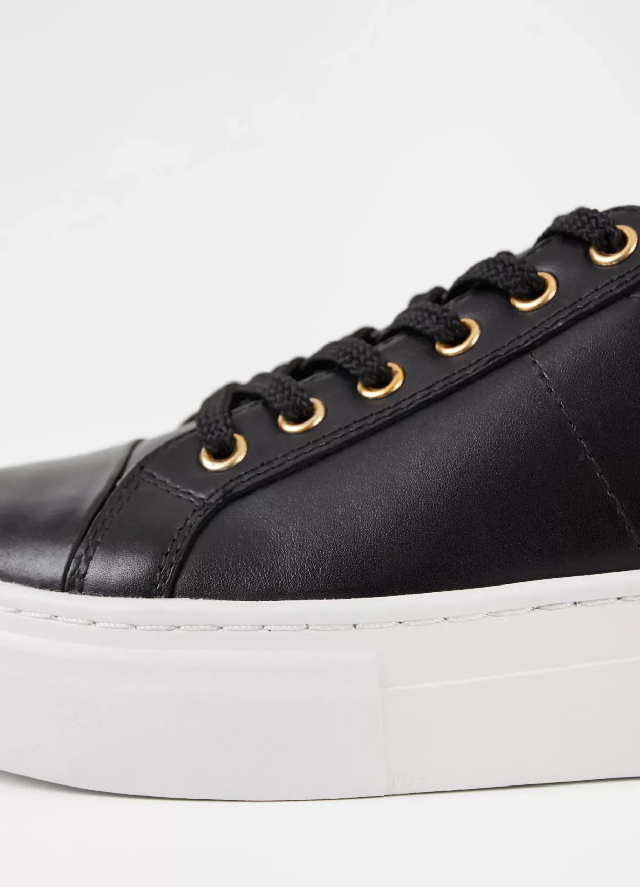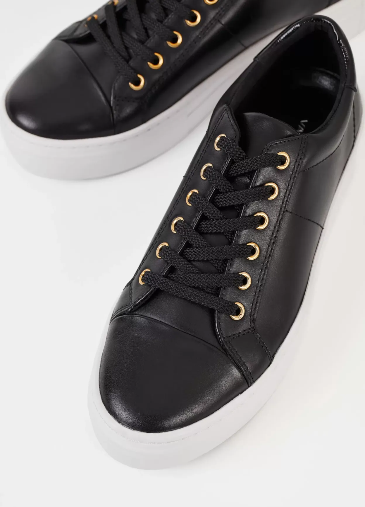 Zoe Platform er stilrene hverdagssneakers med et minimalistisk design. Oversiden er i sort læder med en rund tå, detaljeret snøre og en hælkappe i krokodillepræget læder. Modellen har kraftige gummisåler på 40 mm.