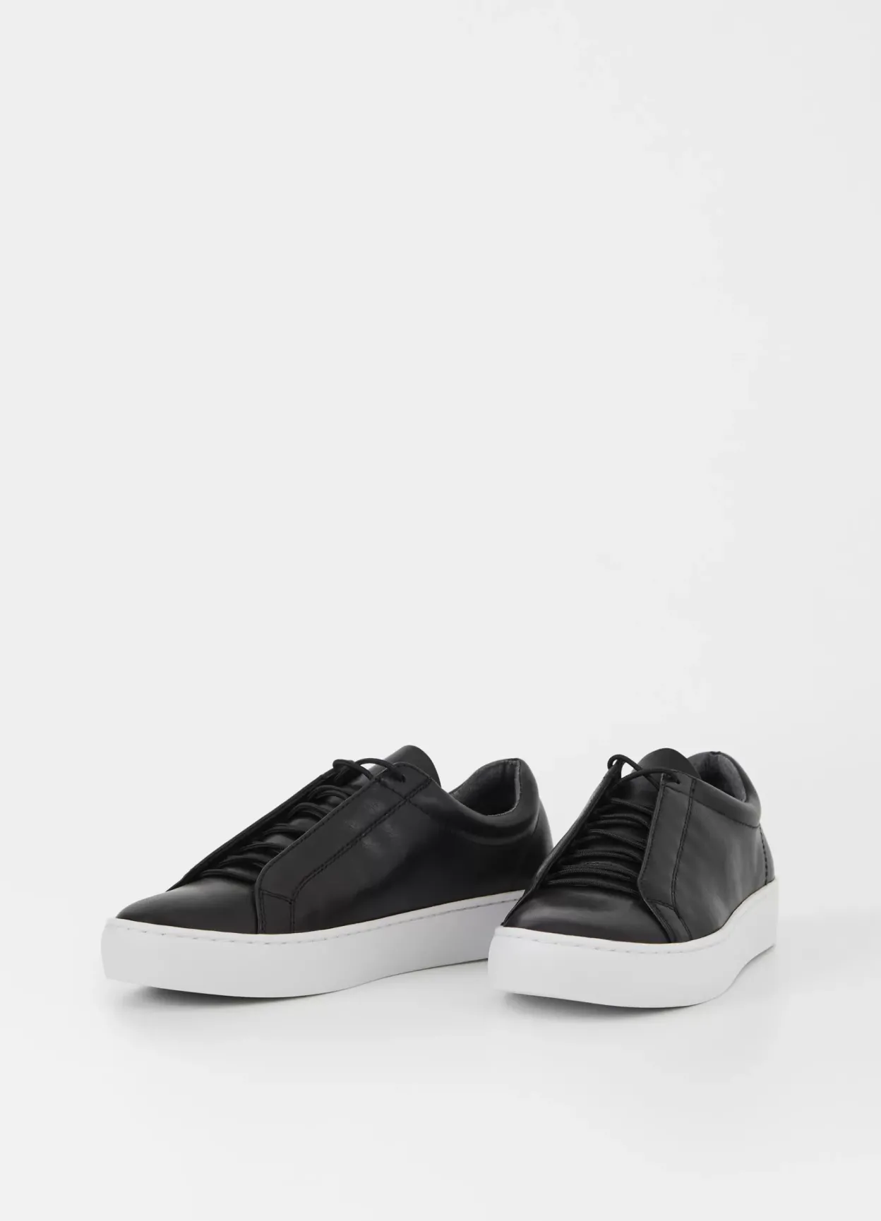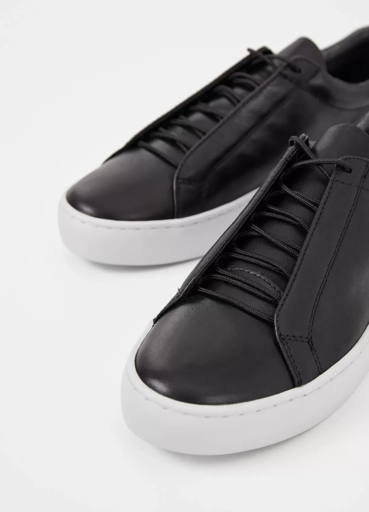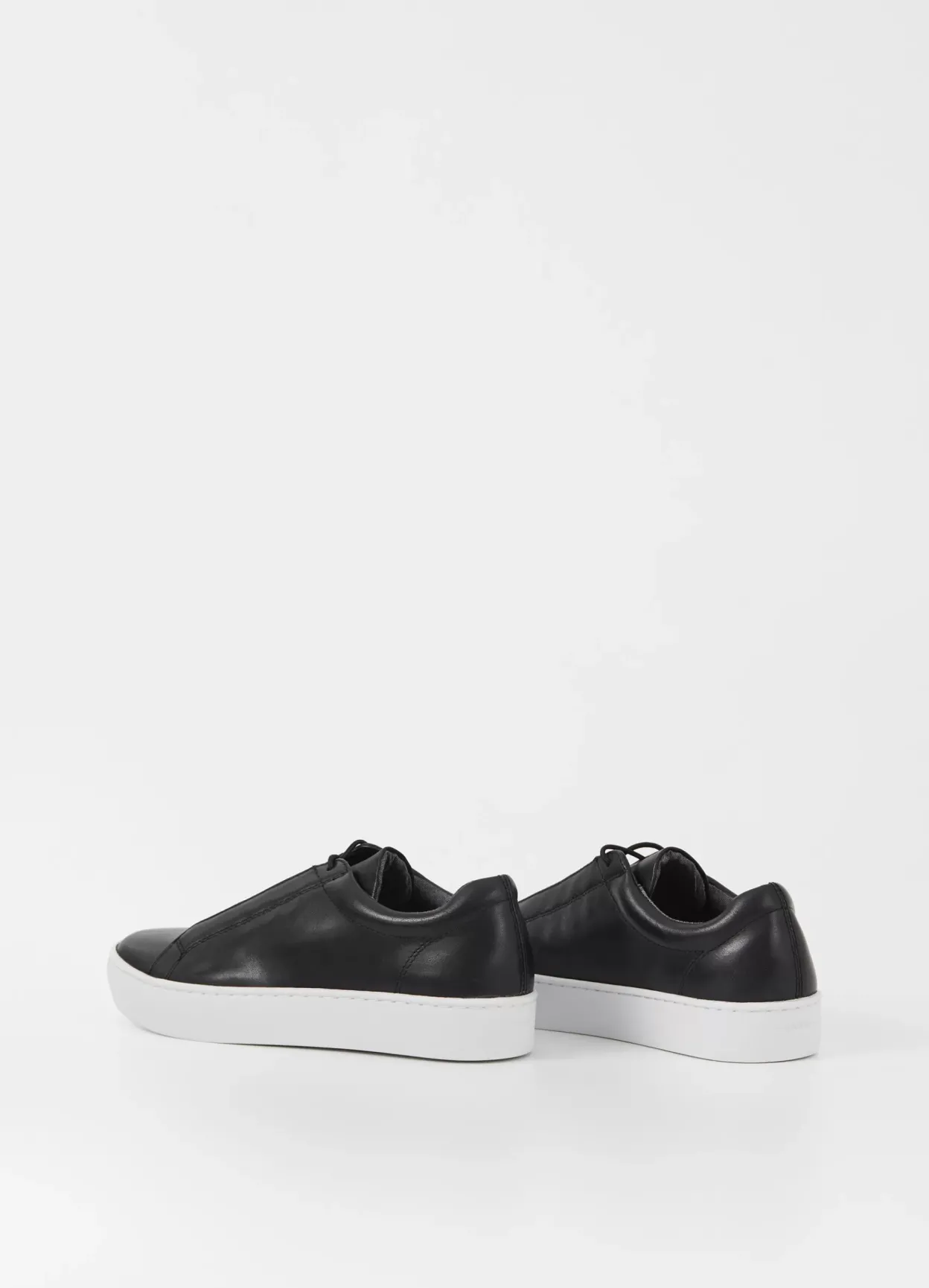 Zoe er tidløse hverdagssneakers med en minimalistisk silhuet. Oversiden er i sort læder med rund tåform, skjult snøre og tynde snørebånd i bomuld. Den slanke sål er på 29 mm.