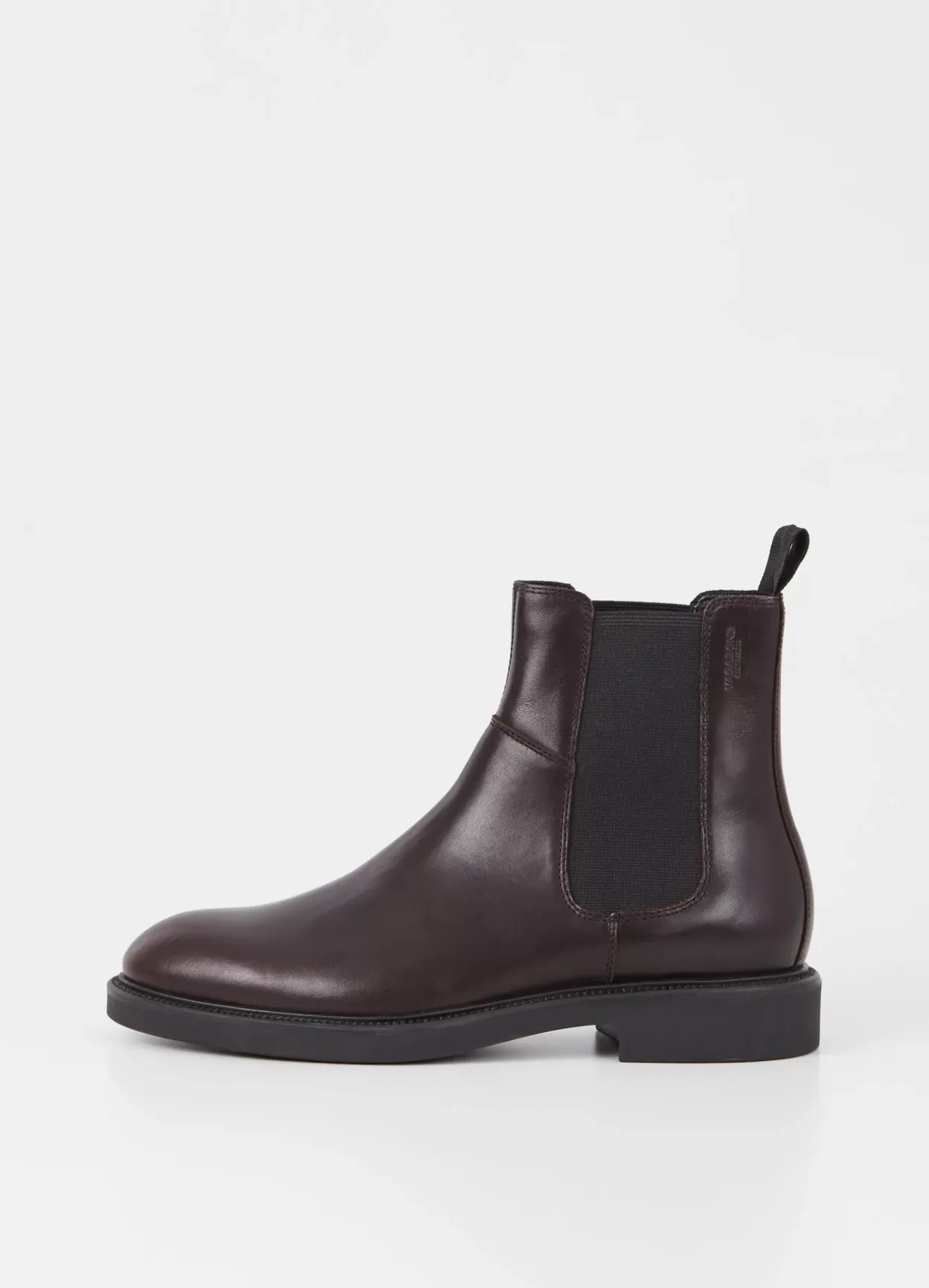 Alex M er stilrene Chelsea støvler i et rent design. Modellen er i mørkebrunt læder med elastiske sidepaneler, rund tåform og trækstroppe. Den solide gummisål er på 33 mm.