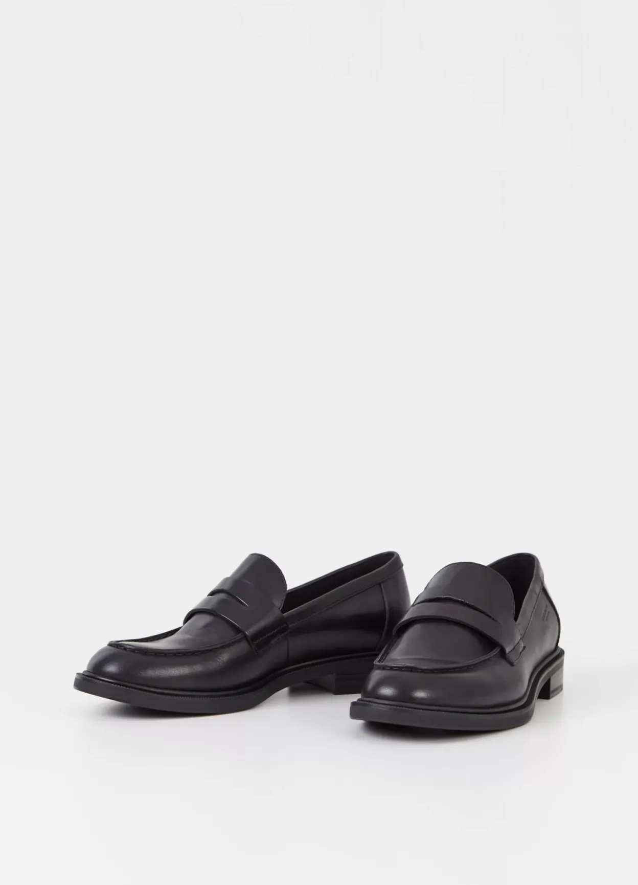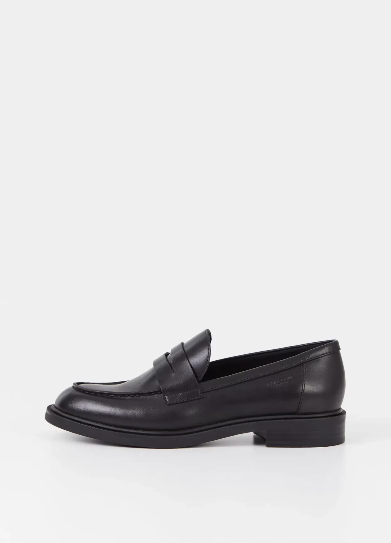 Amina er klassiske pennyloafers med en stilrent look. Modellen er lavet i sort læder med rund tå, pennyrem over foden samt dekorative moc-toe detaljer. Den lave hæl er 30 mm.