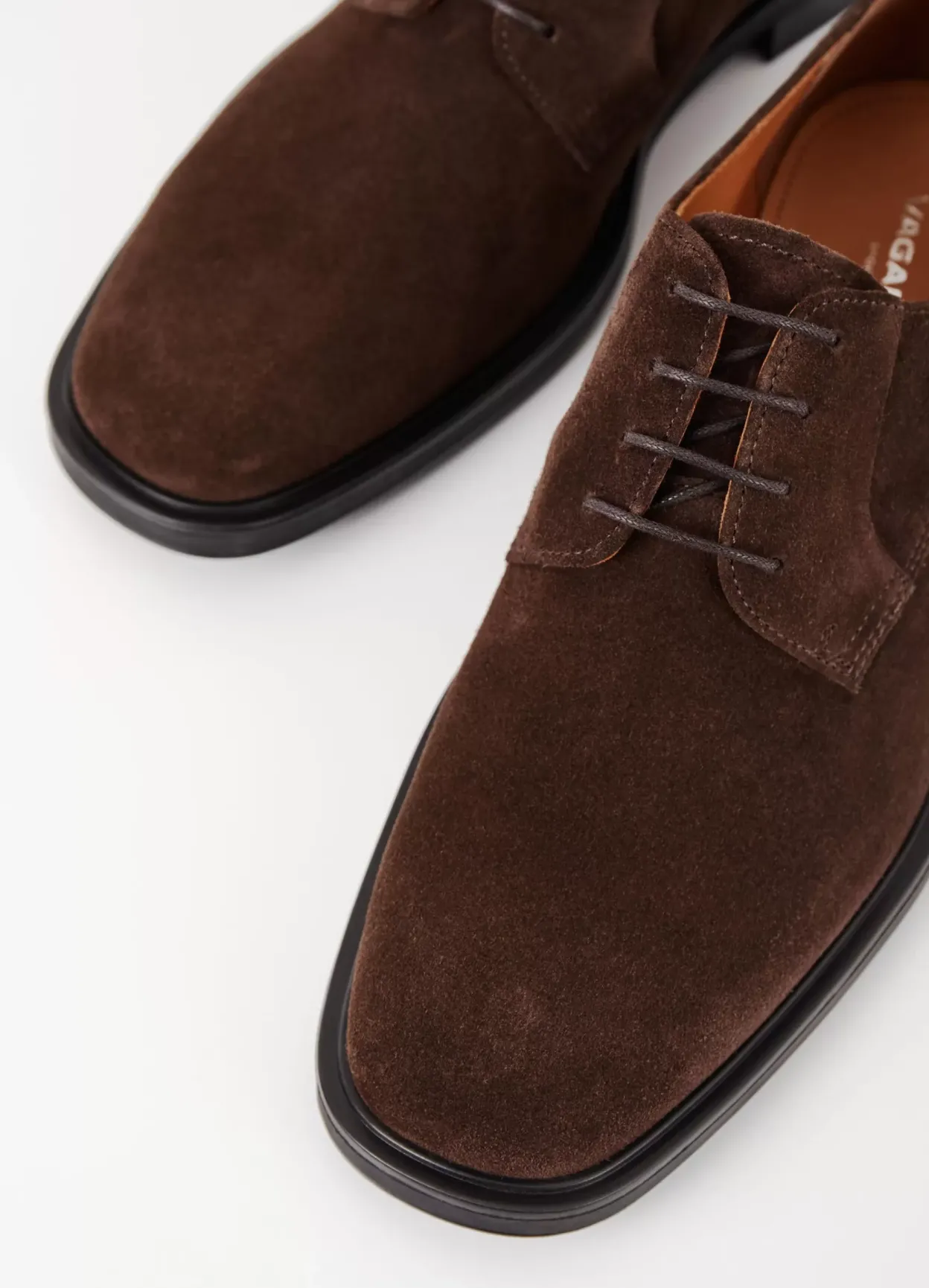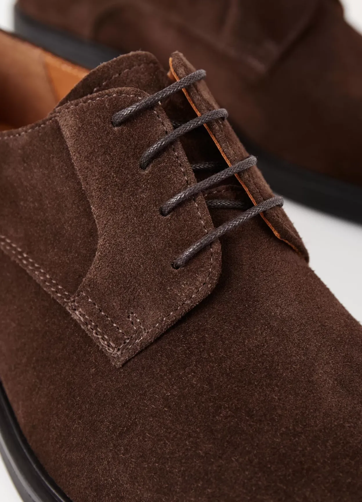 Andrew er stilrene derbysko med en tidløs silhuet. Modellen er i mørkebrunt ruskind med klassisk derby-snøre, snørebånd med voks og rund tåform. Hælen er på 30 mm.