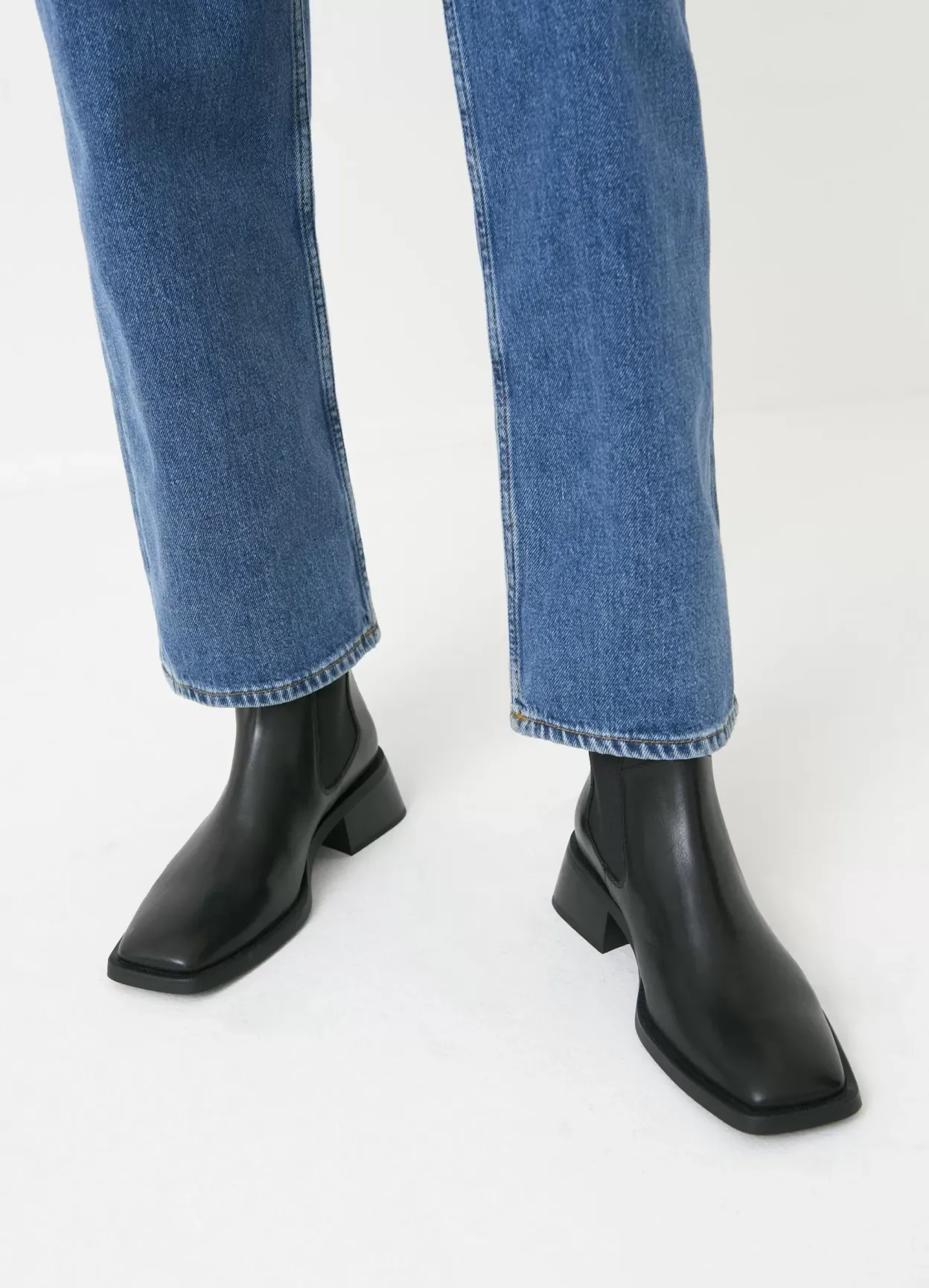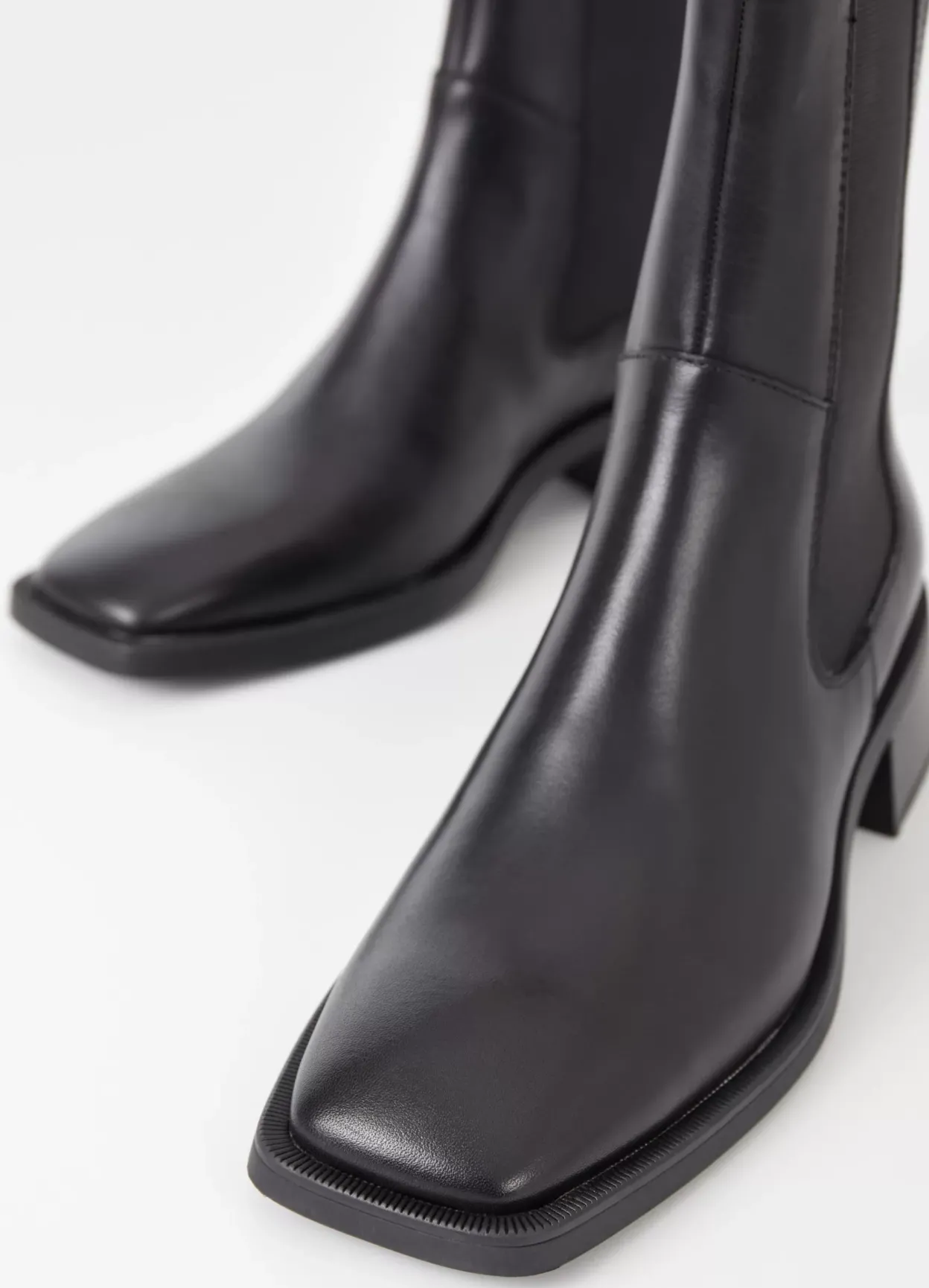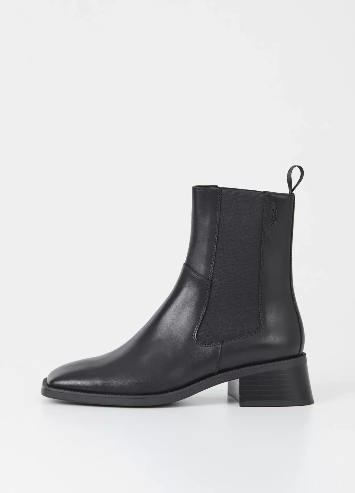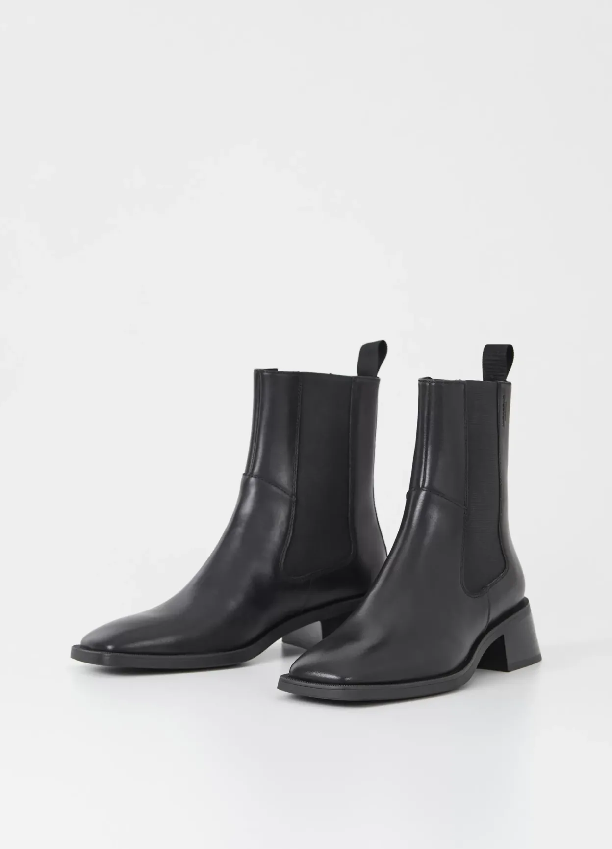 Blanca er moderne Chelsea-støvler med et minimalistisk design. Modellen er lavet i sort læder med ankelhøjt skaft og firkantet tåform. Støvlen har hæle på 47 mm. Detaljen: elastiske sidepaneler og hælstrop.