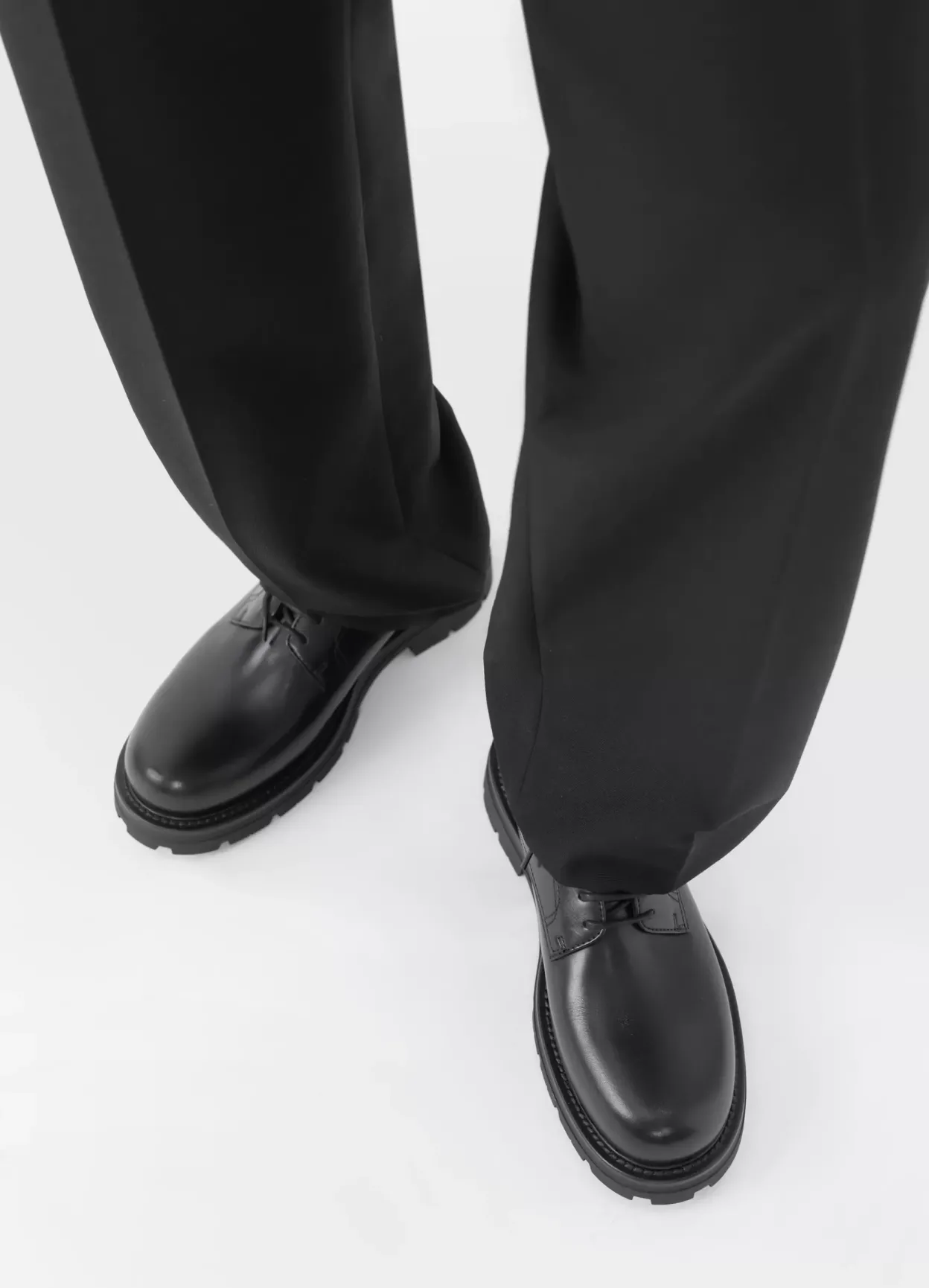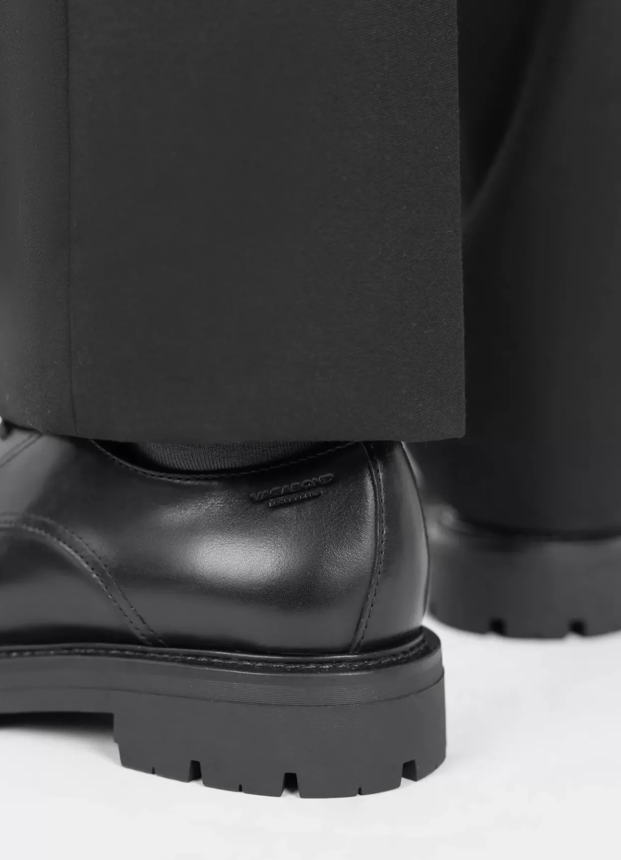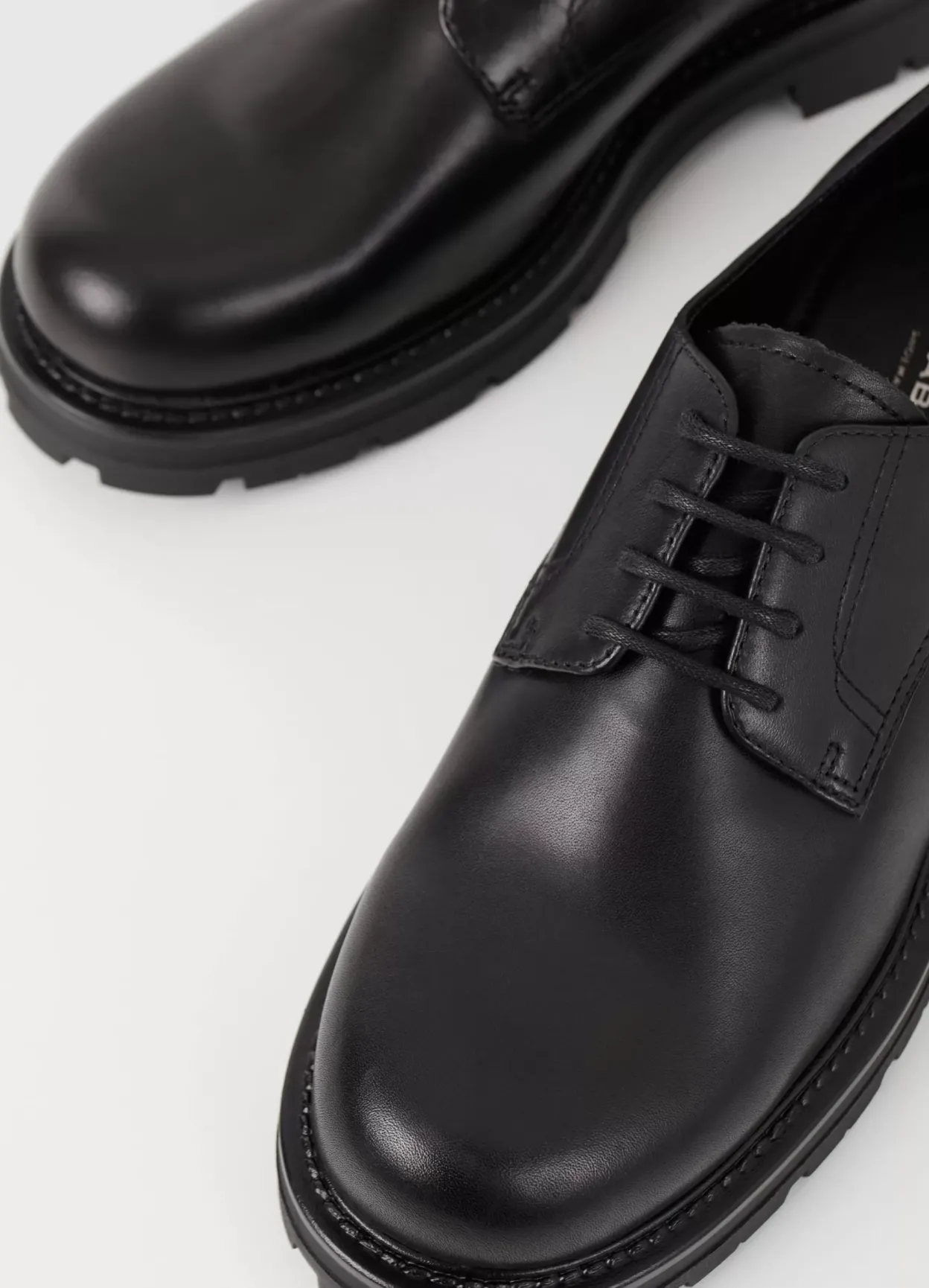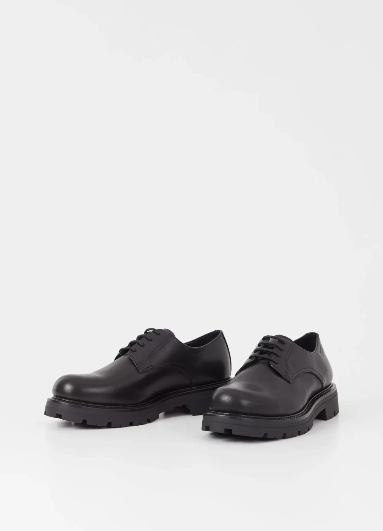 Cameron er chunky Derby-sko til hverdagsuniformen. Den er lavet i sort læder med rund tåform og snørebånd. Riflet ydersål på 40 mm.
