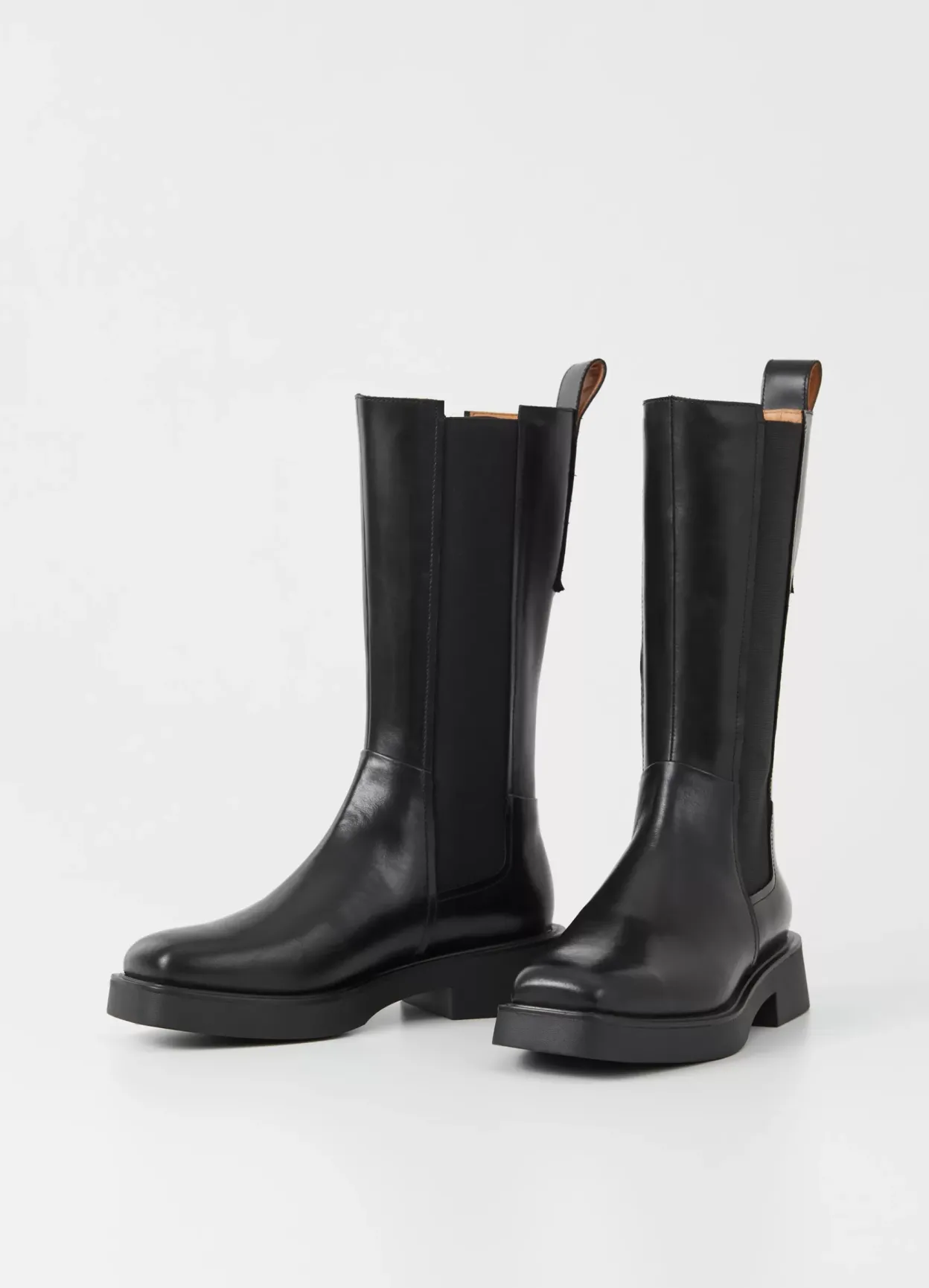 Carmen er minimalistiske Chelsea boots med et mellemhøjt skafte. Modellen er lavet i sort læder, har firkantet tå og elastiske paneler langs skaftet. Hælen måler 40 mm. Detaljen: læderfor og dekorative hælstroppe.