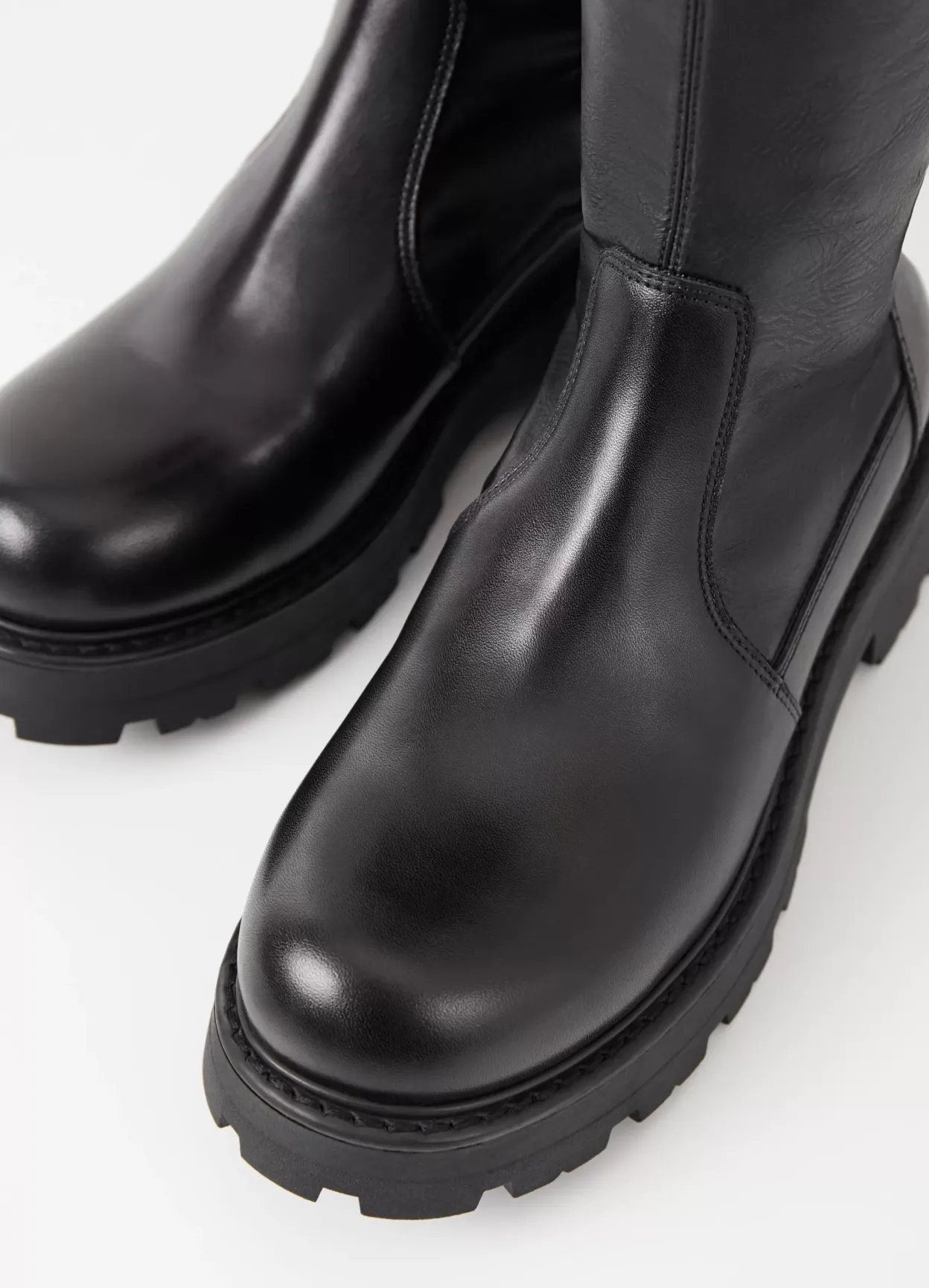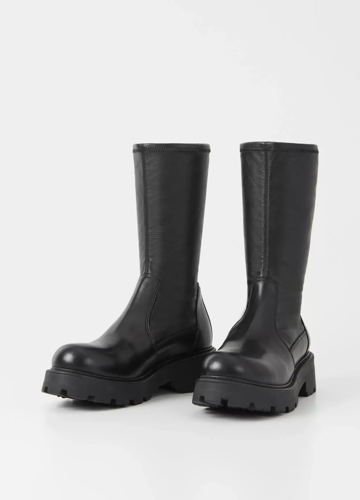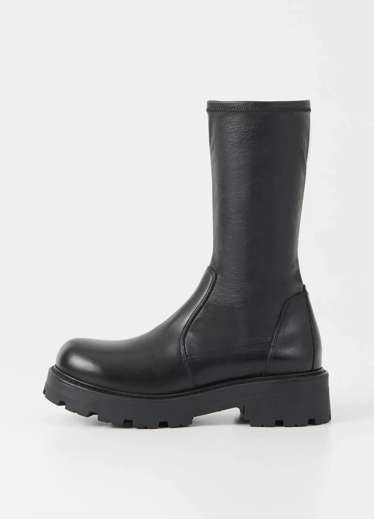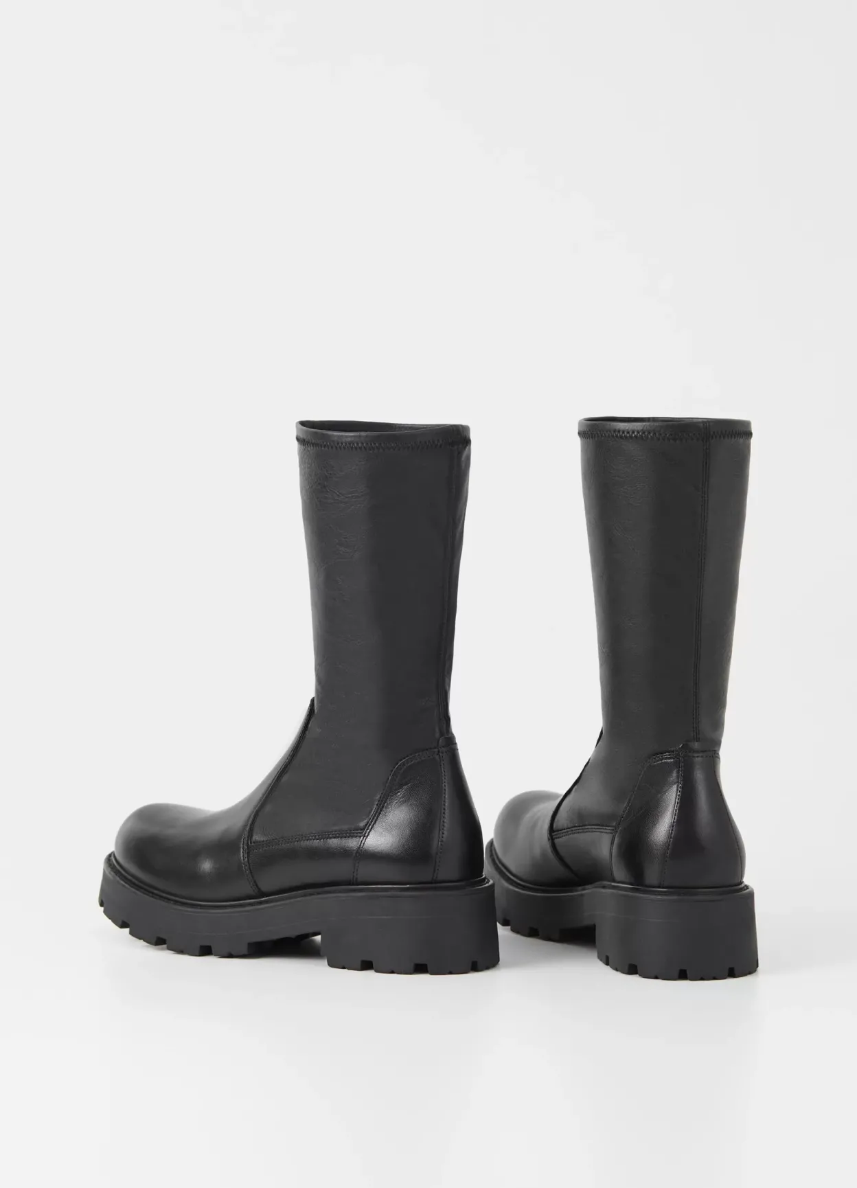 Cosmo 2.0 er en chunky elastisk støvle med et rent design. Modellen er i en kombination af skind og syntetisk materiale med et smalt elastisk skaft og rund tå. Støvlen har en robust ydersål og en grov hæl på 45 mm.