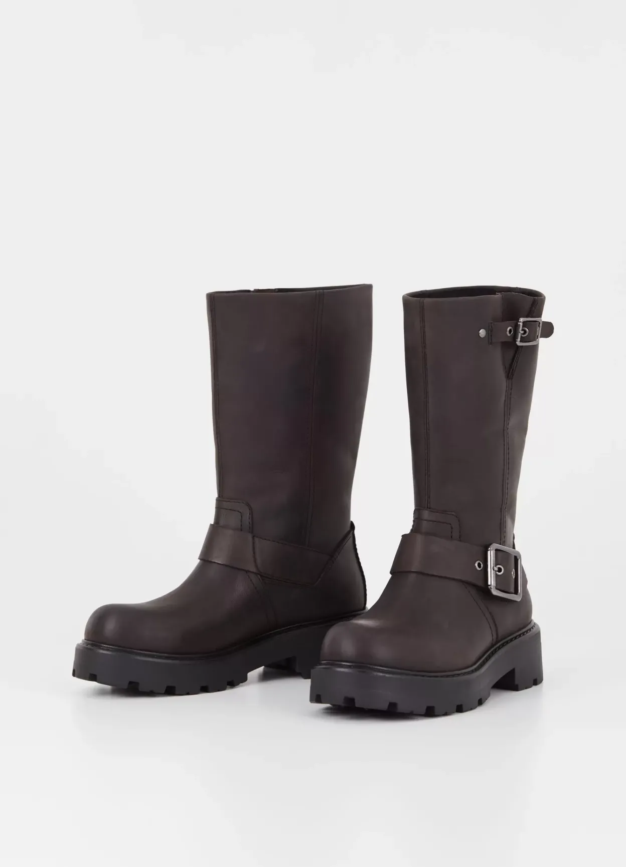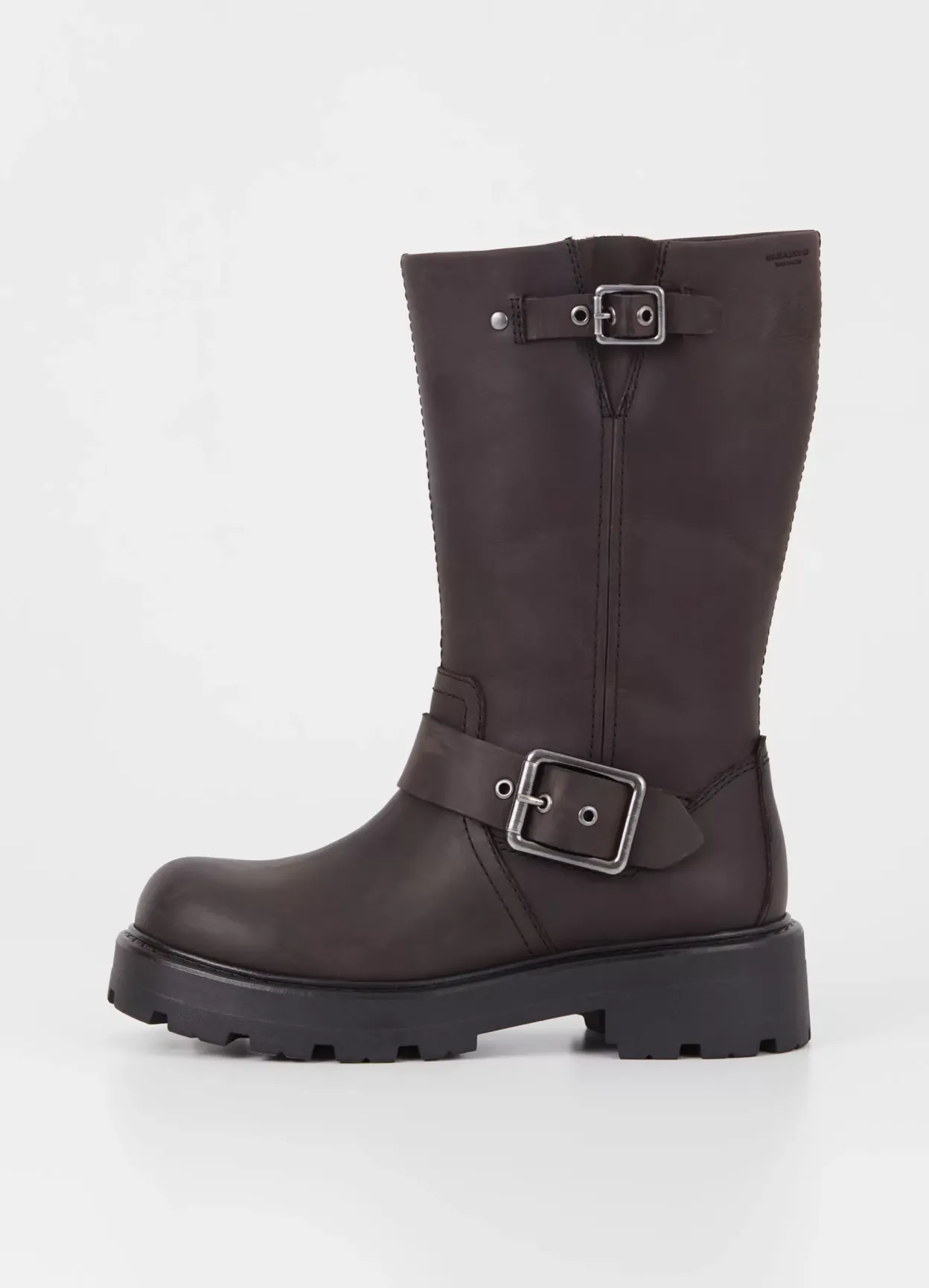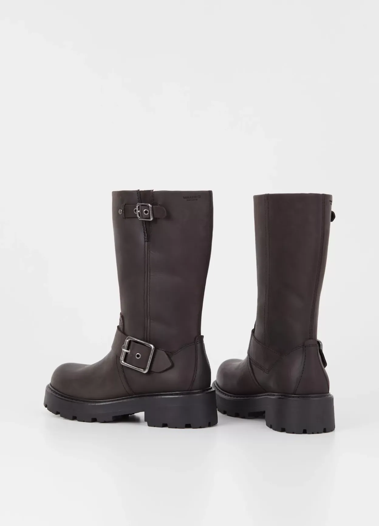 Cosmo 2.0 er biker-inspirerede boots med et edgy udtryk. Modellen er lavet i mørkebrunt, olieret nubuck med metalliske detaljer, en dekorativ strop med spænde og mellemhøjt pull-on skafte. Den solide hæl er 45 mm.