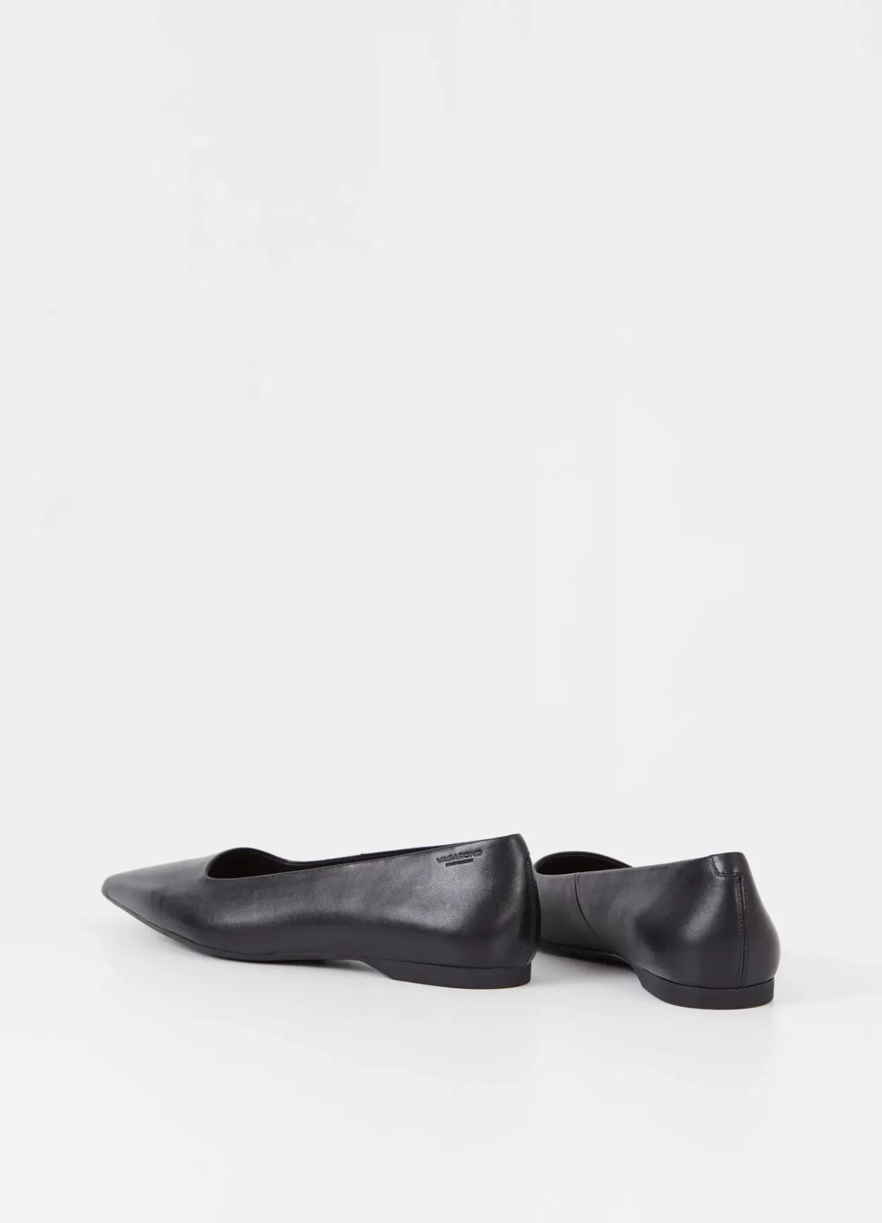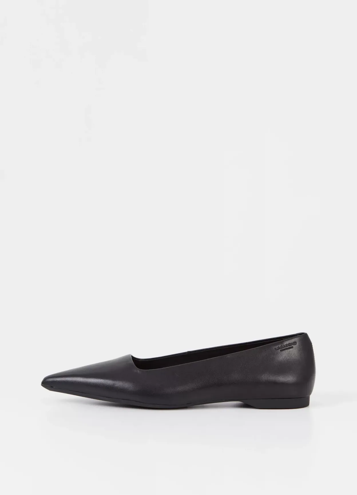 Hermine er stilrene ballerinasko med en spids silhuet. Modellen er lavet i sort læder, har en spids tåform samt tynd sål på 10 mm. Detaljen: læder/tekstilfor og indersål i læder.