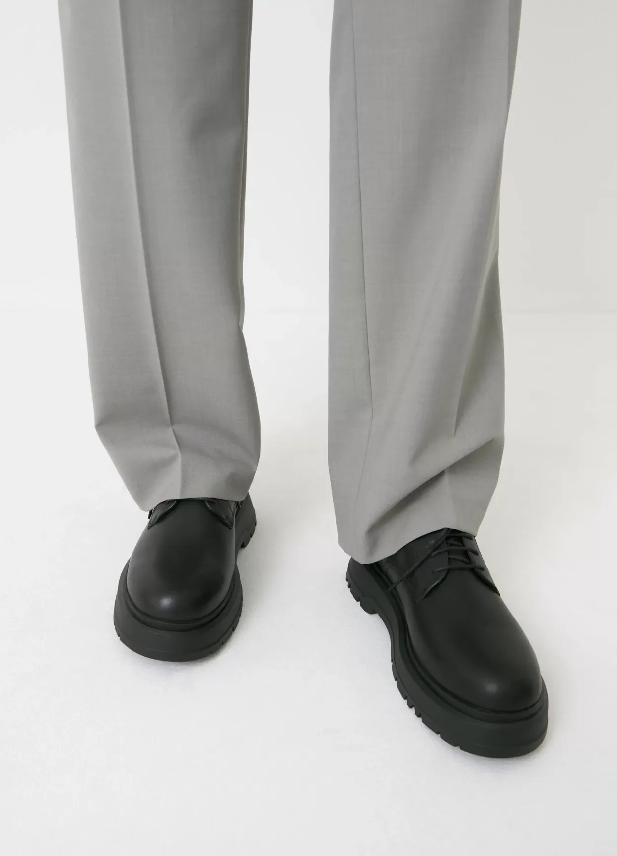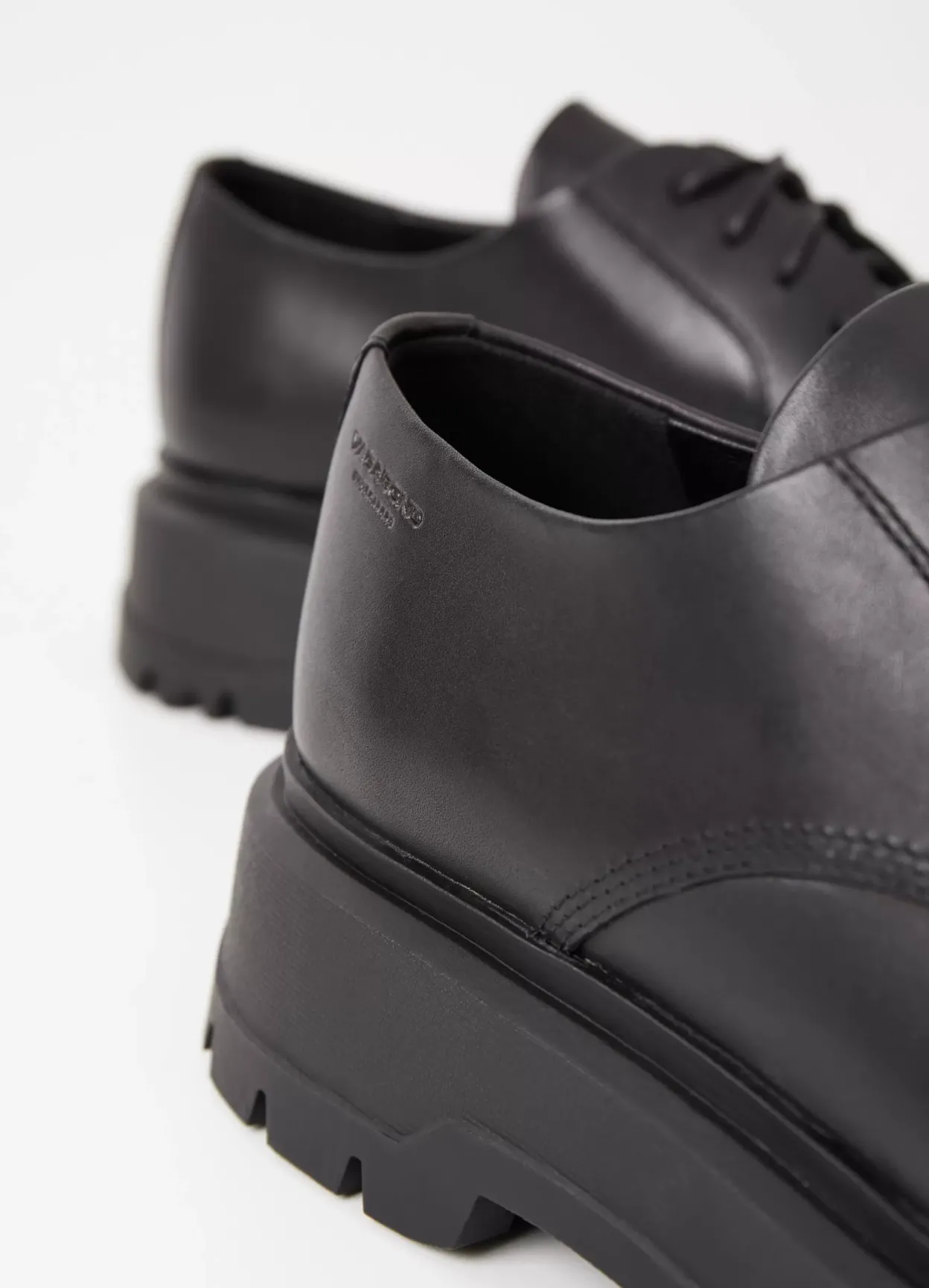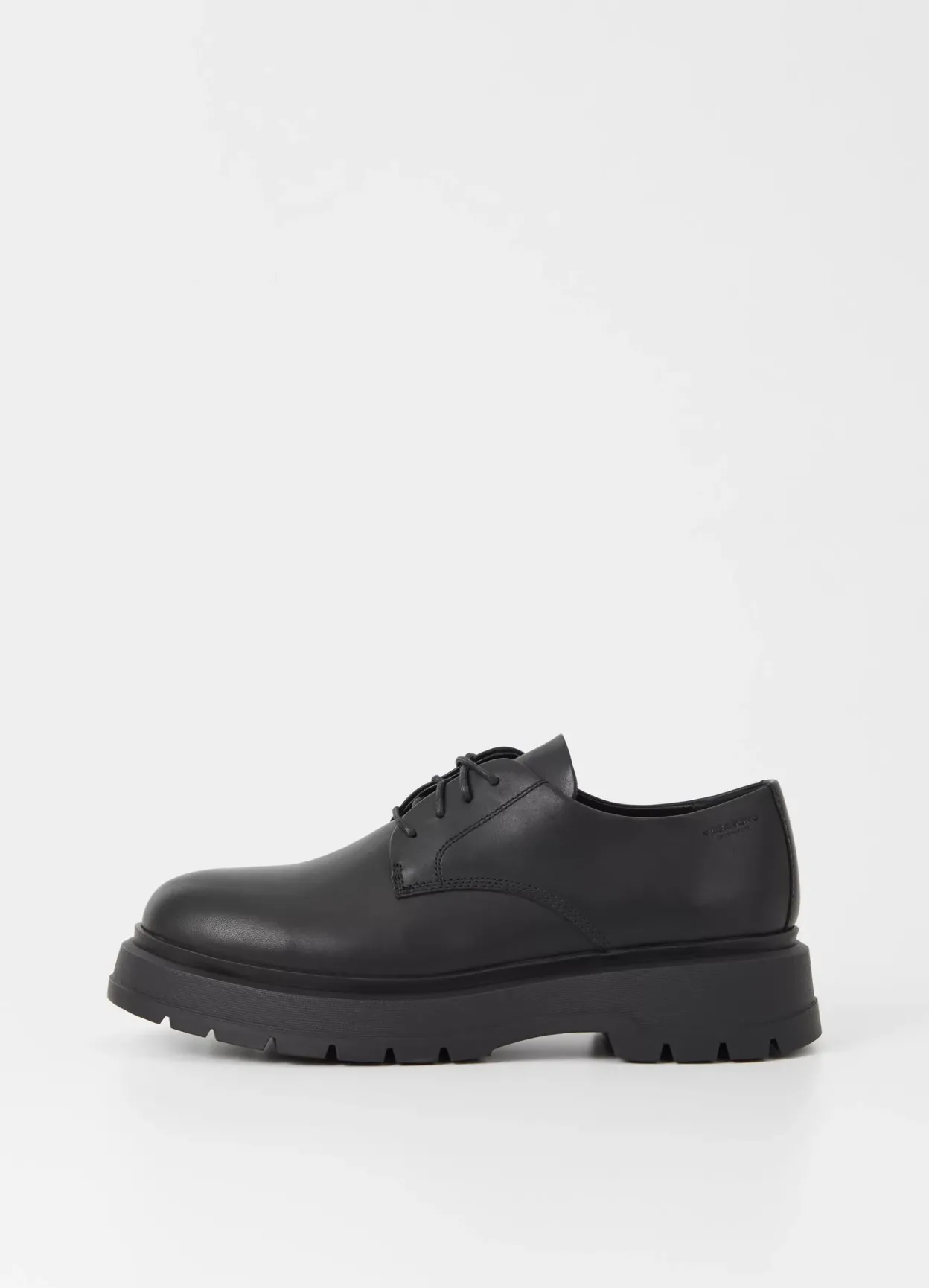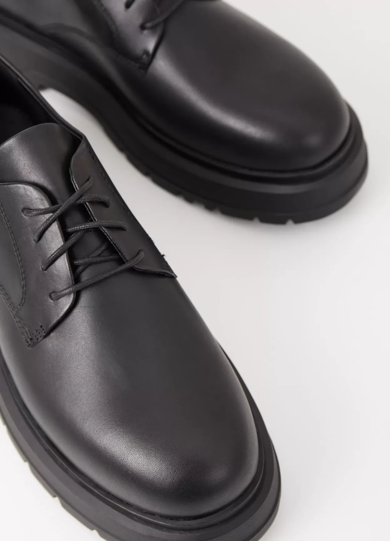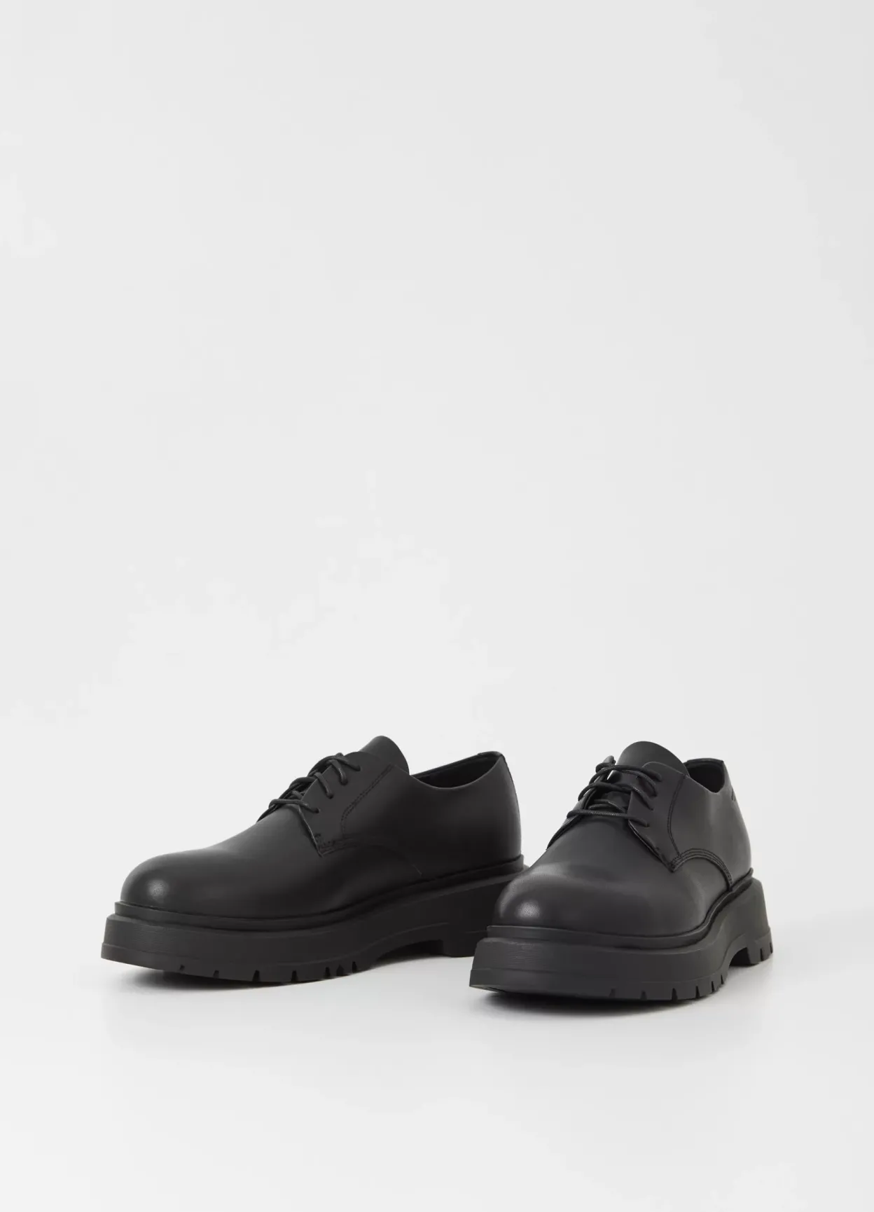 Jeff er chunky version af klassiske derby-sko. Modellen er i blødt sort læder med rund tå og snøre fortil. Den kraftige gummisål er på 47 mm.