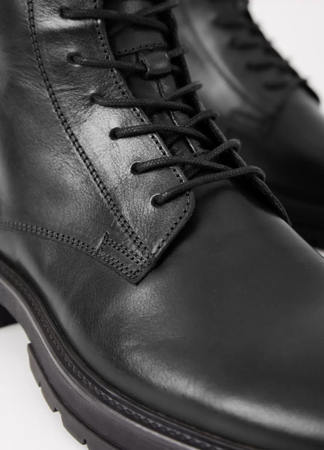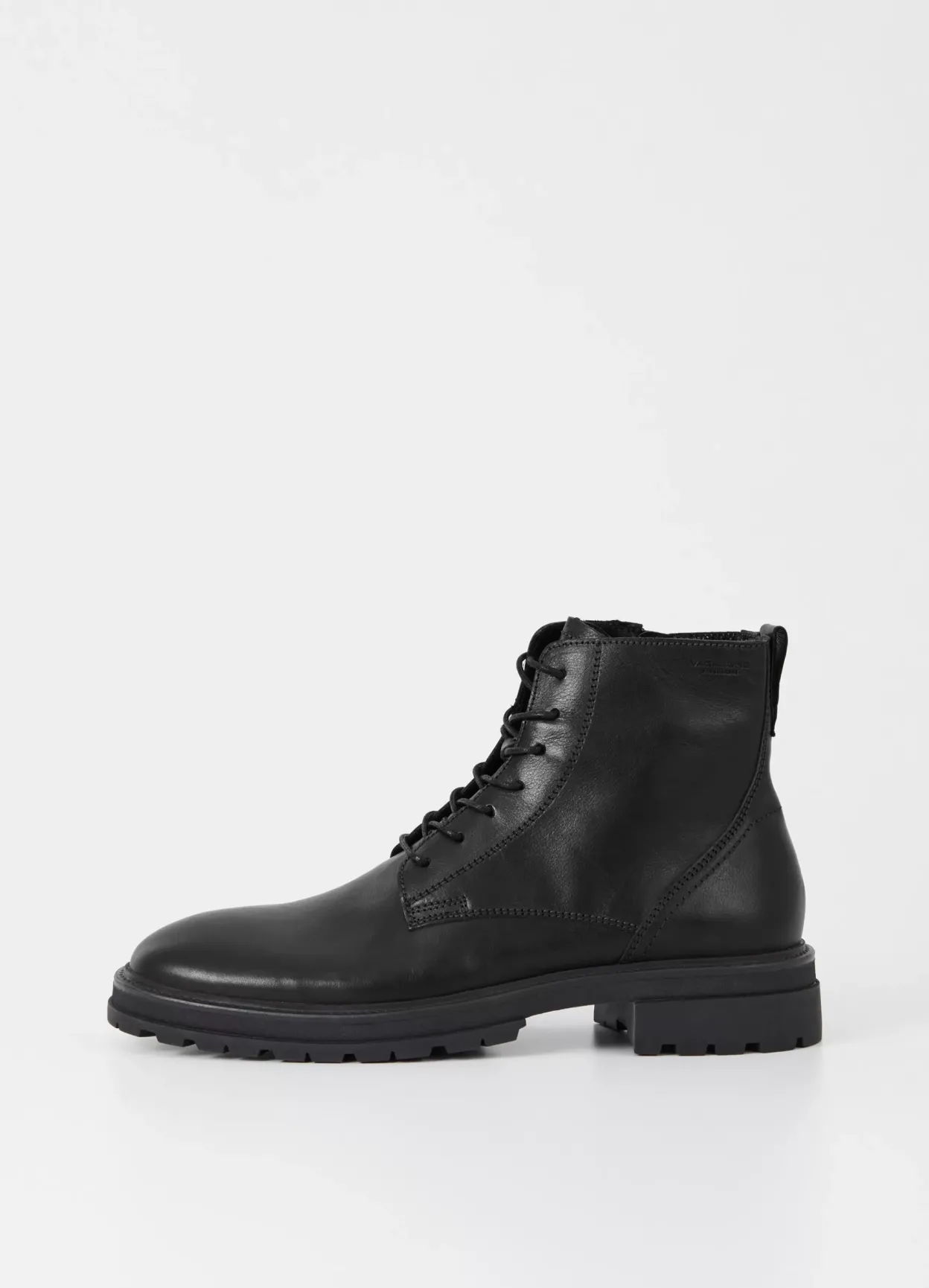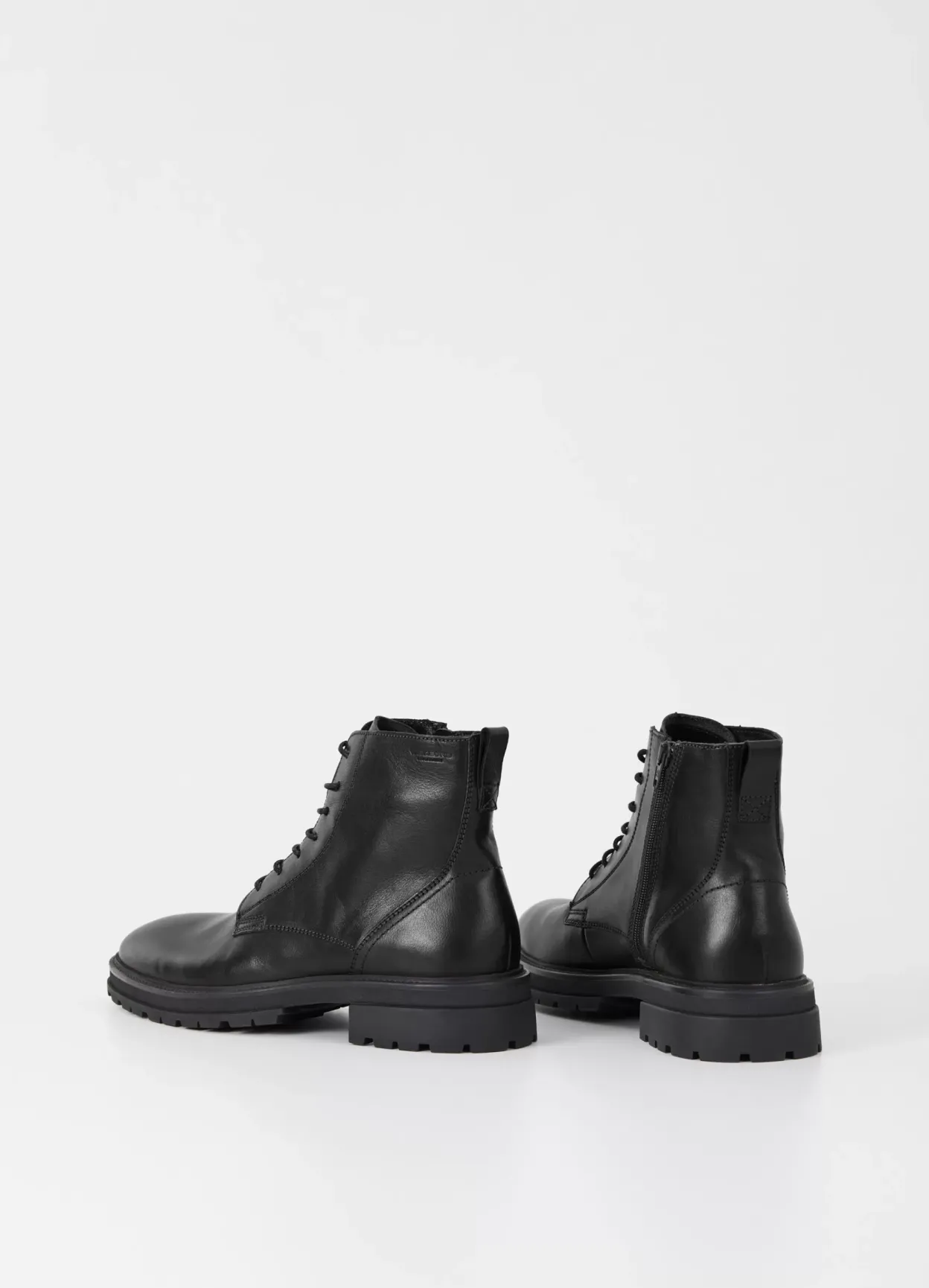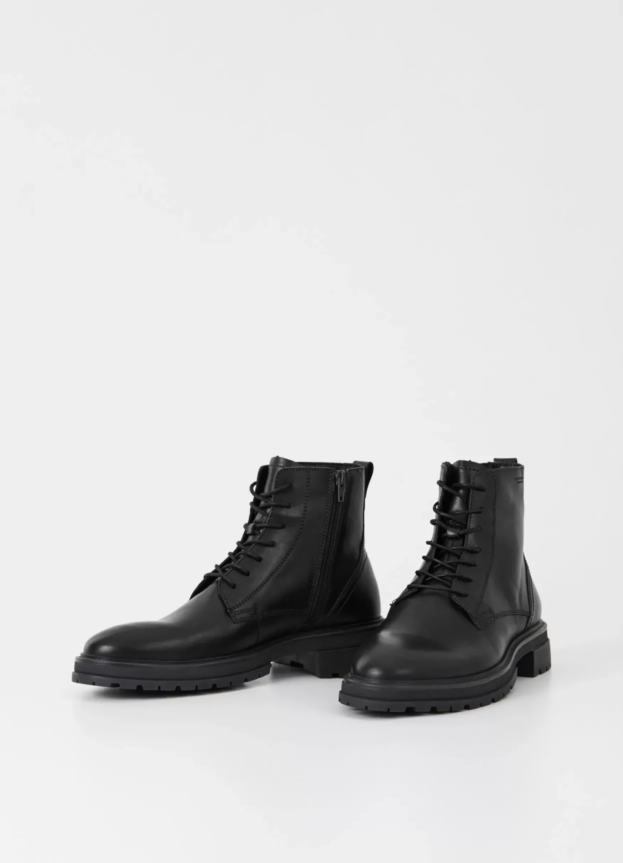 Johnny 2.0 tidløse snørestøvler med et rent design. Modellen er i sort skind med snøre fortil, rund tå, træk flap og lynlås i skaftet. Den kraftige sål er på 32mm.