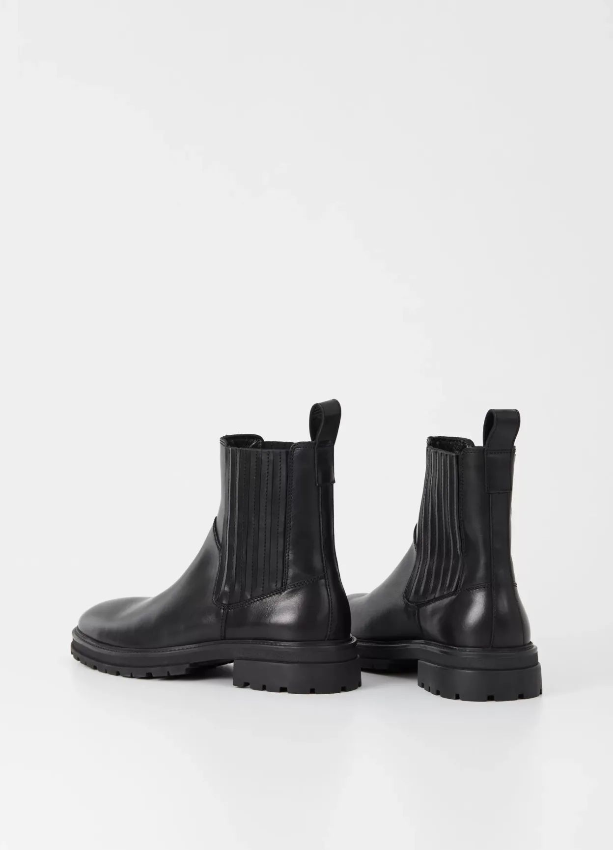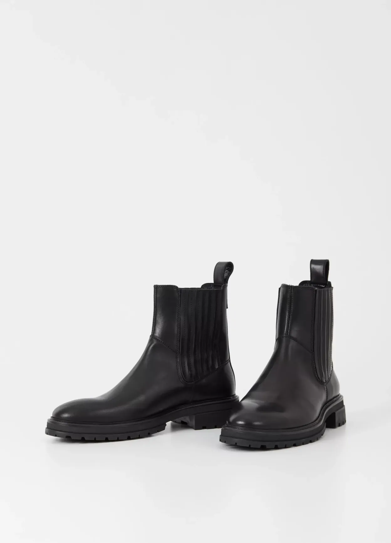 Johnny 2.0 er vores opdaterede Chelsea støvler med en tidløs silhuet. Den klassiske model er i sort læder med rund tå, elastiske sidepaneler i skaftet samt hælstrop. Den robuste sål er på 32 mm.