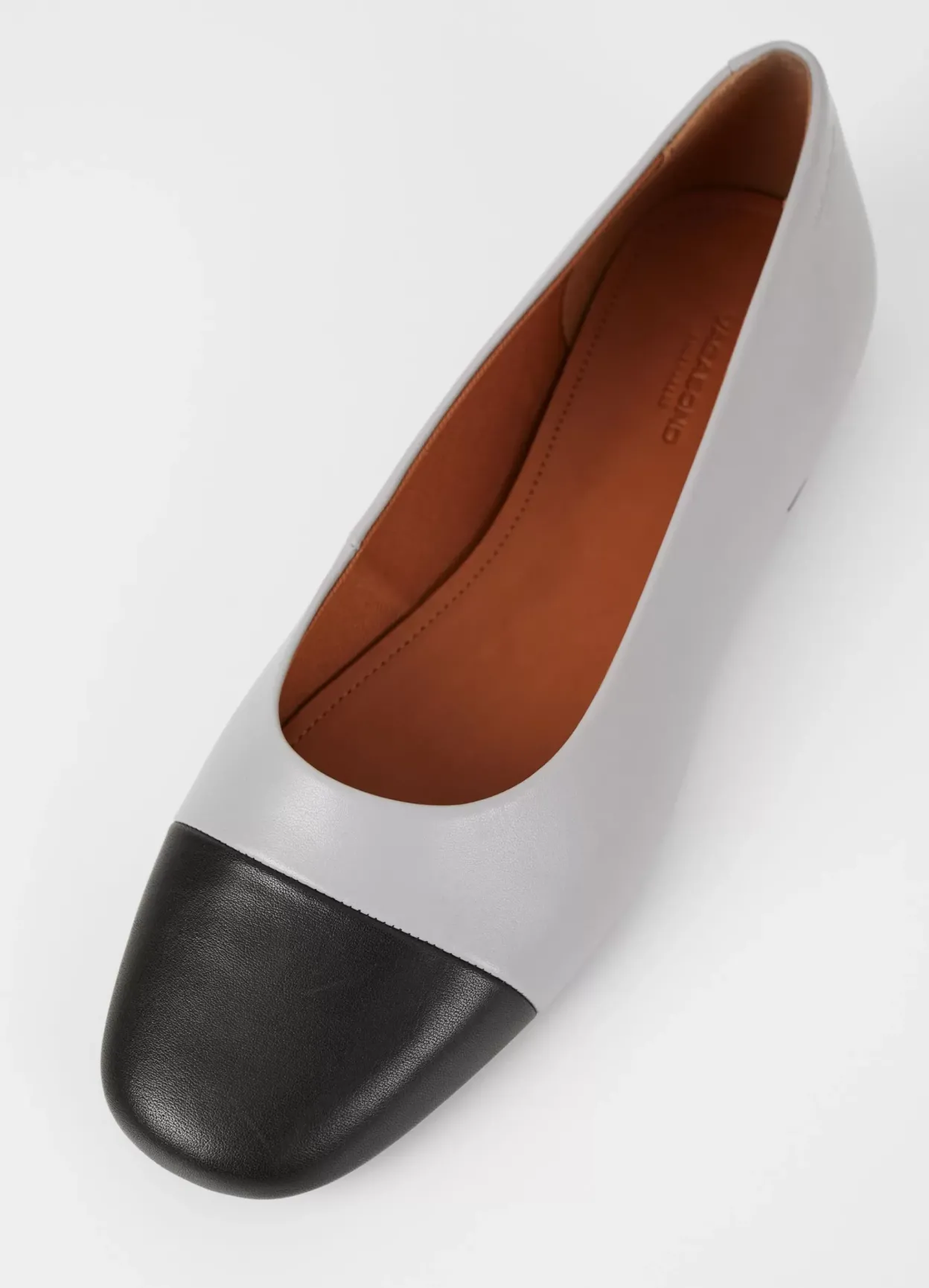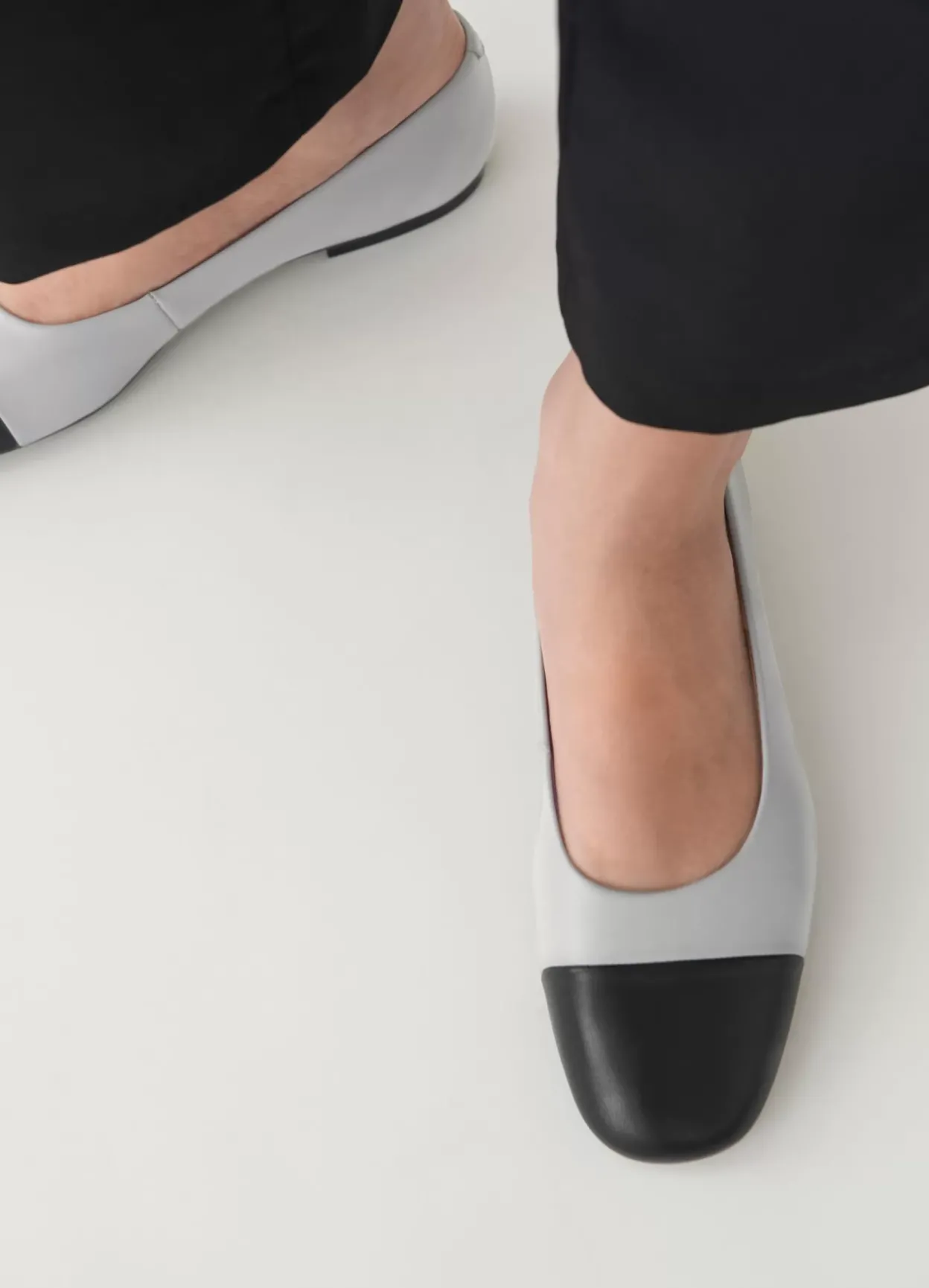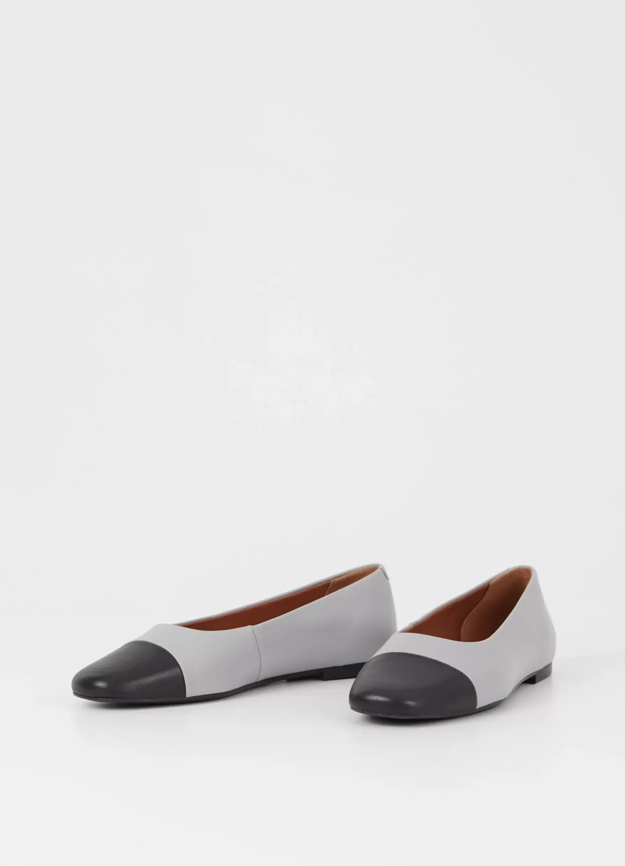 Jolin er tidløse ballerinasko med en opdateret look. Modellen er lavet i gråblåt læder, og den runde tå er i sort læder. Den tynde sål har en 11 mm lav hæl. Detaljen: tesktilfor og indersål i læder.