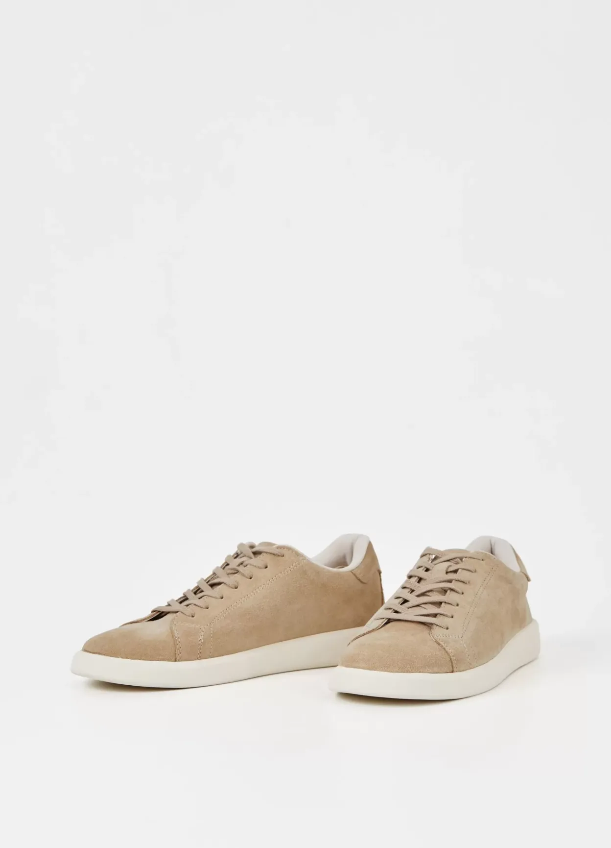 Maya er sæsonens minimalistiske sneakers med en tyndere sål og rund tåform. Modellen er i beige ruskind med snøre og detaljeret hælkappe. Sålen er 25 mm tyk.