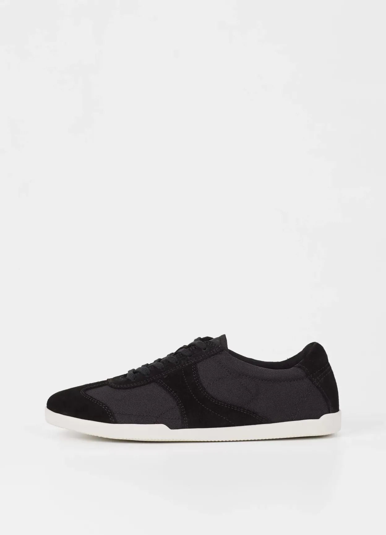 Remi er minimalistiske hverdags-sneakers med snørebånd. Modellen er lavet i sort tekstil med paneler i sort ruskind. Den lave sål er 25 mm. Detaljen: polstret åbning og rund tåform.