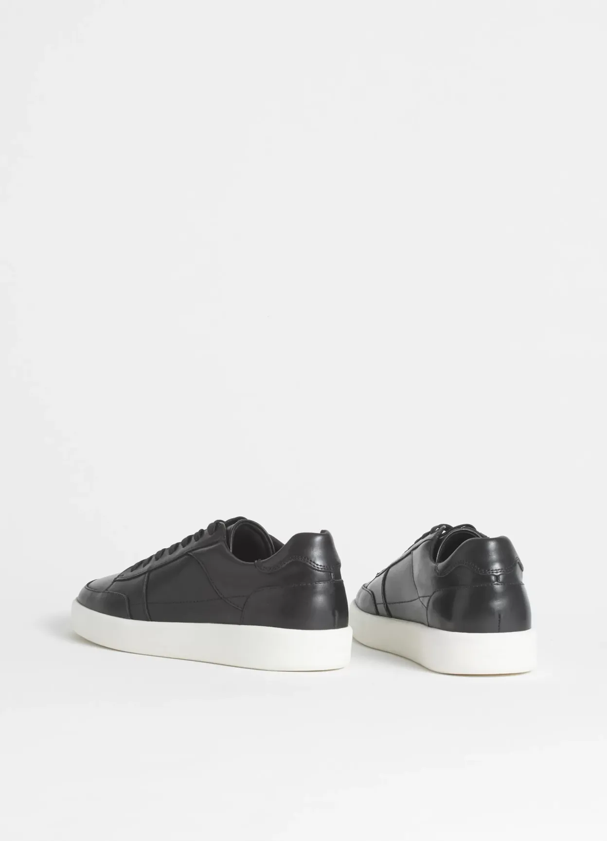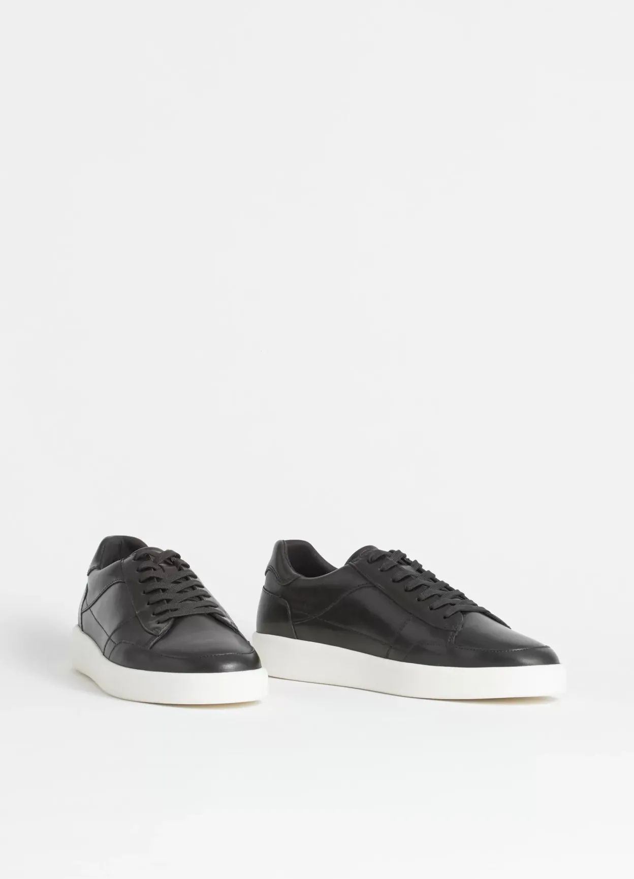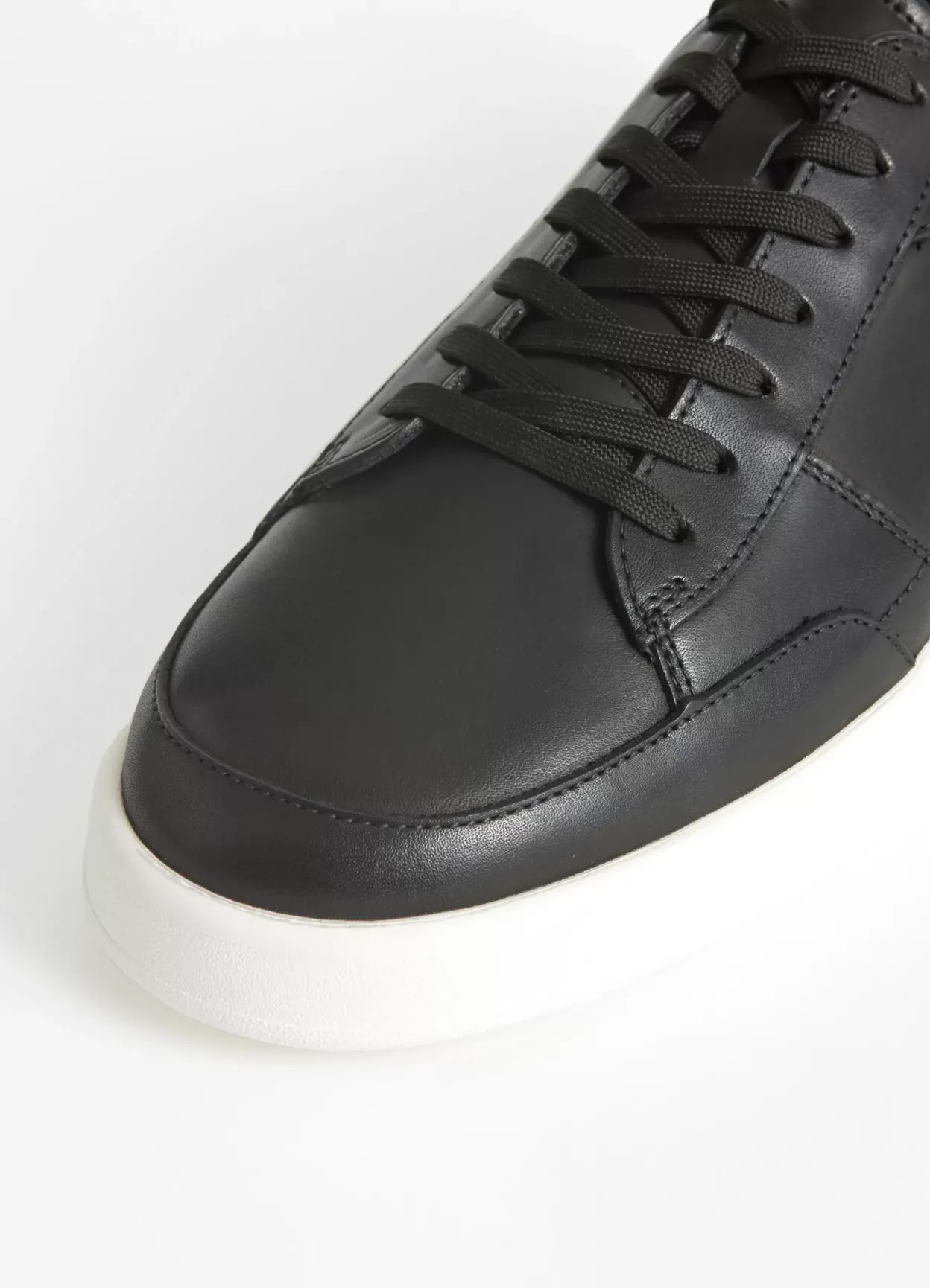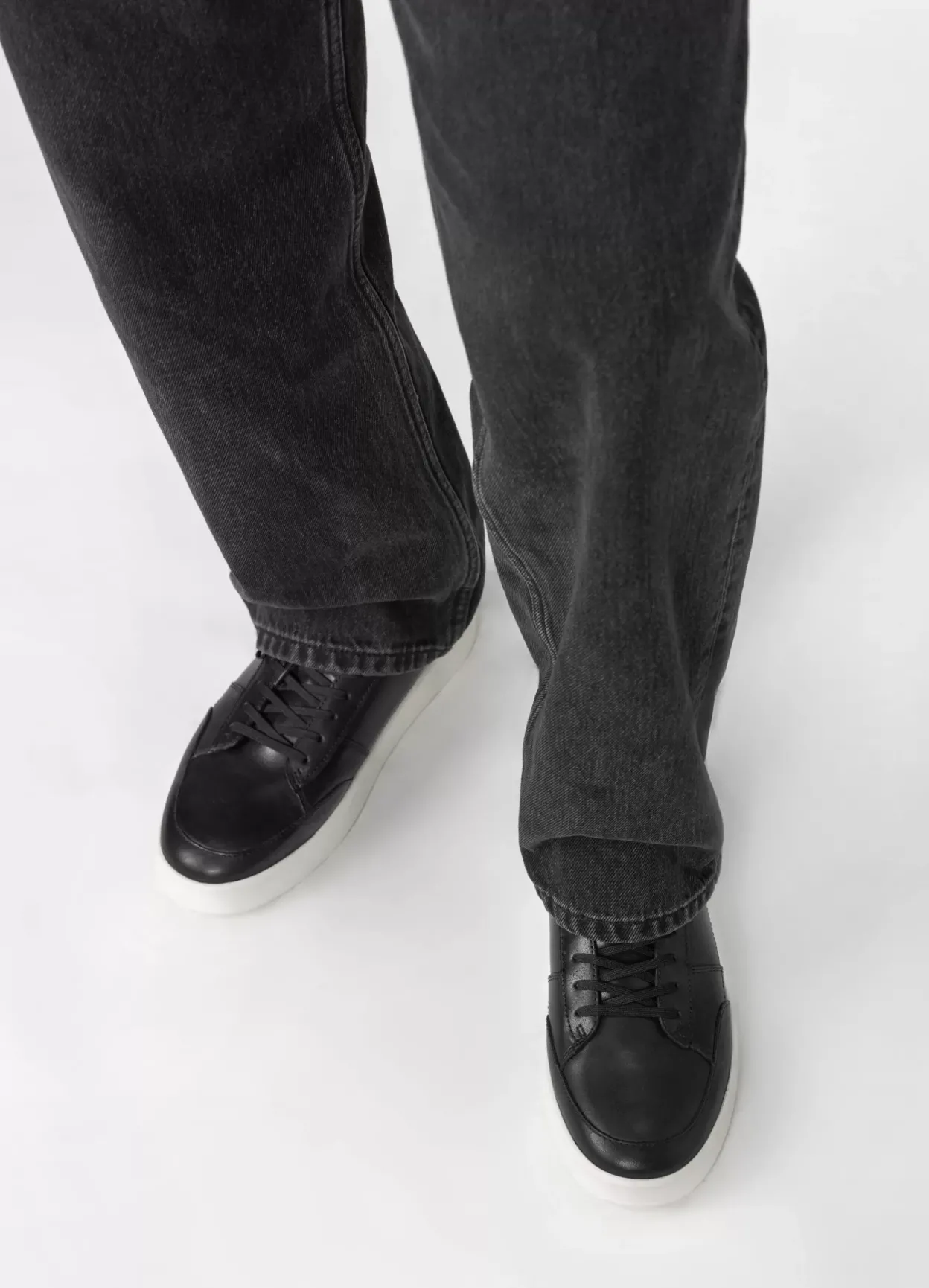 Teo er dressy low-top sneakers med en ren silhuet. Modellen er i sort læder med snøre, rund tå og detaljerede søm på oversiden. Den høje sål er 35 mm.