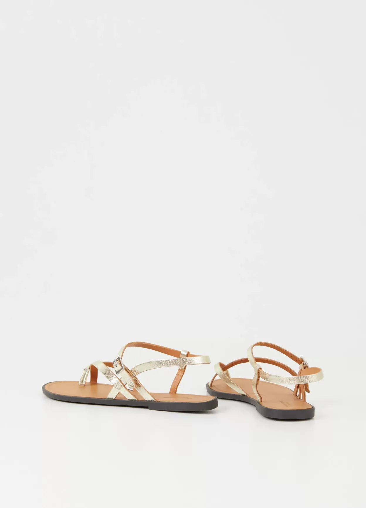 Tia 2.0 er stilrene hverdagssandaler med et rent design. Modellen er lavet i guldfarvet læder med tynde remme, som går over foden, tårem samt justerbar ankelrem med spænde. Sålen er 10 mm.