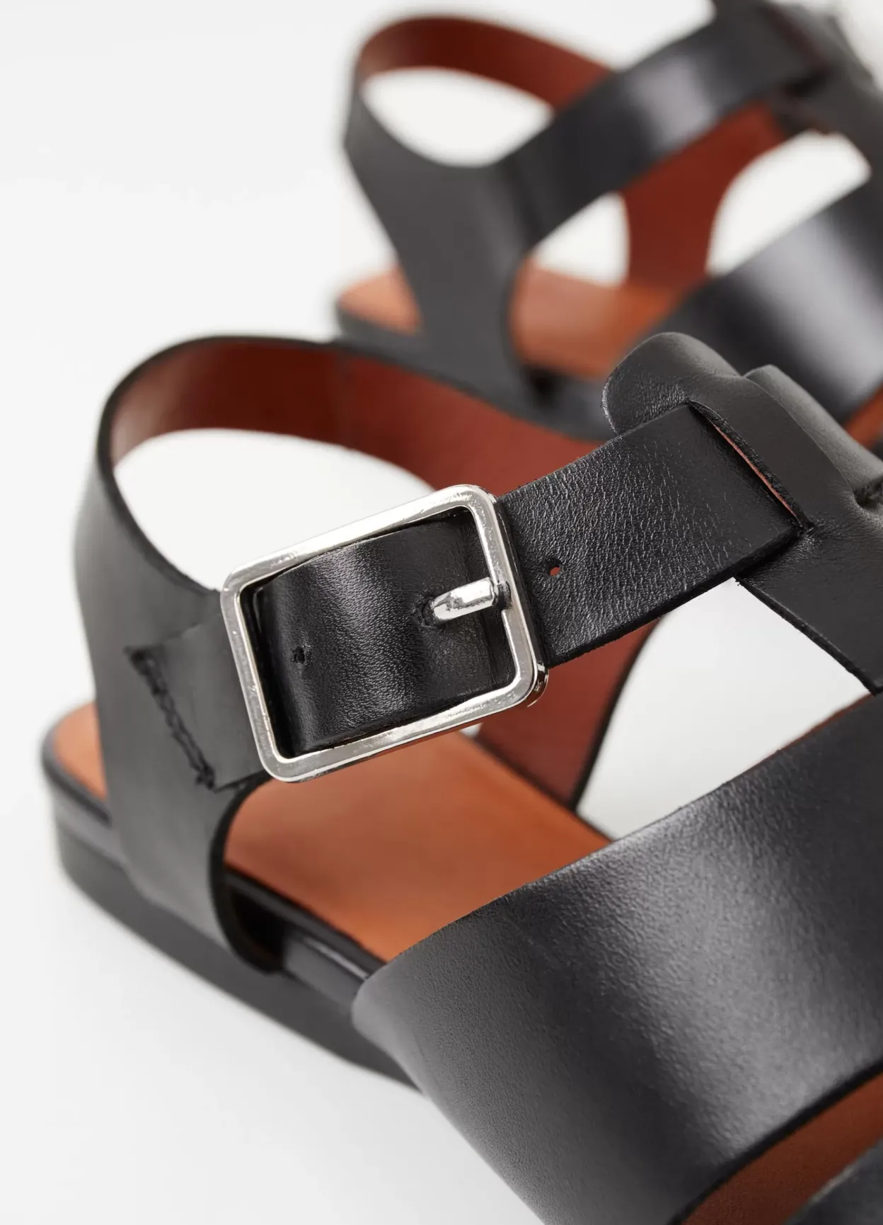 Wioletta er fisherman-inspirerede sandaler med et moderne design. Modellen er i sort læder med flettede remme over foden, spids tå og justerbar ankelrem. Den slanke sål har en hæl på 11 mm. Detaljen: læderfor og indersål i læder.