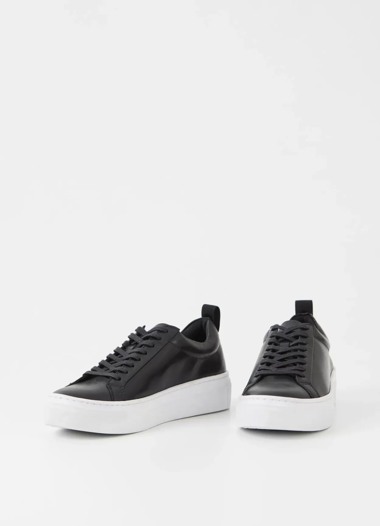 Zoe Platform er stilrene hverdagssneakers med et tidløst design. Modellen er i sort læder med snøring, træk flap og en rund tåform. Den høje sål er på 40mm.