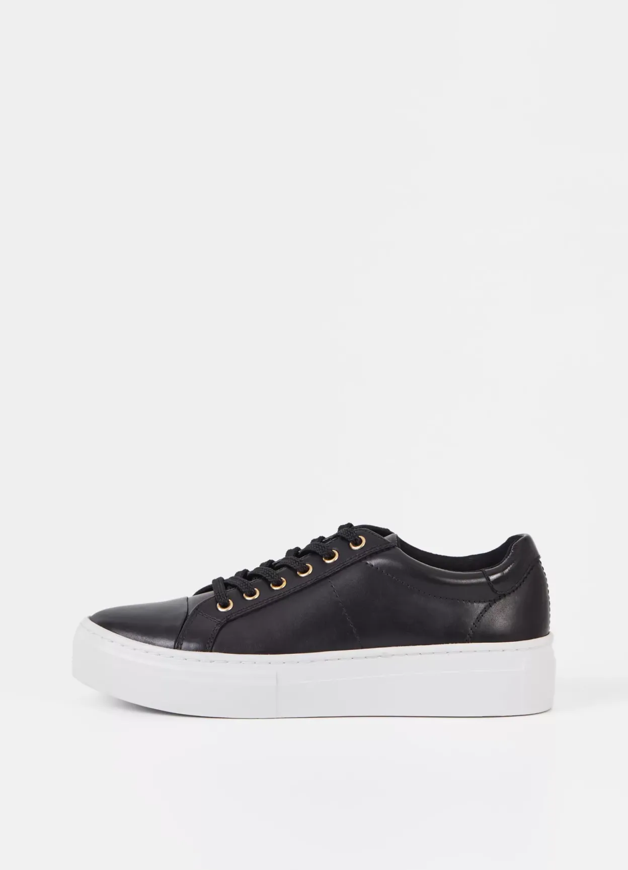 Zoe Platform er stilrene hverdagssneakers med et minimalistisk design. Oversiden er i sort læder med en rund tå, detaljeret snøre og en hælkappe i krokodillepræget læder. Modellen har kraftige gummisåler på 40 mm.