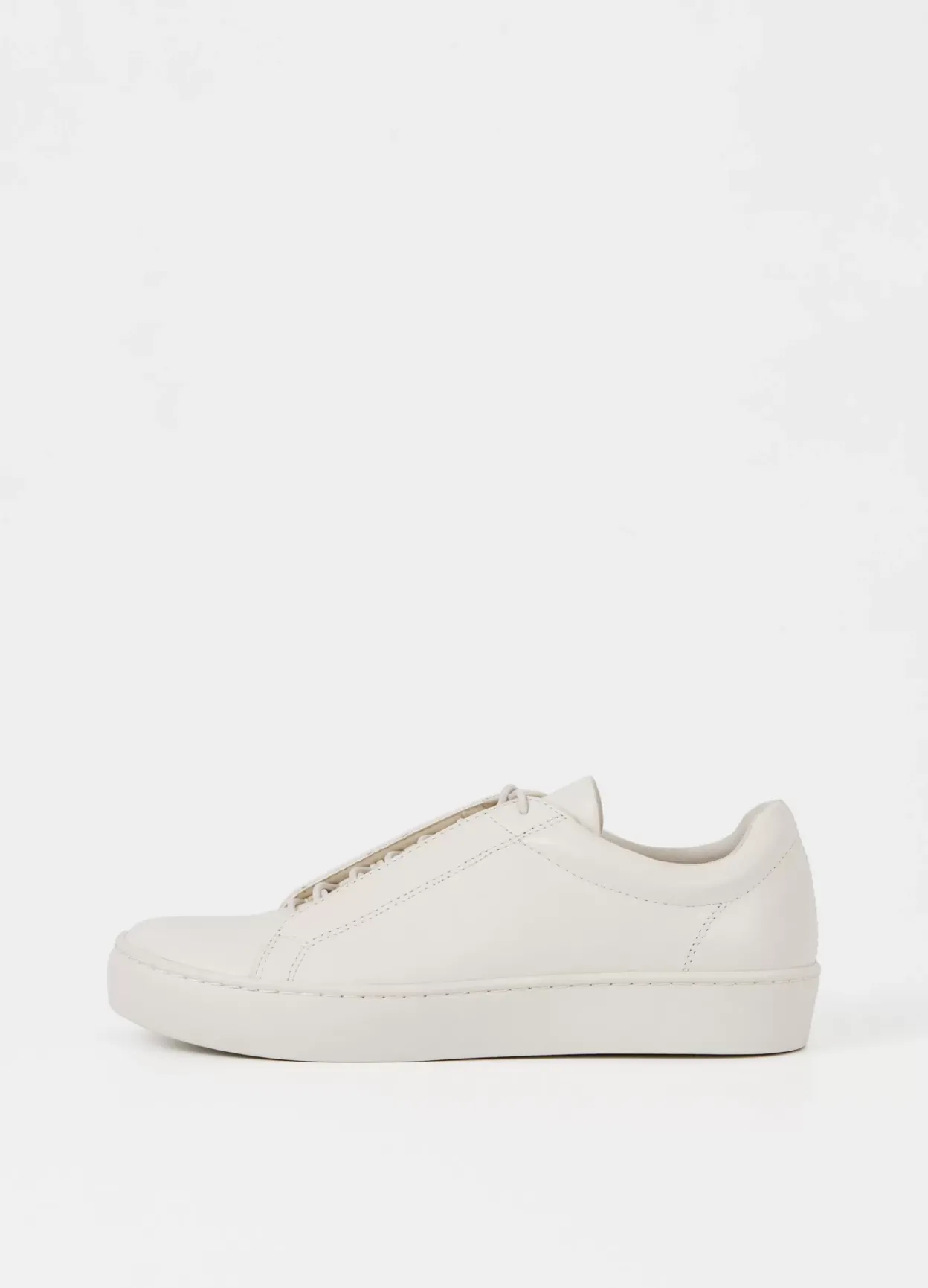 Zoe er klassiske hverdagssneakers med et minimalistisk design. Modellen er i offwhite skind med rund tå, skjult snøre og slanke snørebånd i bomuld. Gummisålen er 29 mm tyk.